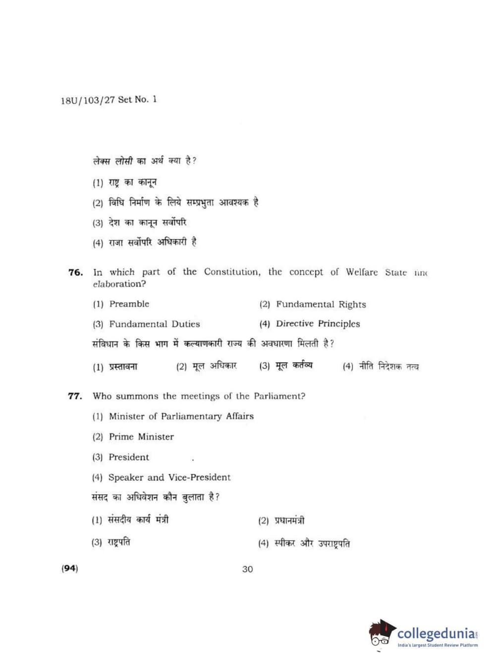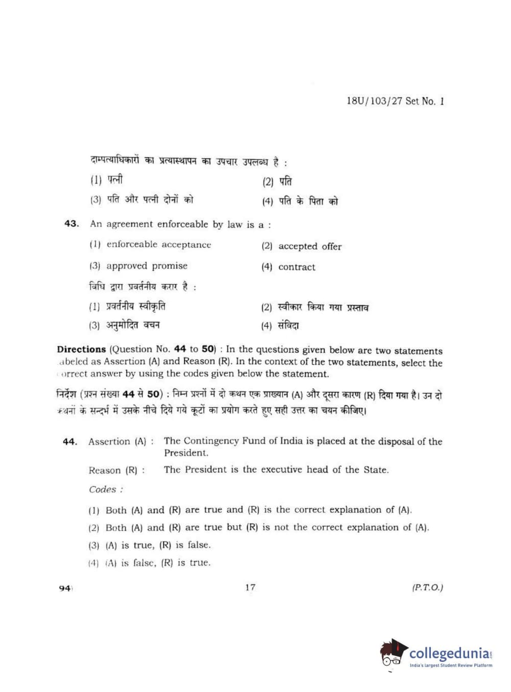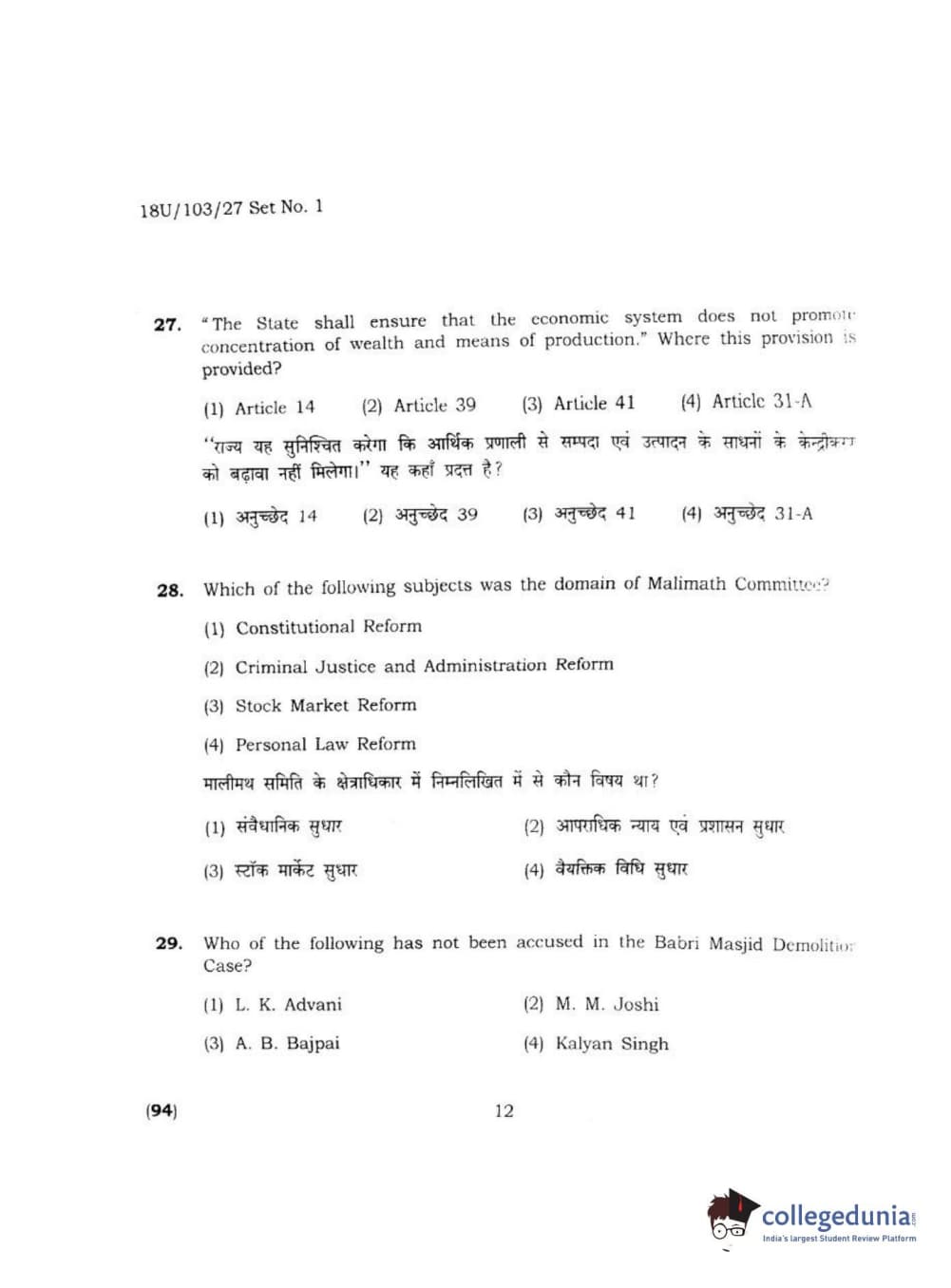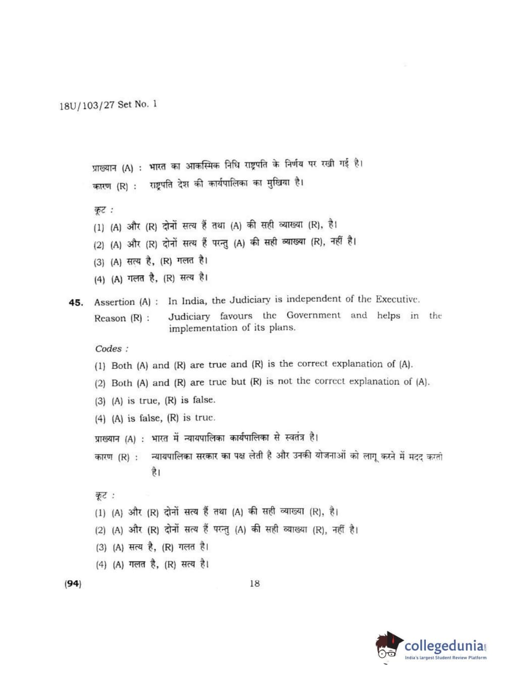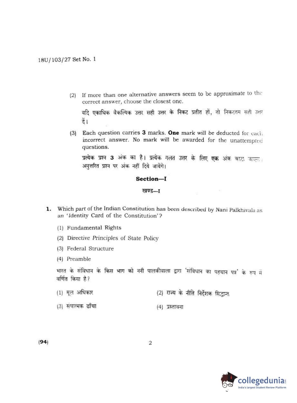 BHU UET 2018 LLB Question Paper with Answer Key PDFs Shift 2