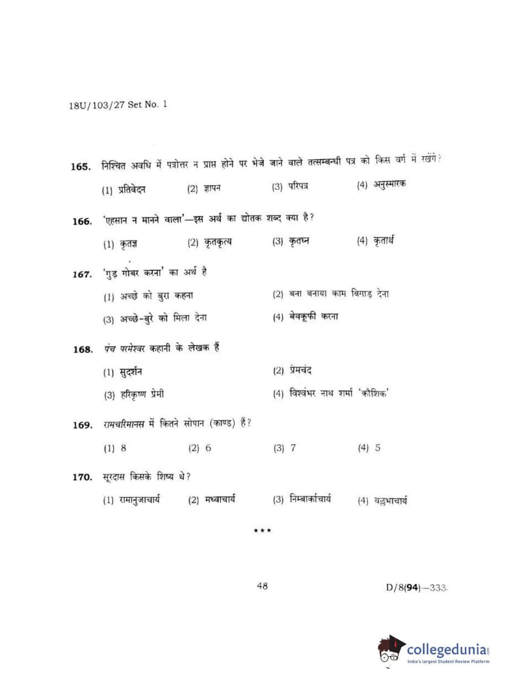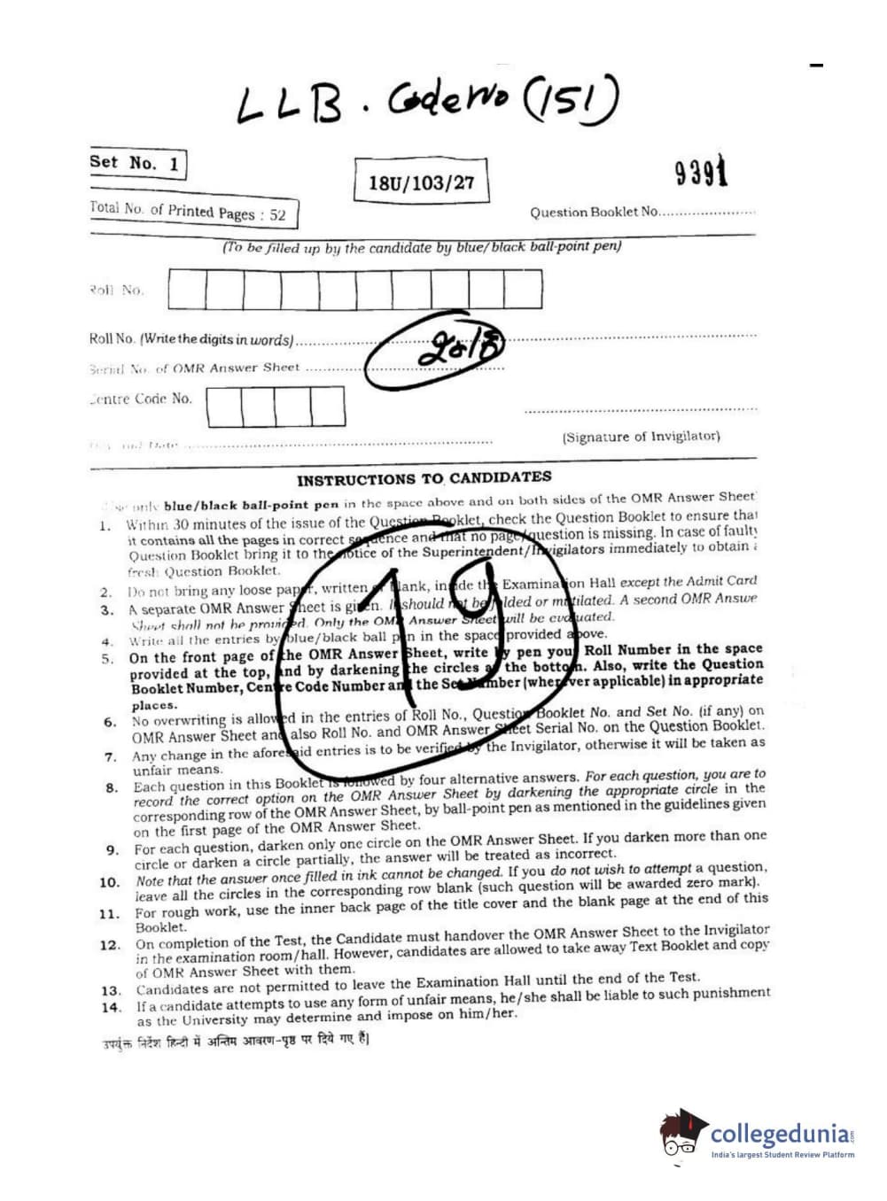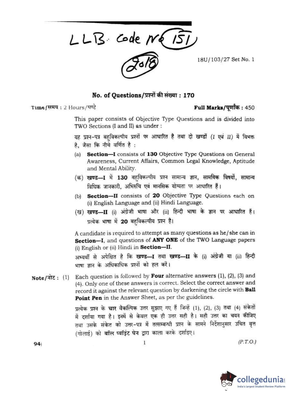 BHU UET 2018 LLB Question paper with answer key pdf conducted on April 1, 2018 in Shift 2 is available for download. The exam was successfully organized by Banaras Hindu University (BHU). The question paper comprised a total of 170 questions.