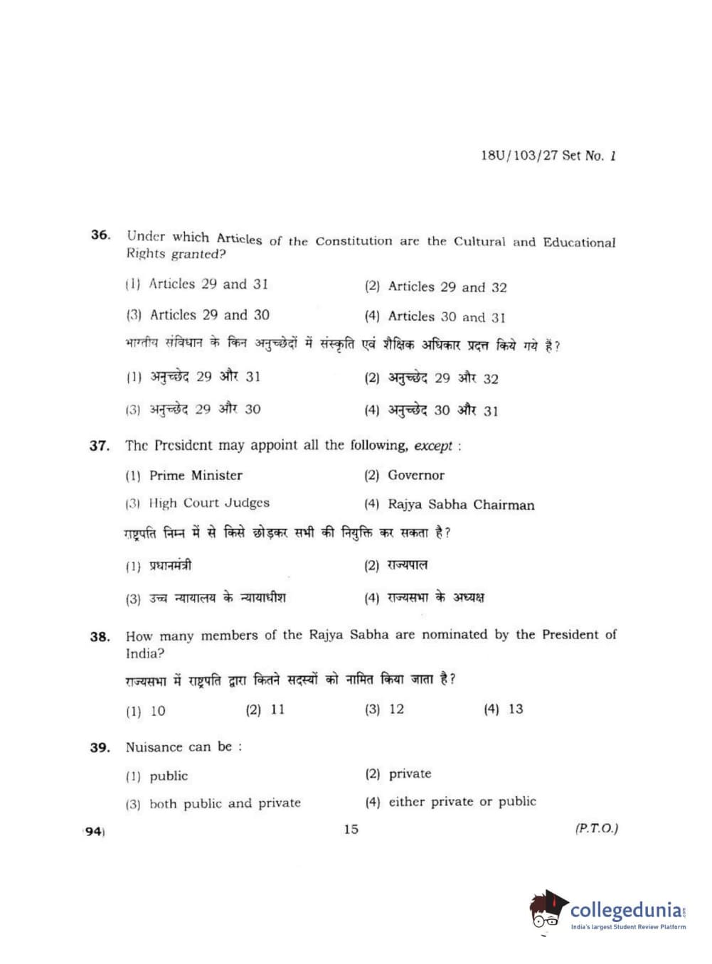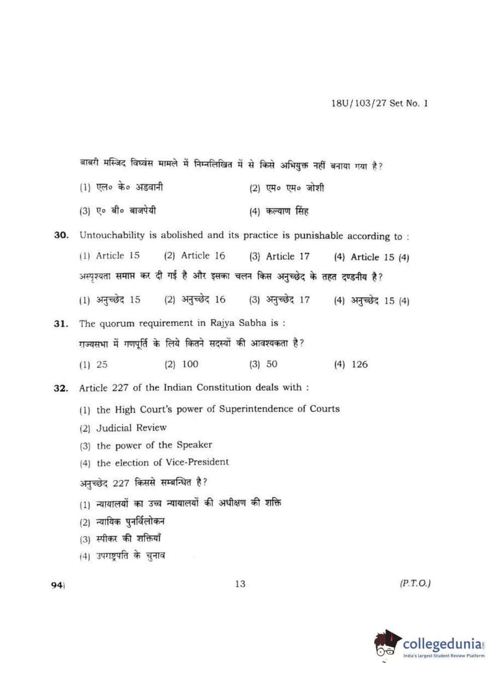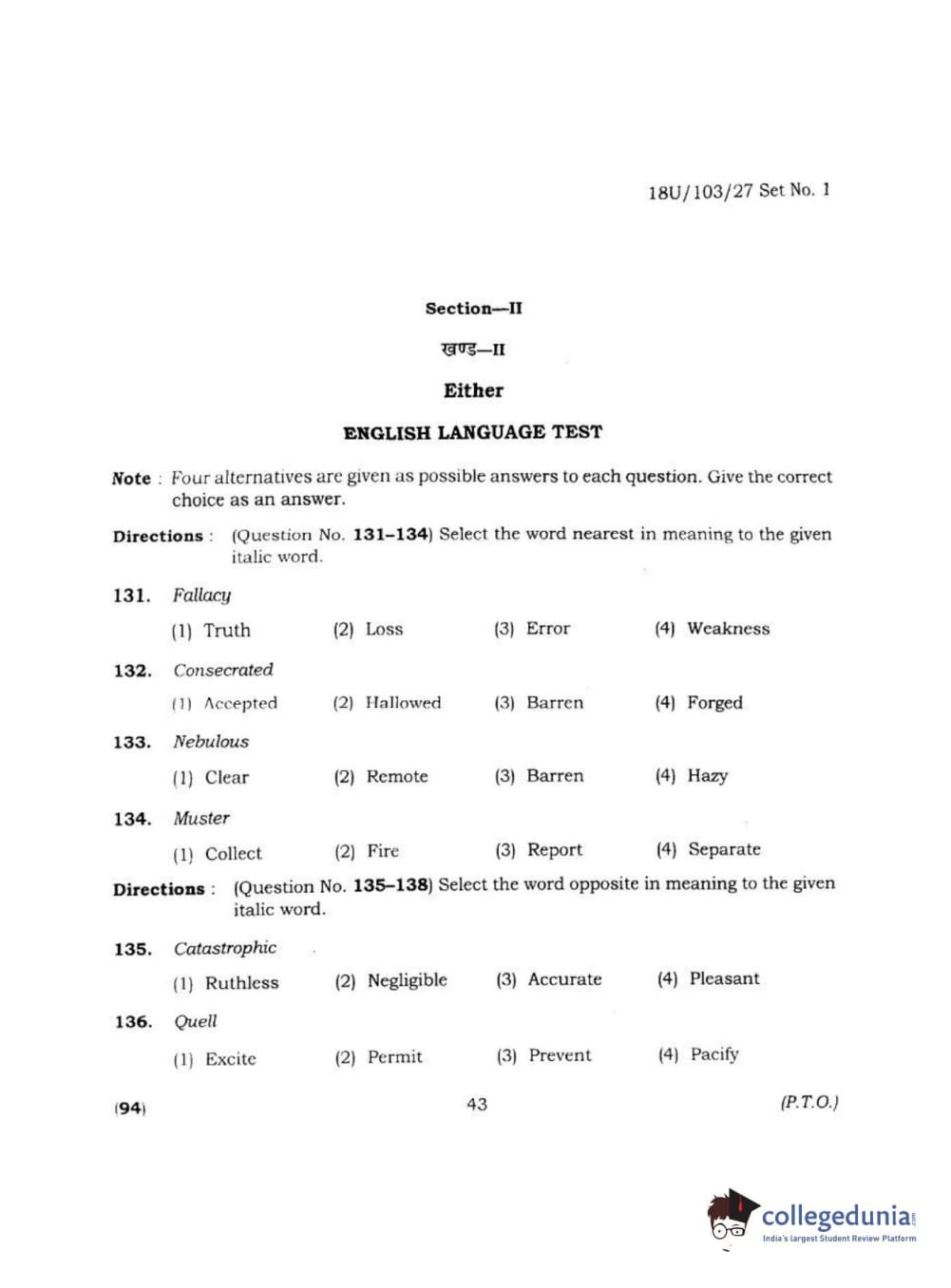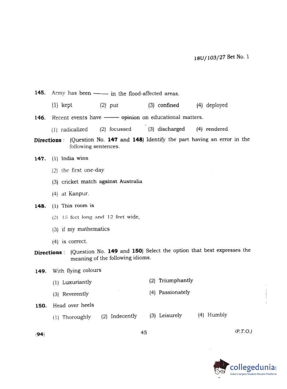 BHU UET 2018 LLB Question paper with answer key pdf conducted on April 1, 2018 in Shift 2 is available for download. The exam was successfully organized by Banaras Hindu University (BHU). The question paper comprised a total of 170 questions.