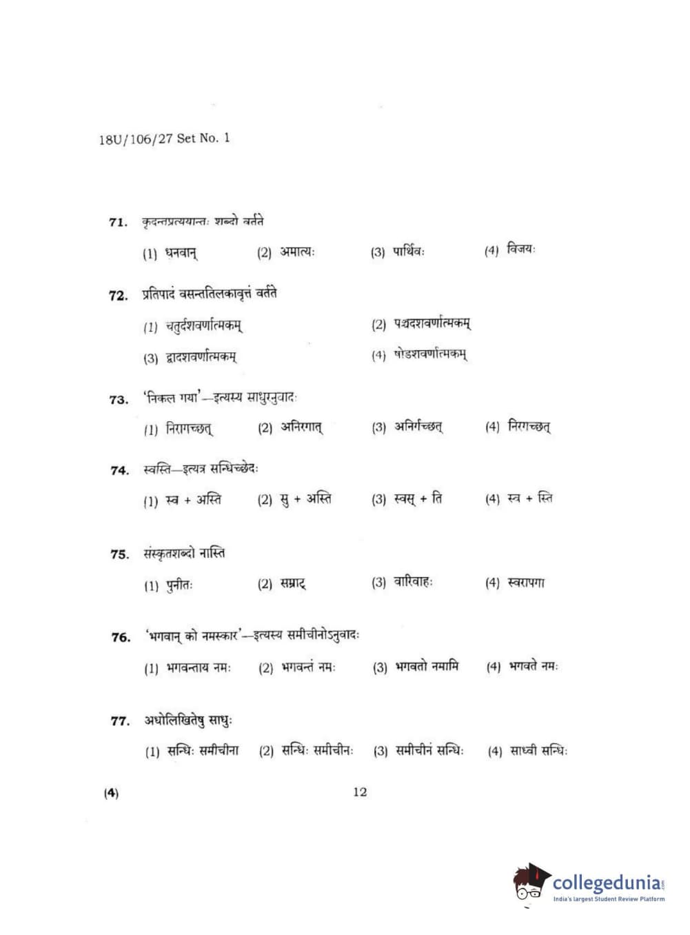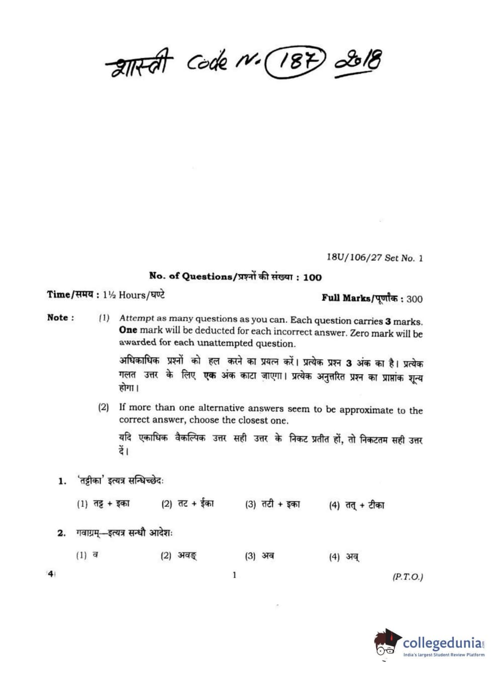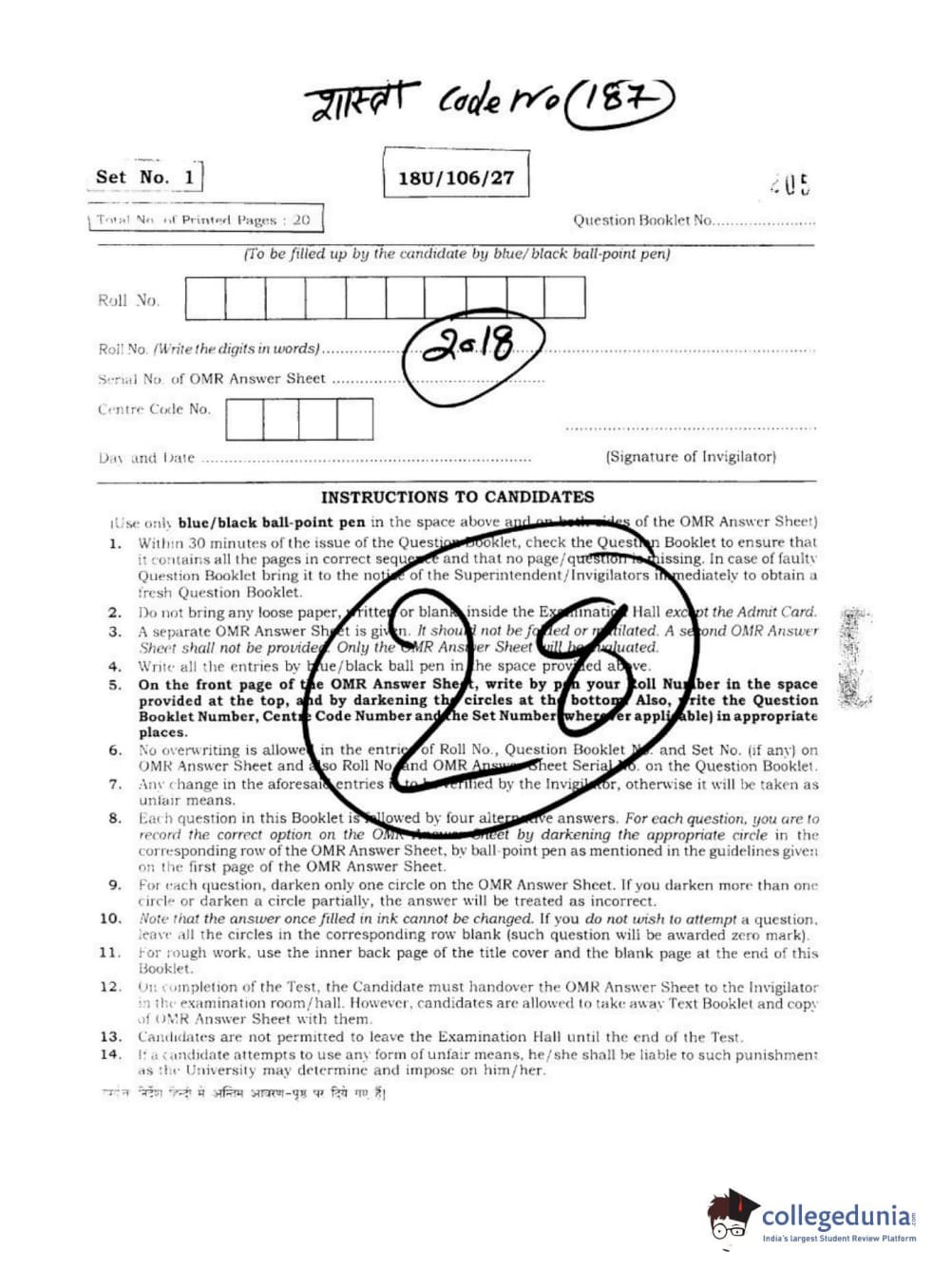 BHU UET 2018 SHASTRI Question paper with answer key pdf conducted on April 1, 2018 in Shift 2 is available for download. The exam was successfully organized by Banaras Hindu University (BHU). The question paper comprised a total of 100 questions.