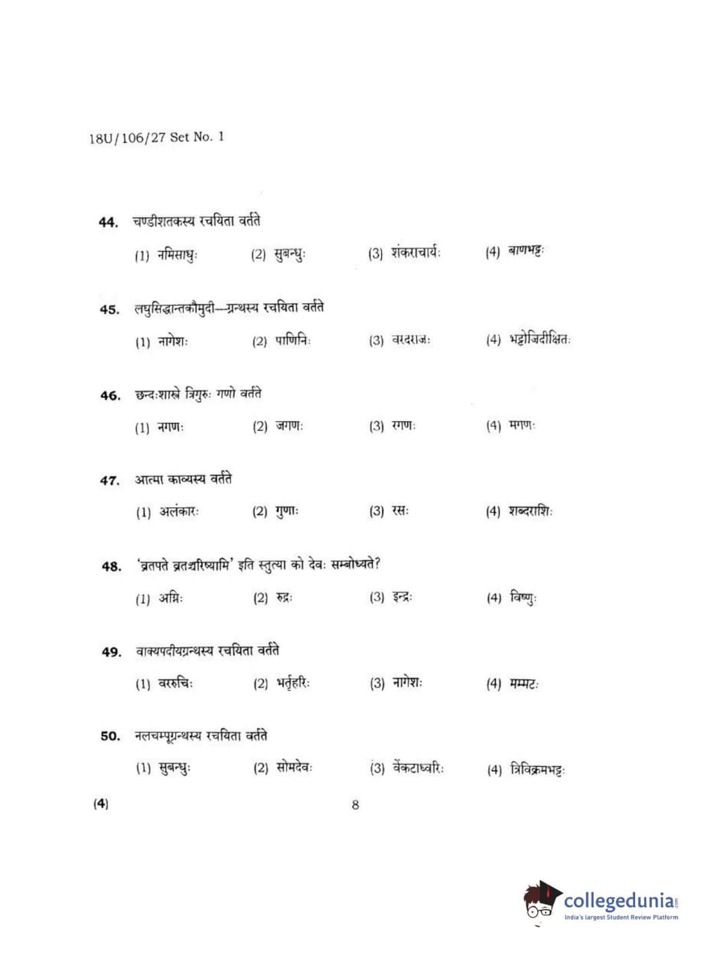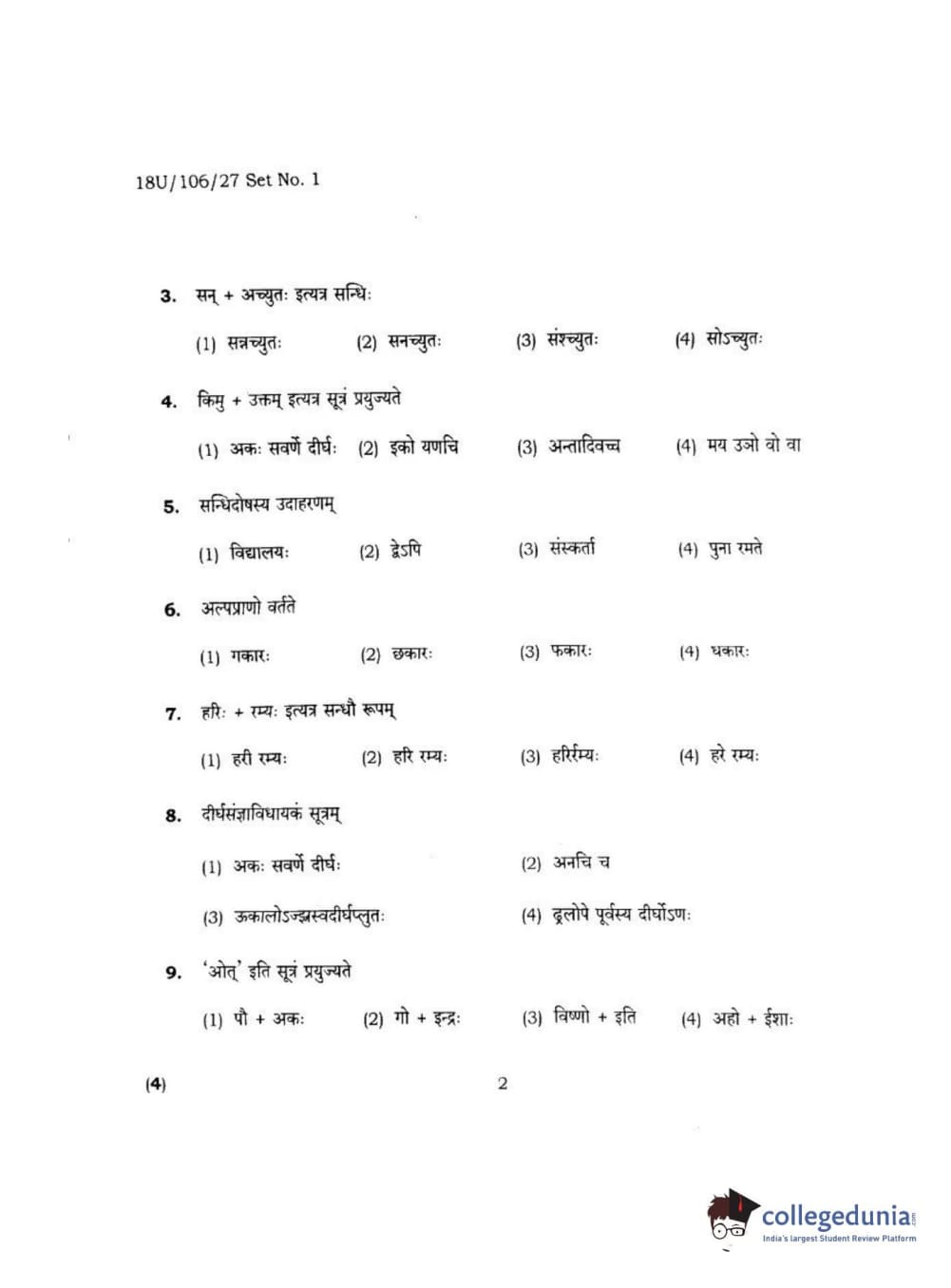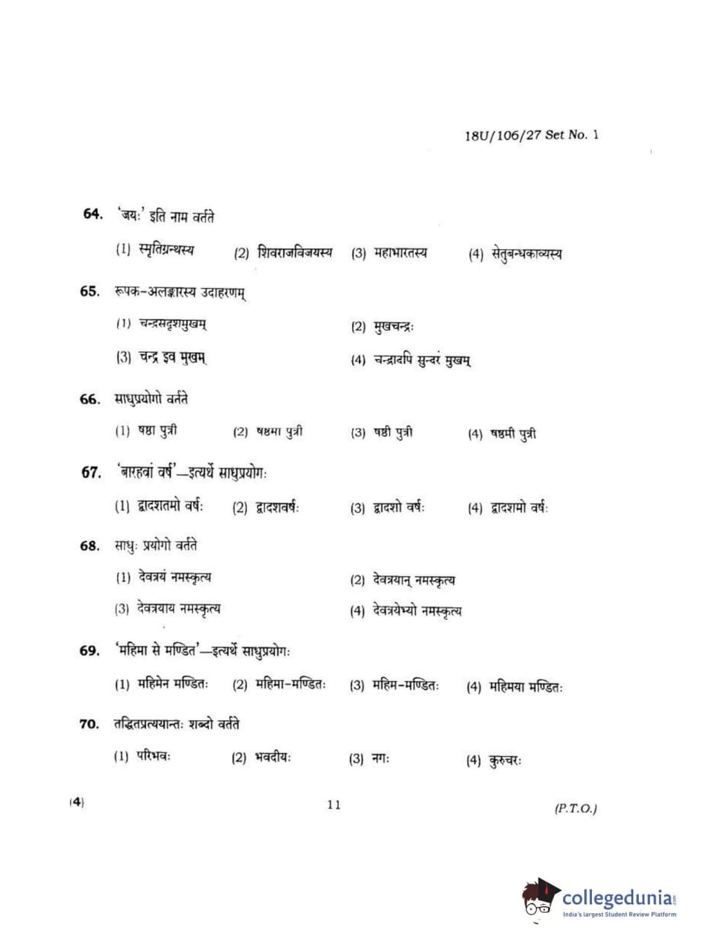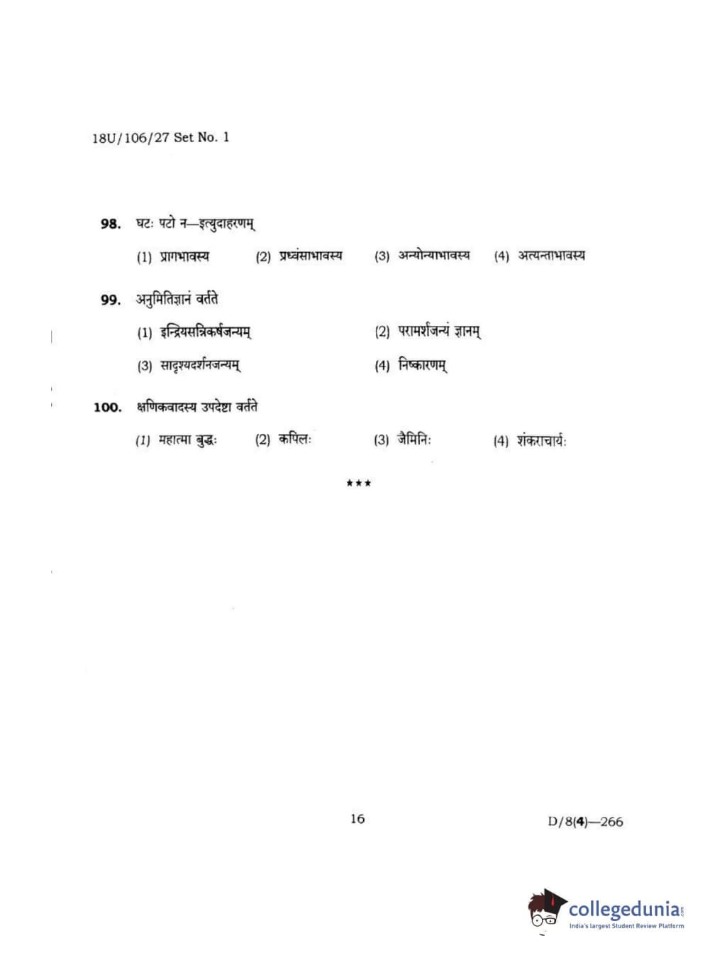 BHU UET 2018 SHASTRI Question Paper with Answer Key PDFs Shift 2