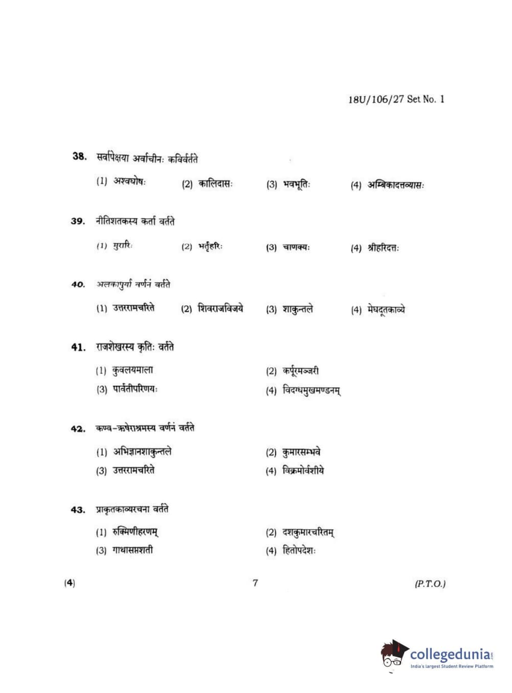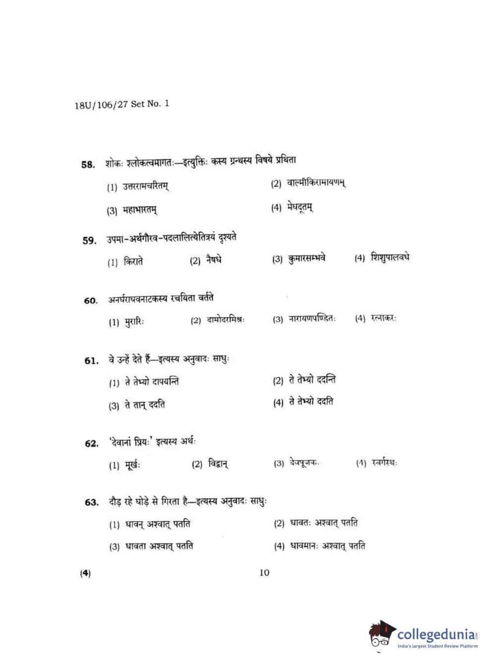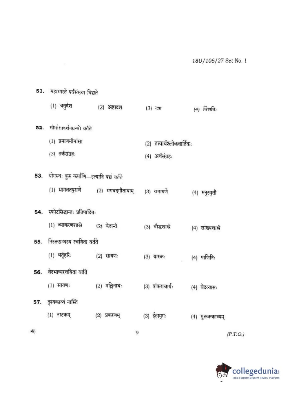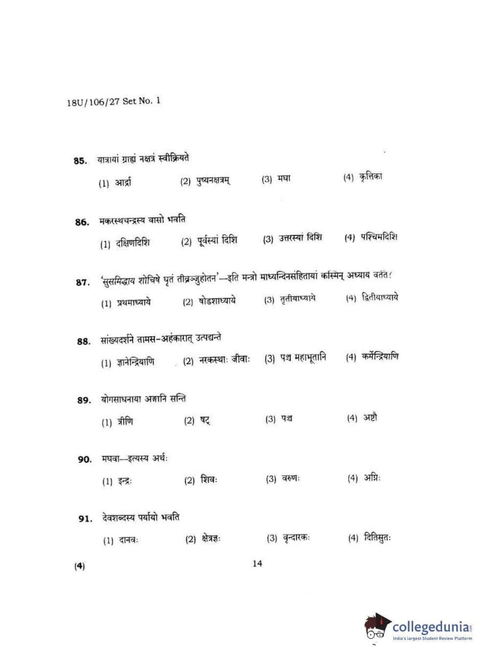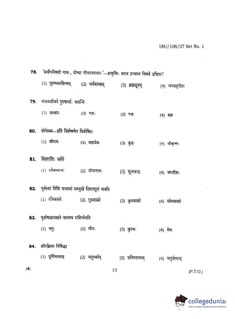 BHU UET 2018 SHASTRI Question Paper with Answer Key PDFs Shift 2