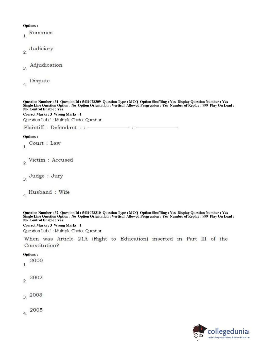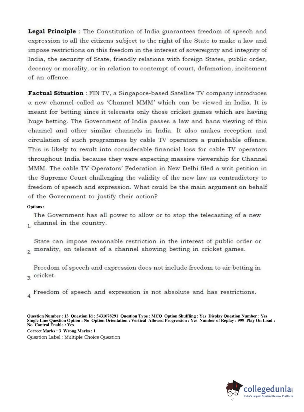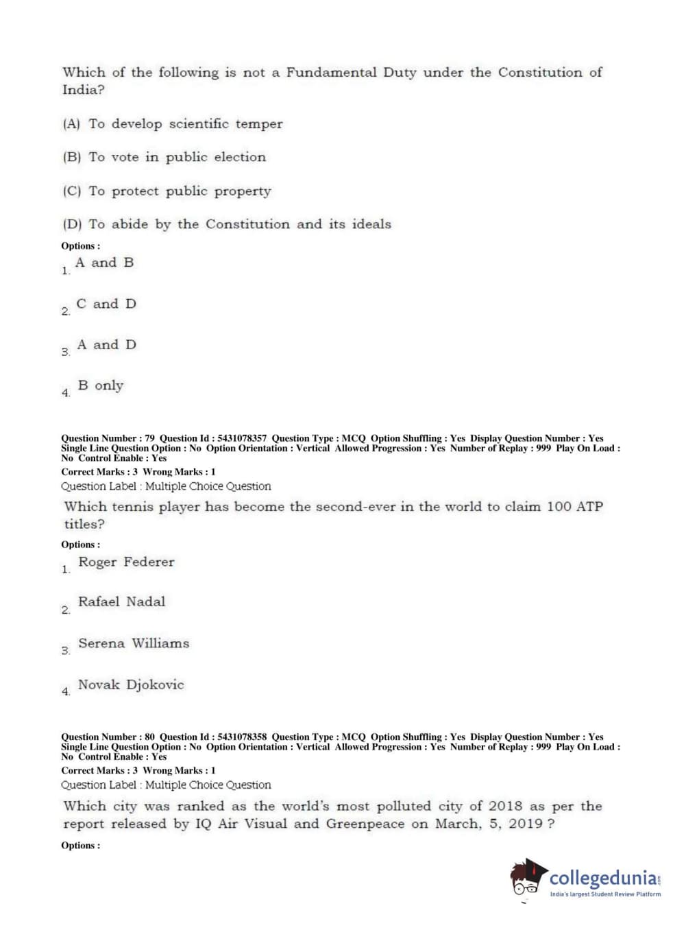 BHU UET 2019 B.A. LLB Question Paper with Answer Key PDFs Shift 1
