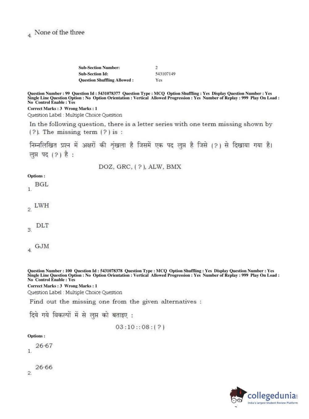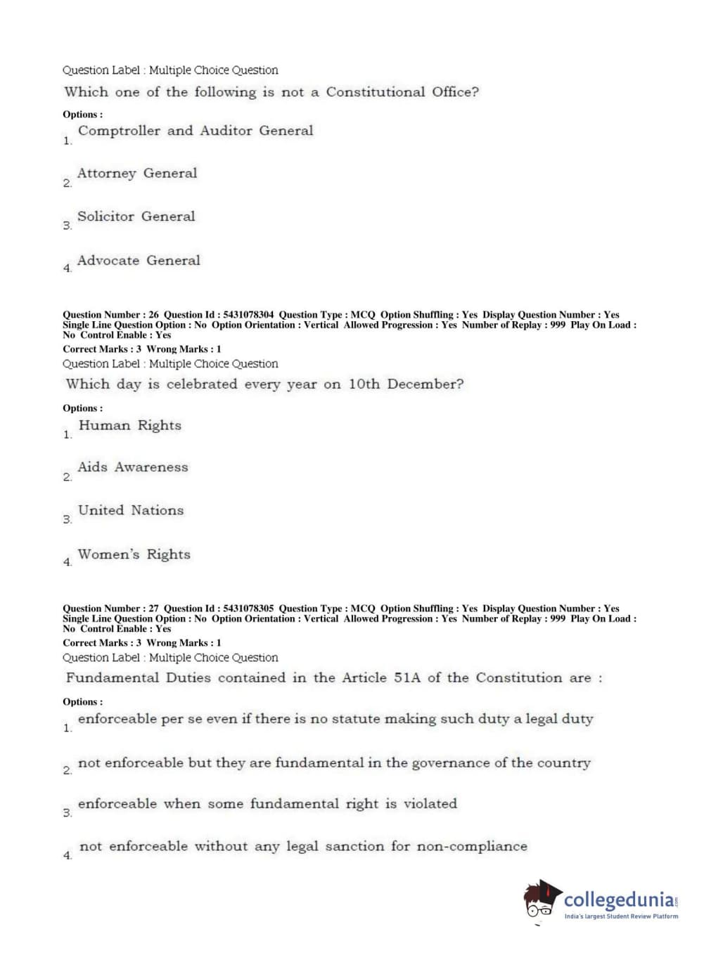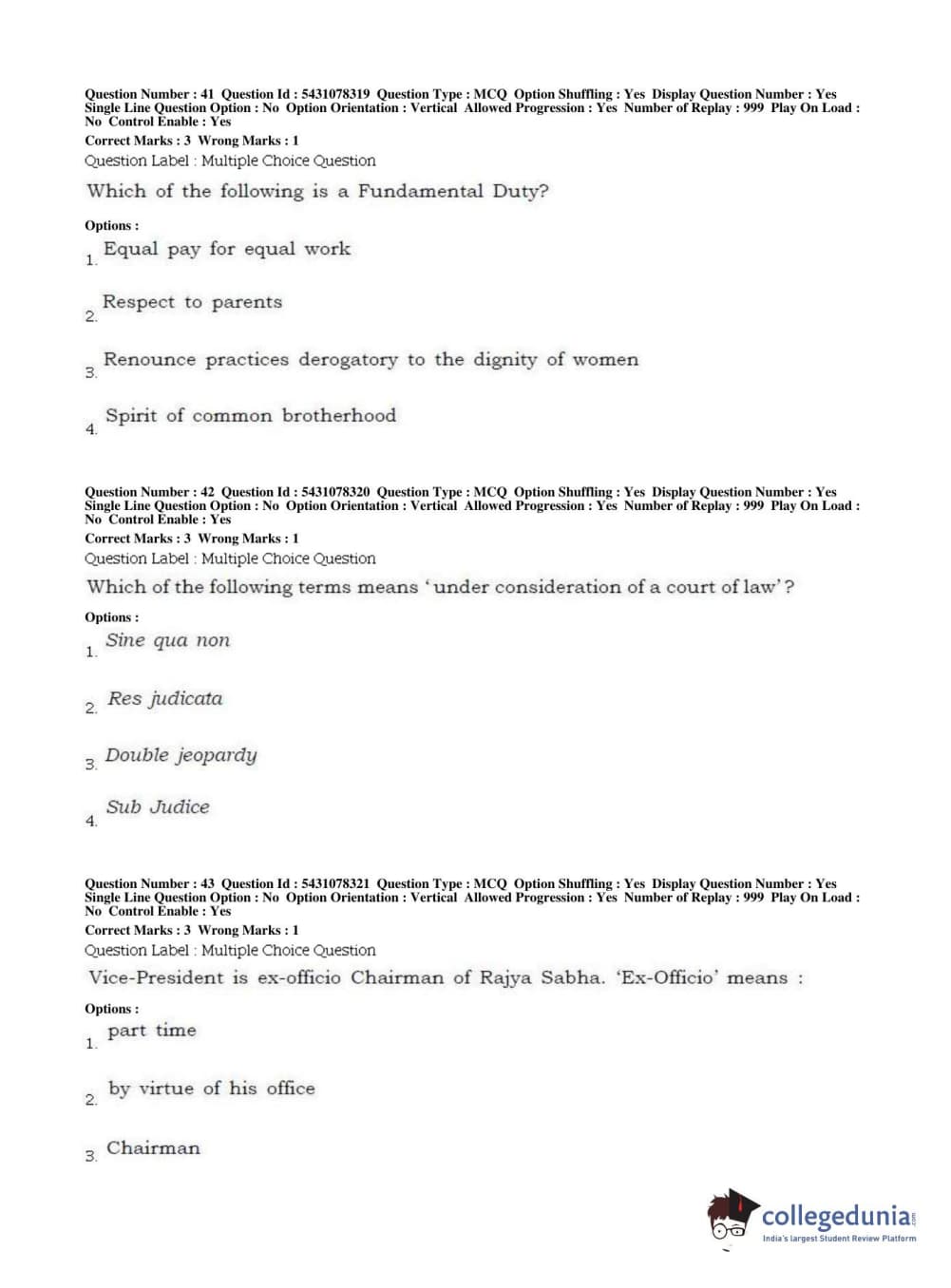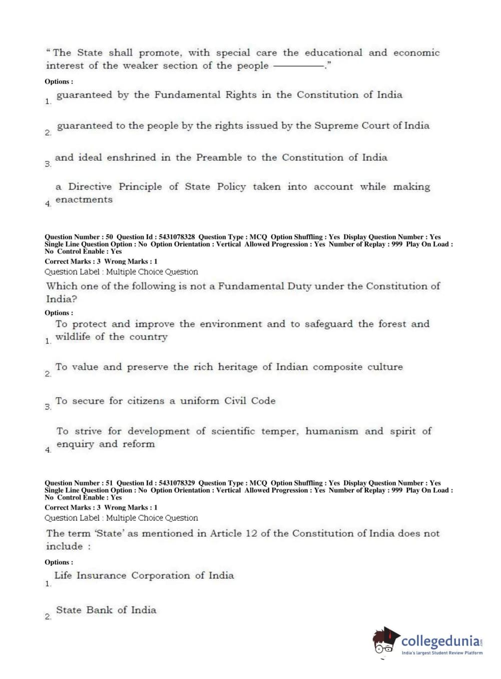 BHU UET 2019 B.A. LLB Question Paper with Answer Key PDFs Shift 1