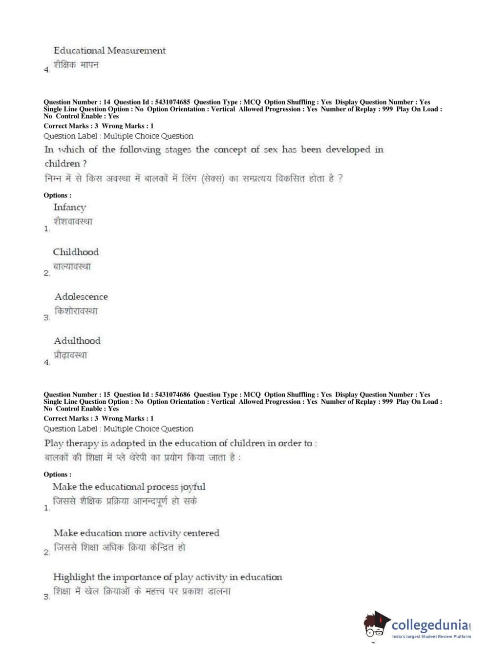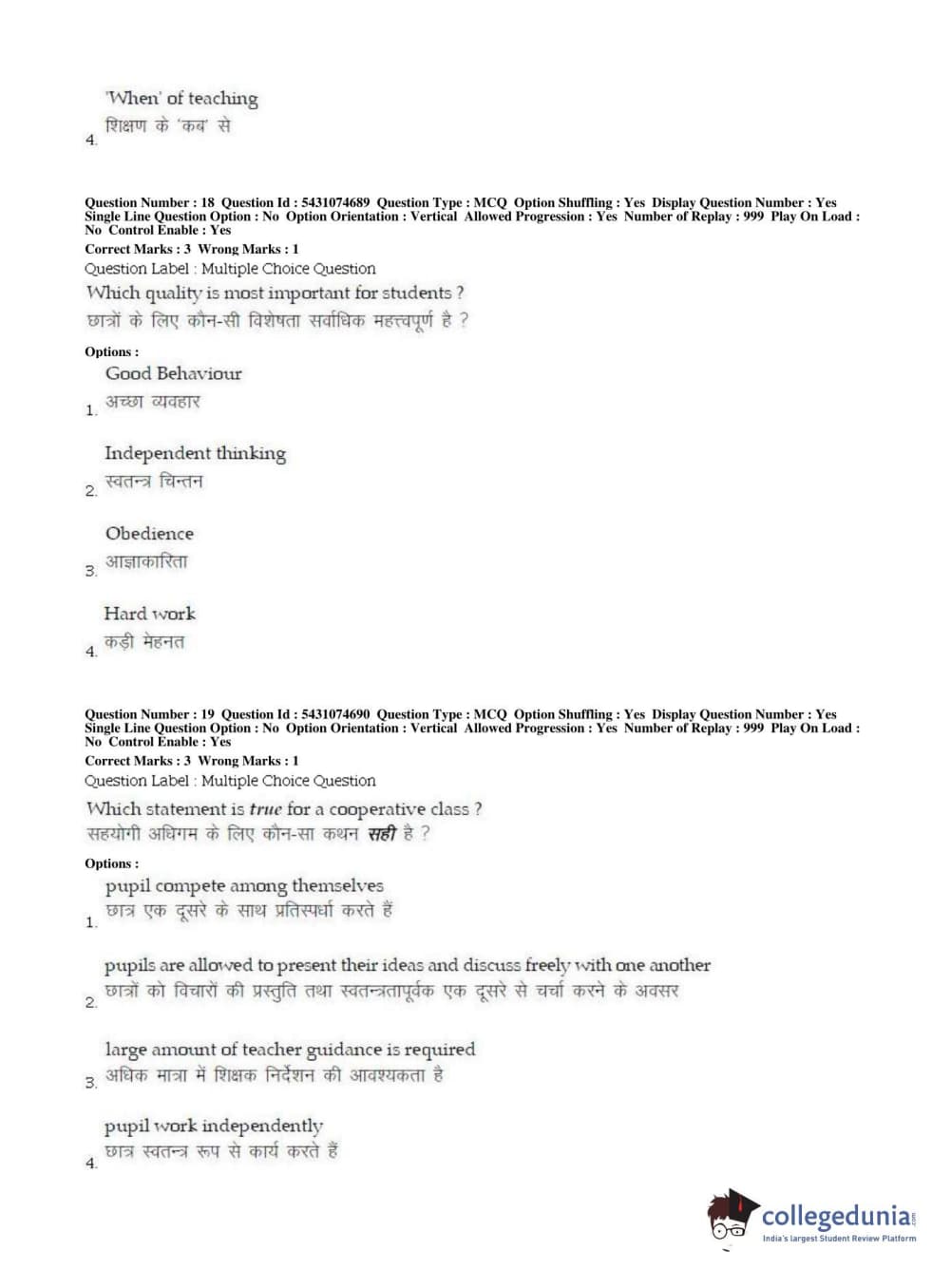 BHU UET 2019 B.ED HUMANITIES Question Paper with Answer Key PDFs Shift 2