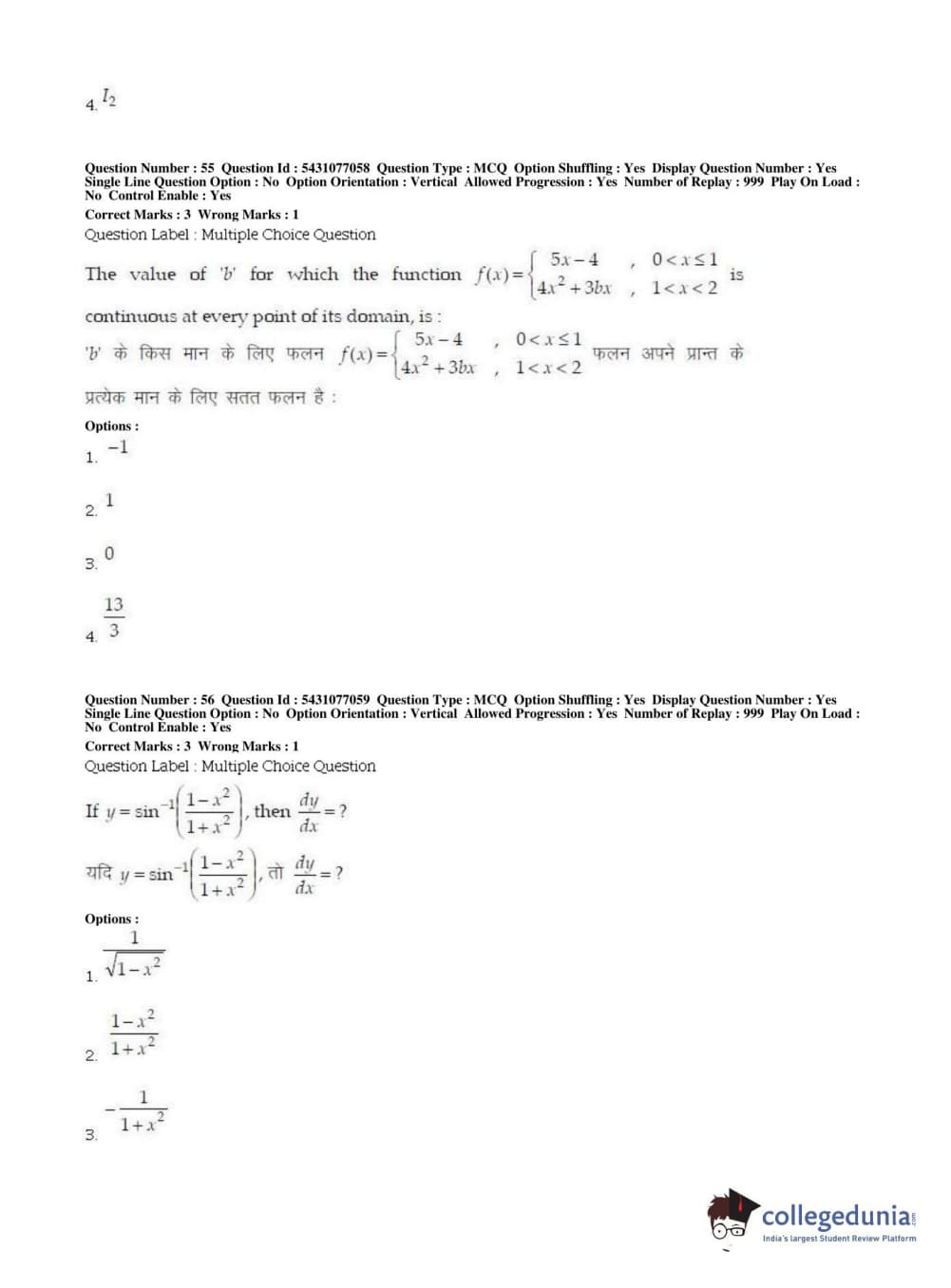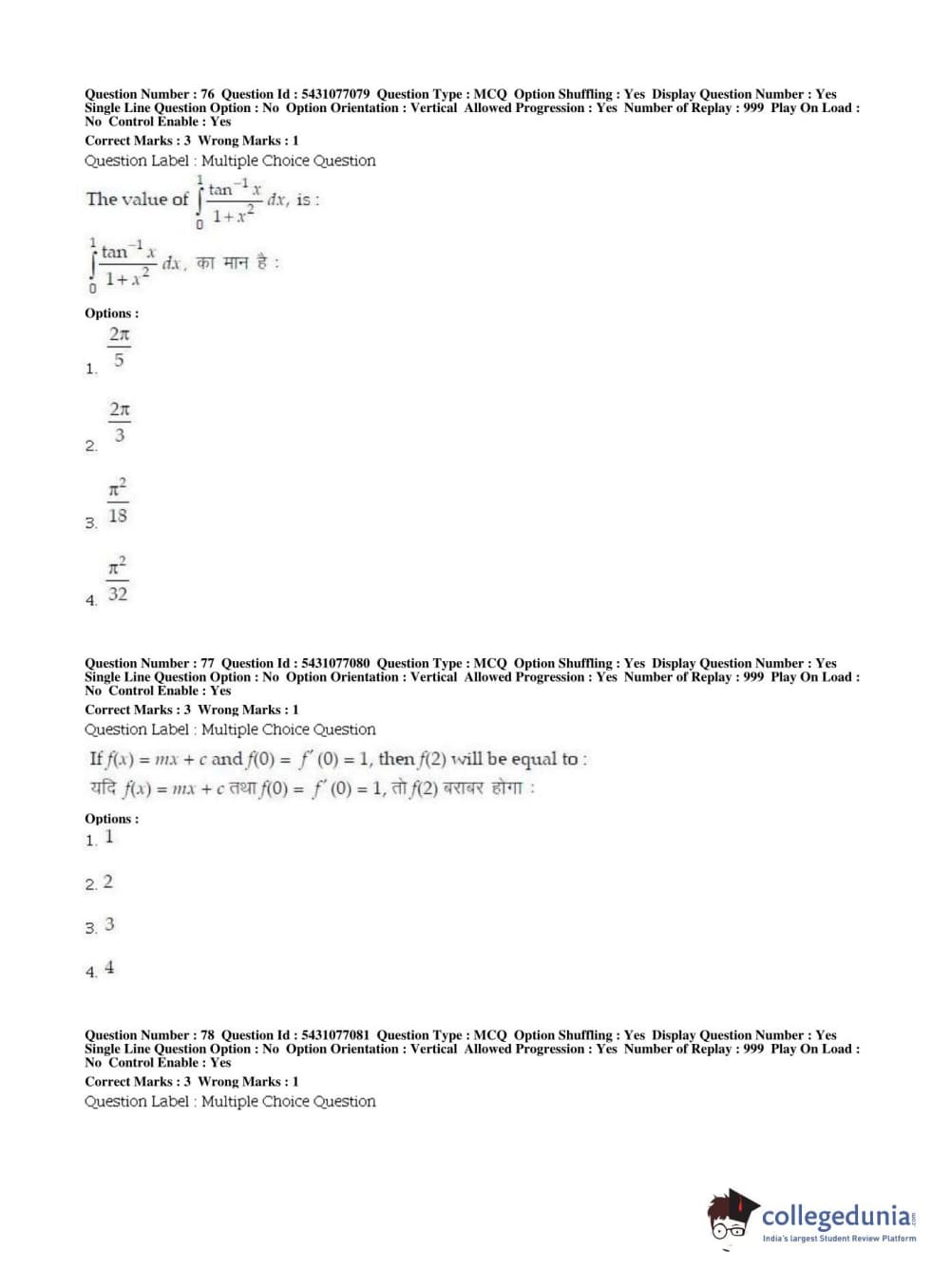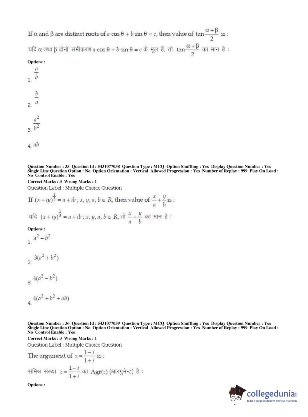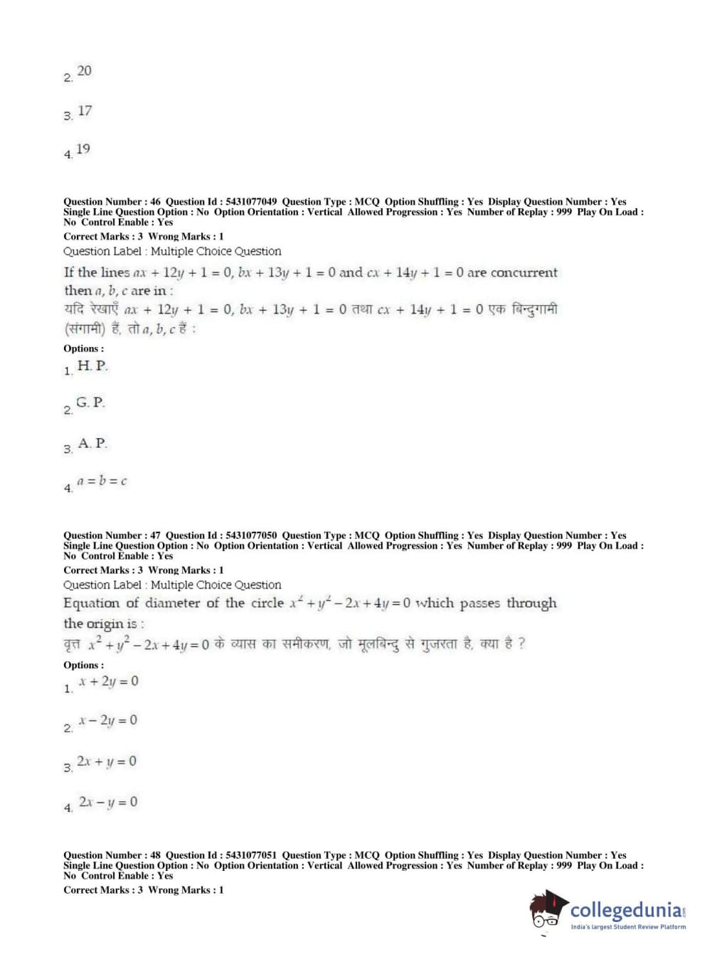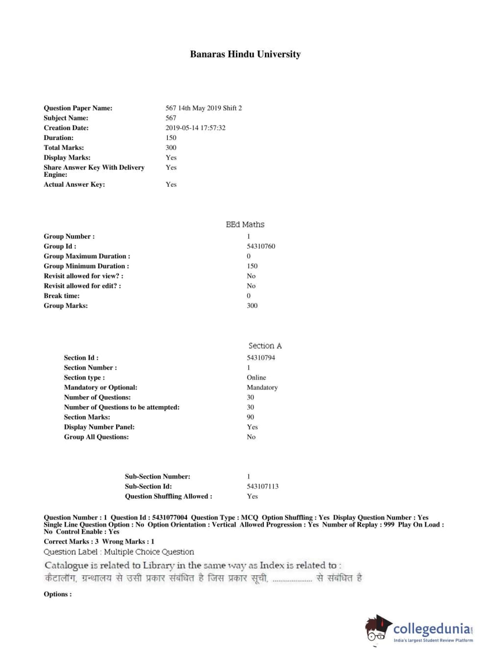 BHU UET 2019 B.ED MATHEMATICS Question Paper with Answer Key PDFs Shift 2