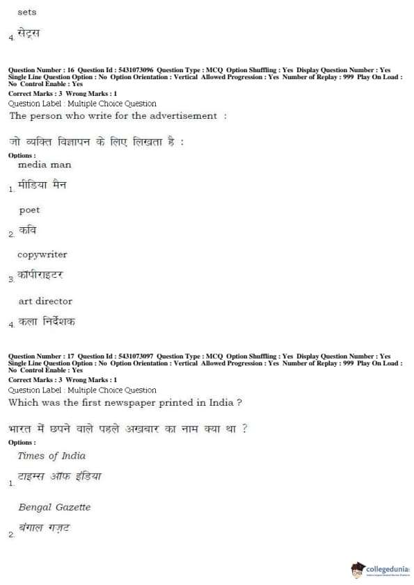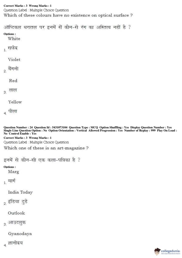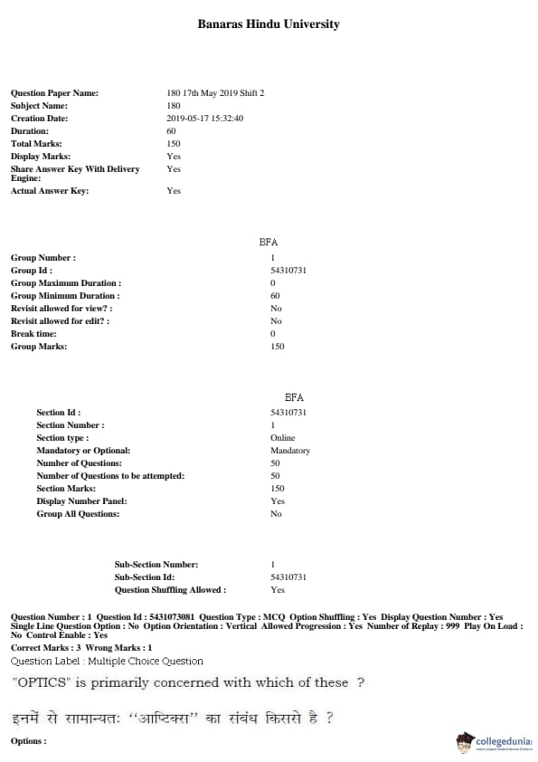 BHU UET 2019 BFA Question paper with answer key pdf conducted on May 17, 2019 in Shift 2 is available for download. The exam was successfully organized by Banaras Hindu University (BHU). The question paper comprised a total of 50 questions.