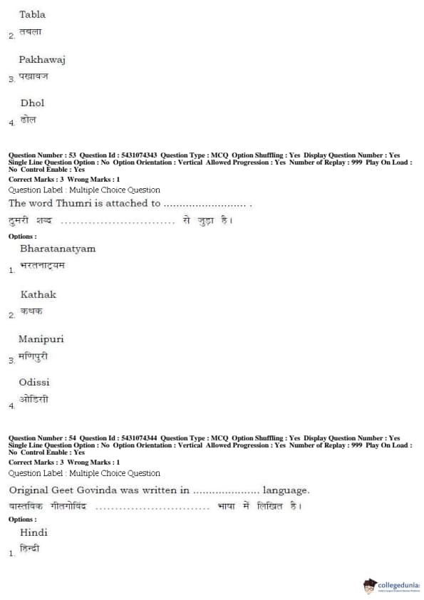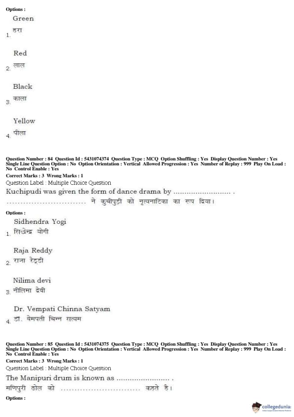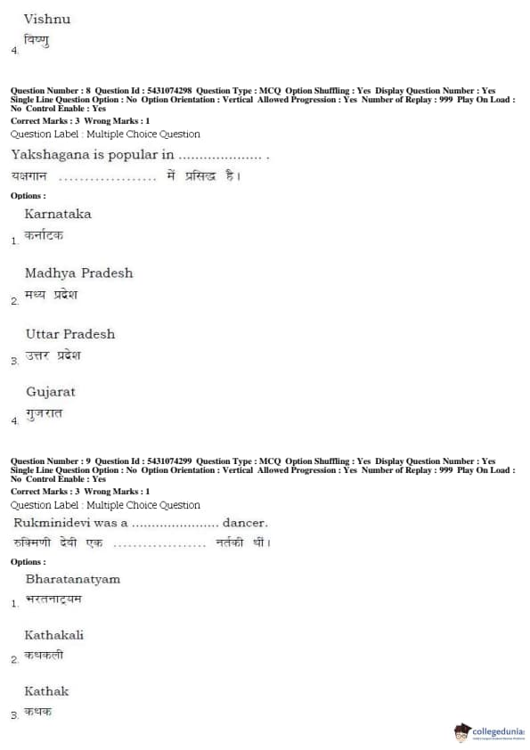 BHU UET 2019 B.P.A BHARATNATYAM Question Paper with Answer Key PDFs Shift 1