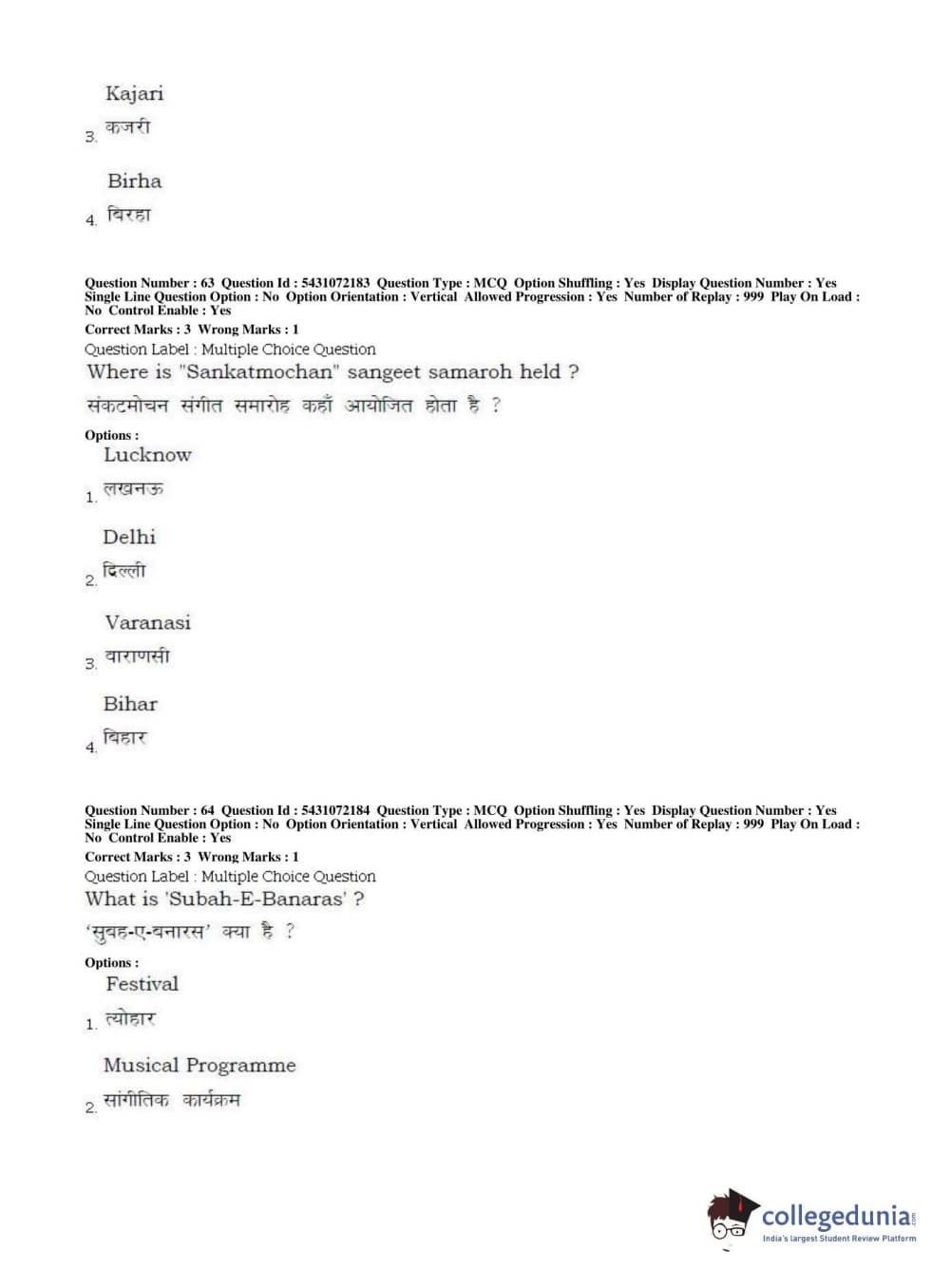 BHU UET 2019 B.P.A VOCAL Question paper with answer key pdf conducted on May 17, 2019 in Shift 1 is available for download. The exam was successfully organized by Banaras Hindu University (BHU). The question paper comprised a total of 100 questions.