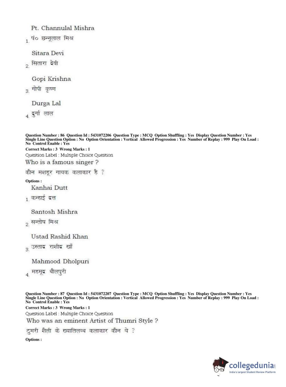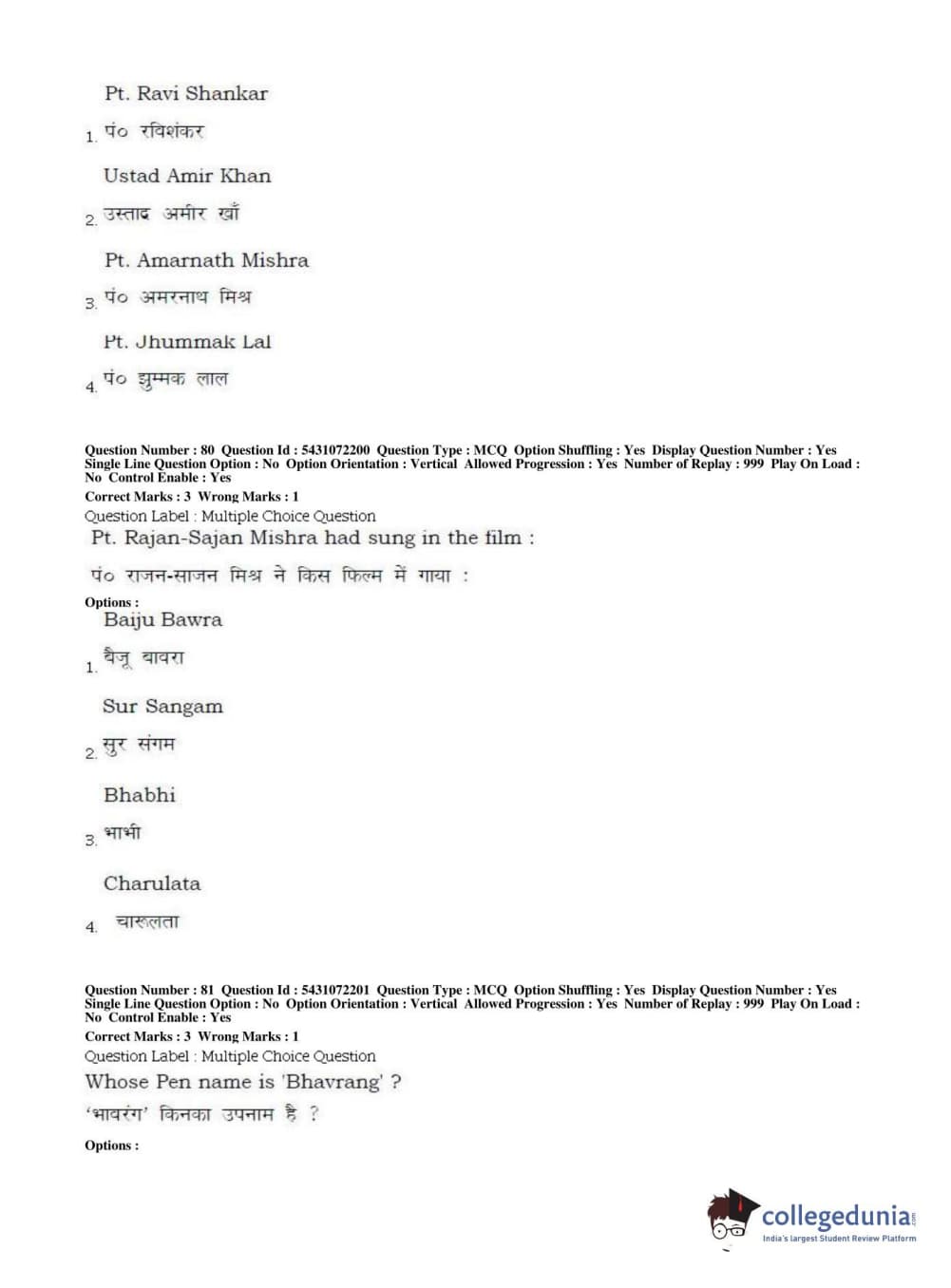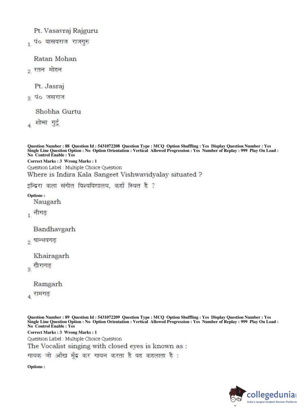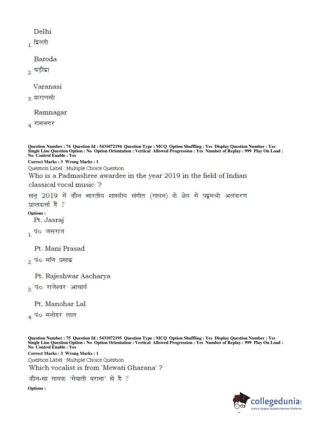 BHU UET 2019 B.P.A VOCAL Question Paper with Answer Key PDFs Shift 1
