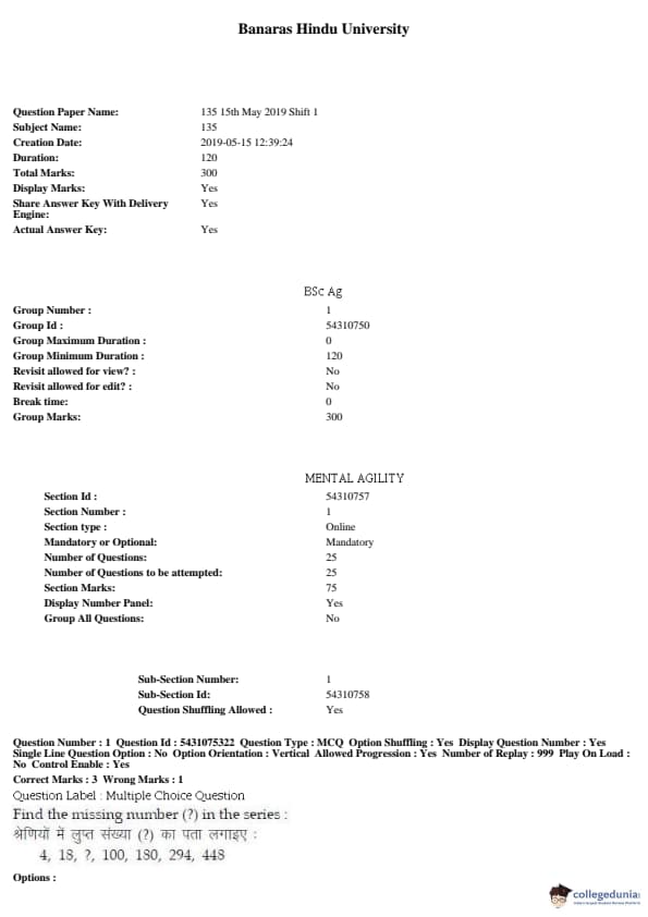 BHU UET 2019 B.Sc (AG.) Question paper with answer key pdf conducted on May 15, 2019 in Shift 1 is available for download. The exam was successfully organized by Banaras Hindu University (BHU). The question paper comprised a total of 200 questions.