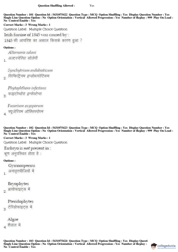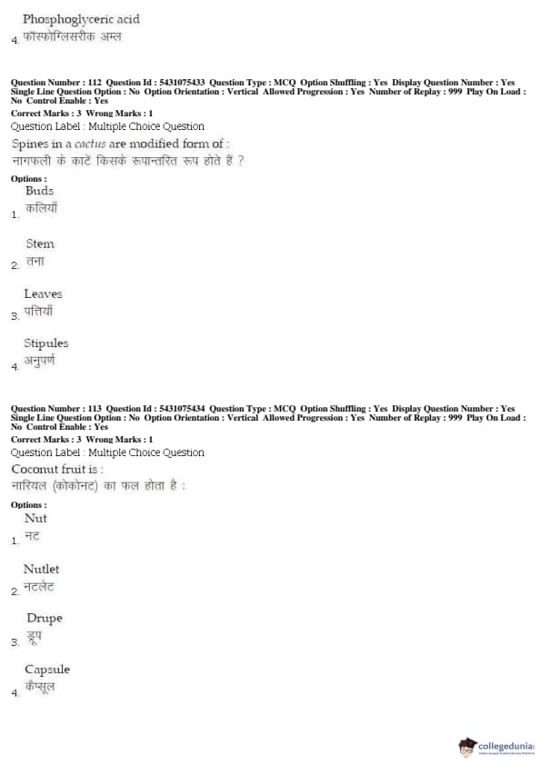 BHU UET 2019 B.Sc (AG.) Question Paper with Answer Key PDFs Shift 1