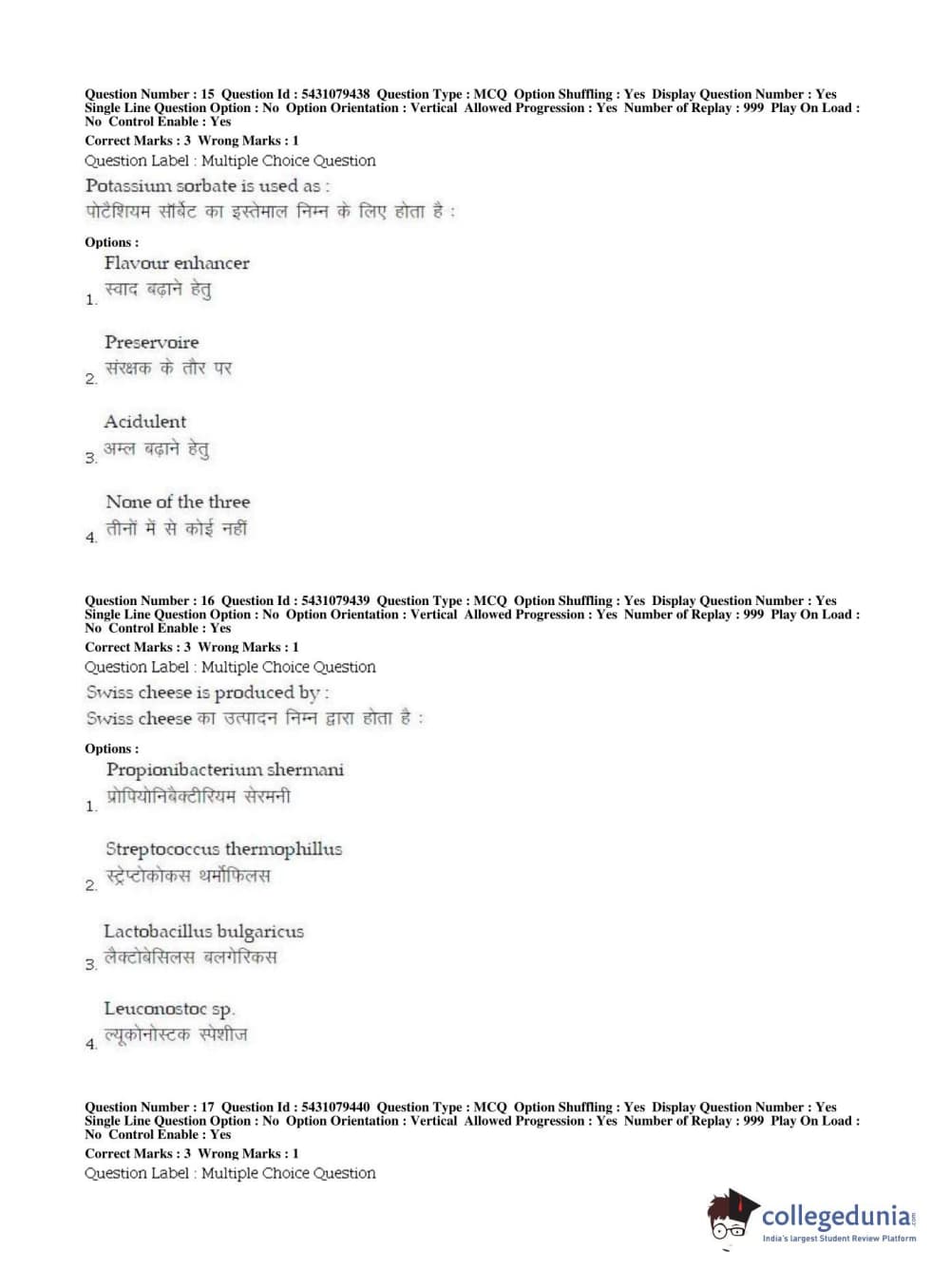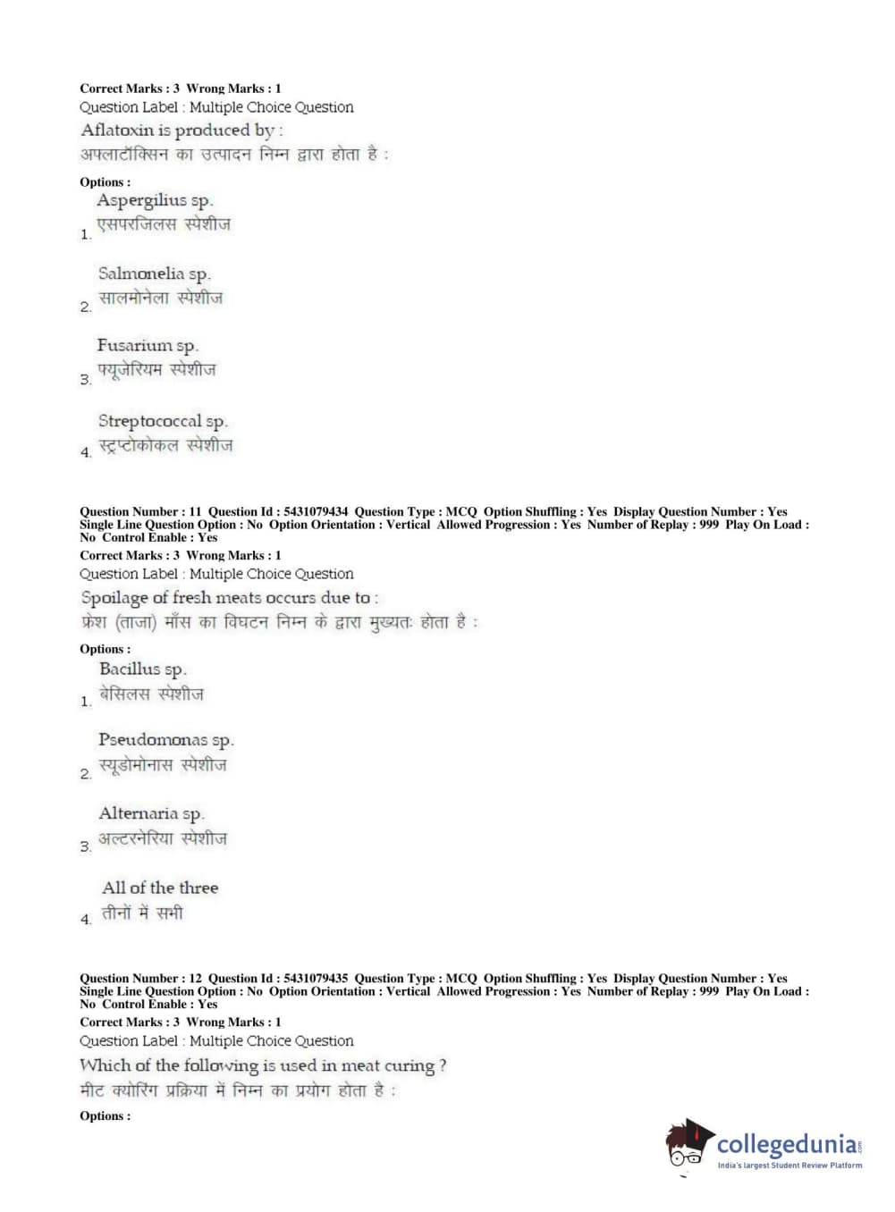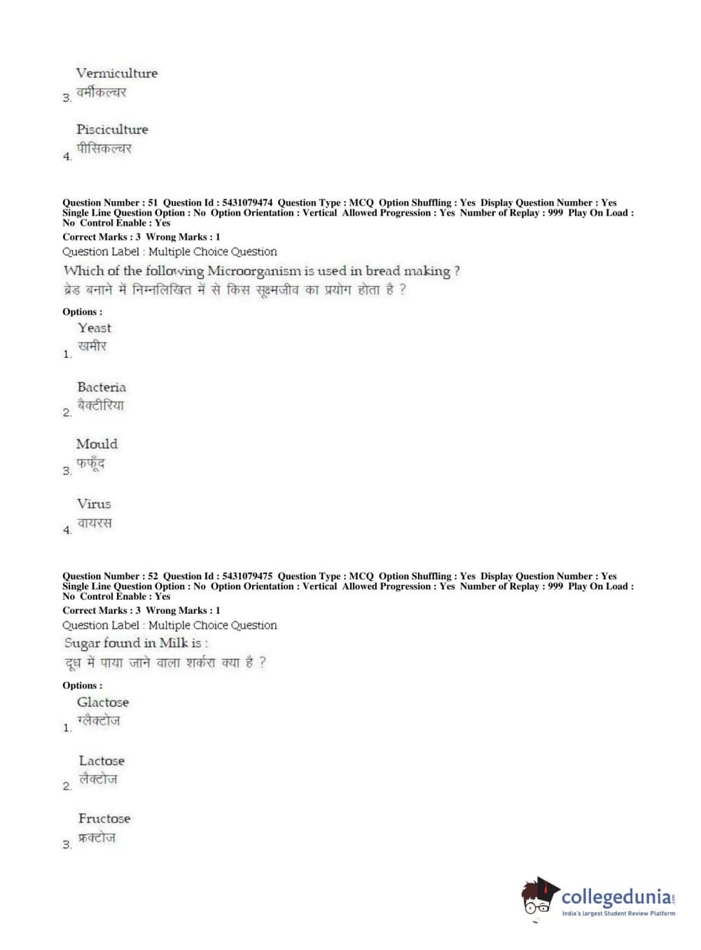 BHU UET 2019 B.VOC IN FOOD PROCESSING & MLT Question Paper with Answer Key PDFs Shift 2