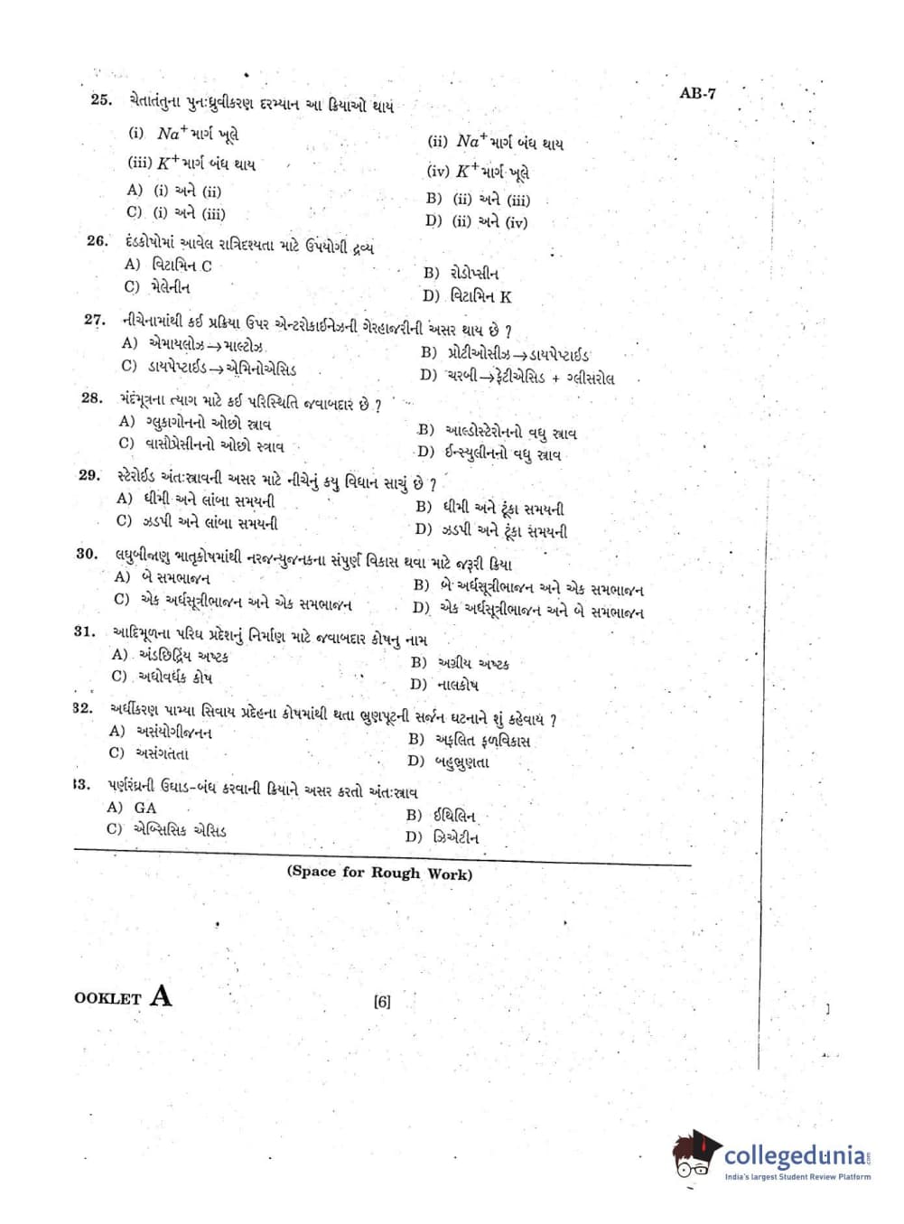 GUJCET 2007 Biology Question Paper with Answer Key PDFs in Gujarati