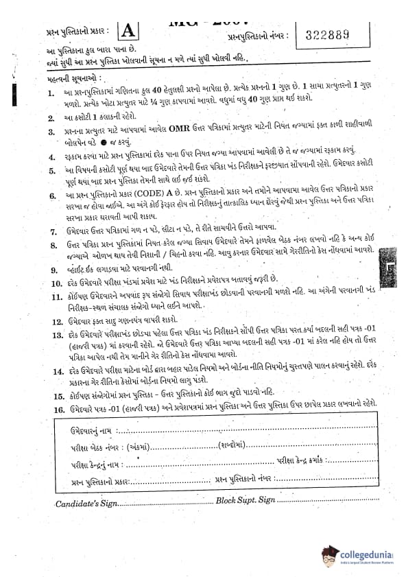 GUJCET 2007 Mathematics Question paper with answer key pdf is available for download. The exam was successfully organized by GSEB. The question paper comprised a total of 80 questions.
