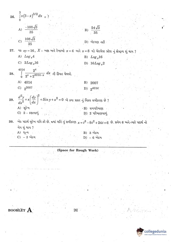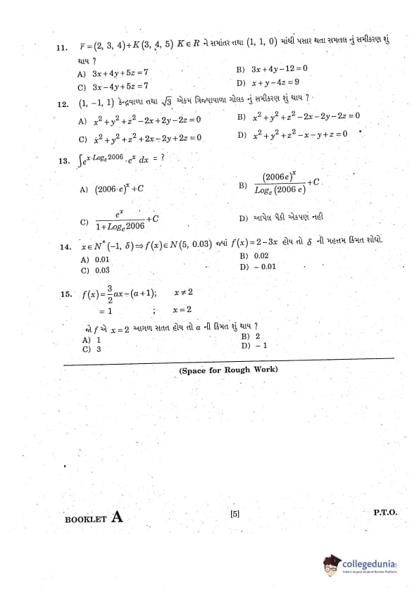 GUJCET 2007 Mathematics Question Paper with Answer Key PDFs in Gujarati
