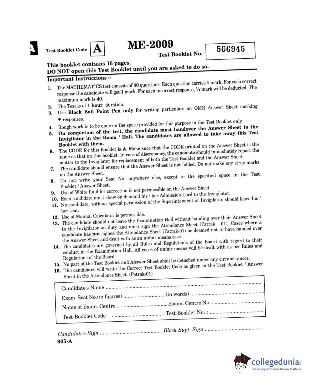 GUJCET 2009 Mathematics Question paper with answer key pdf is available for download. The exam was successfully organized by GSEB. The question paper comprised a total of 80 questions.