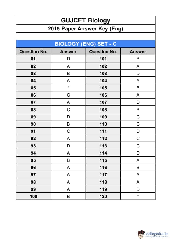 | GUJCET 2015 Biology Question Paper PDF | GUJCET 2015 Biology Answer Key PDF |