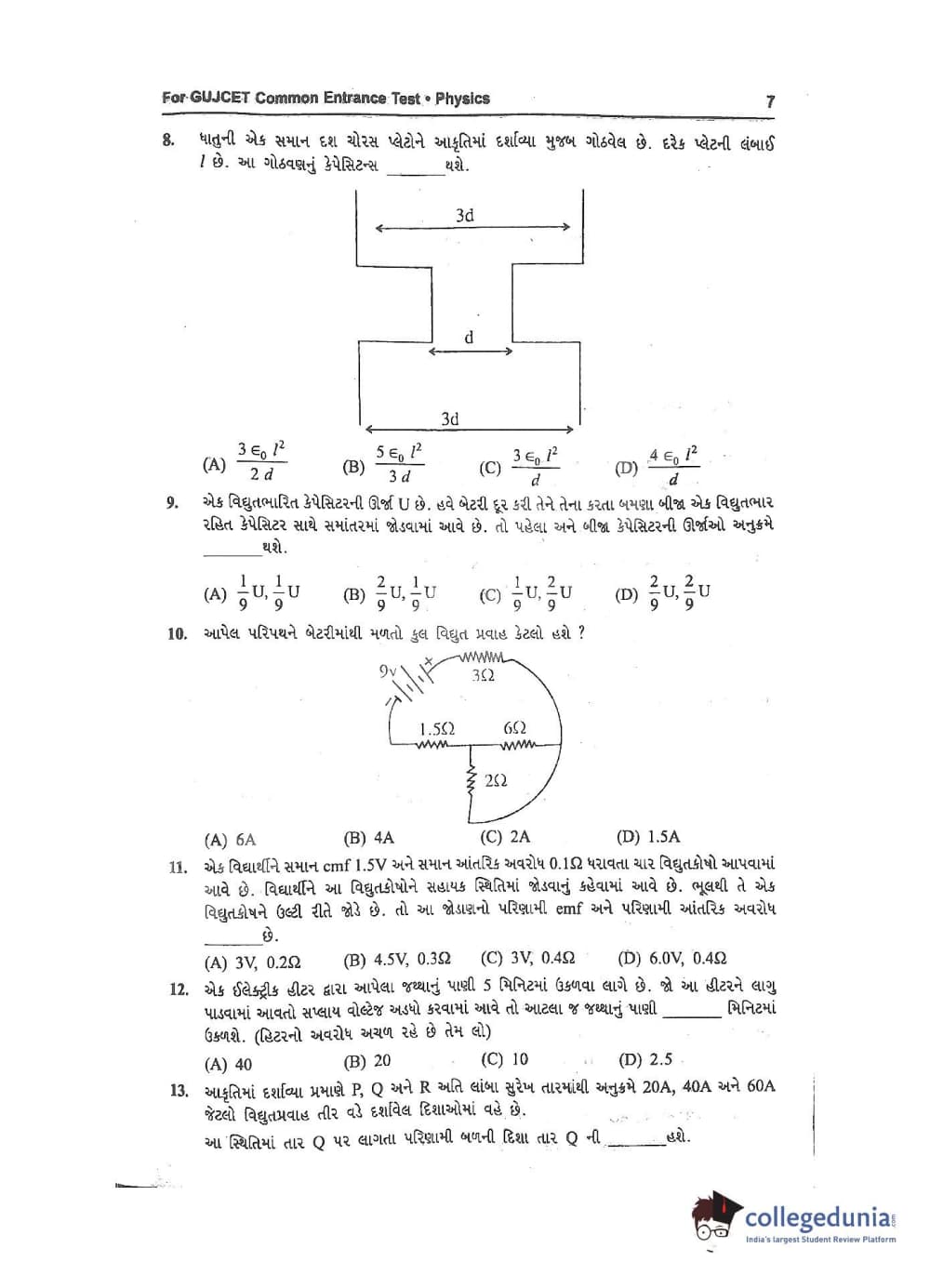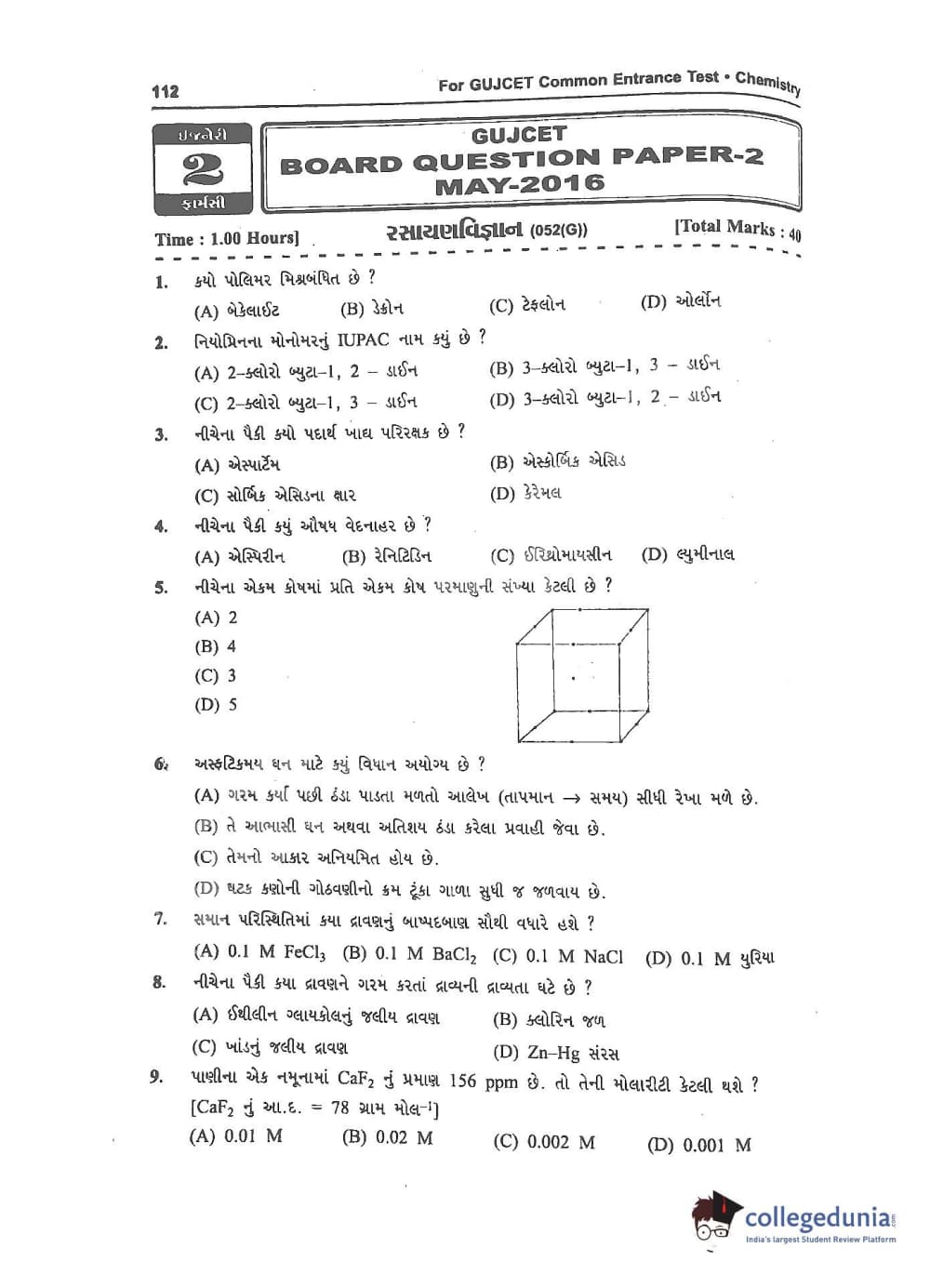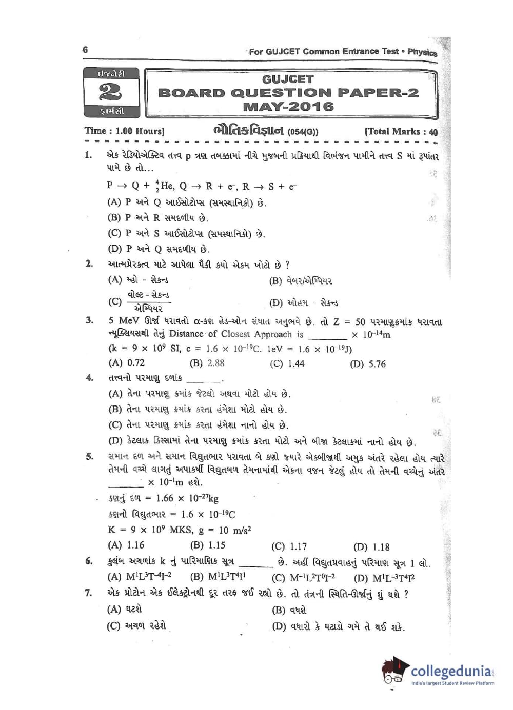 GUJCET 2016 Physics & Chemistry Question Paper with Answer Key PDFs in Gujarati