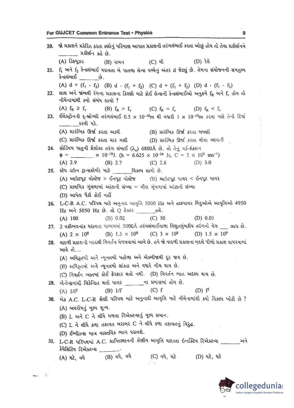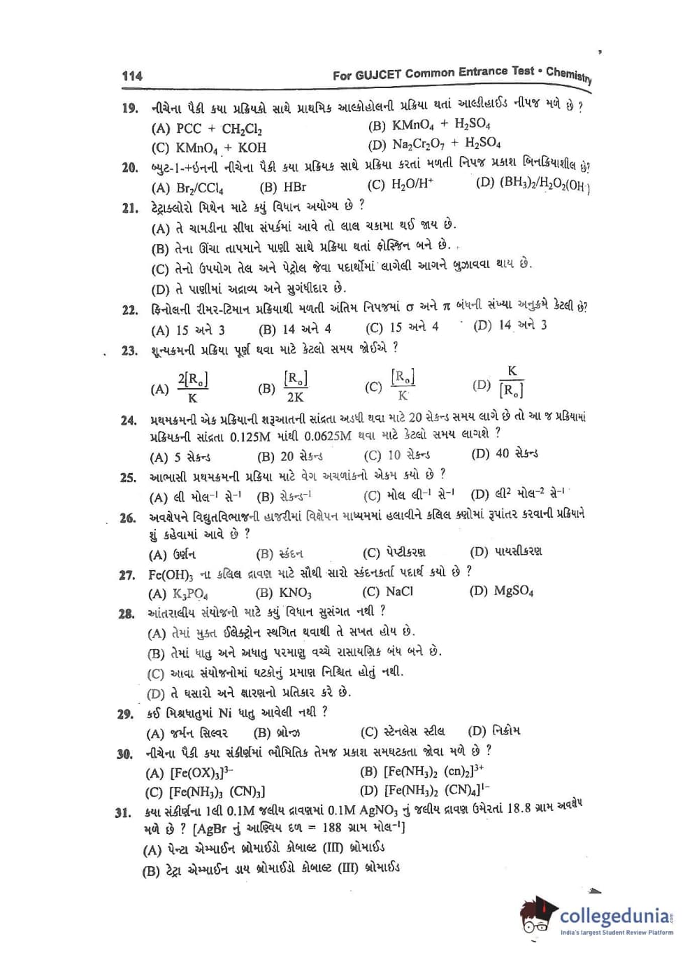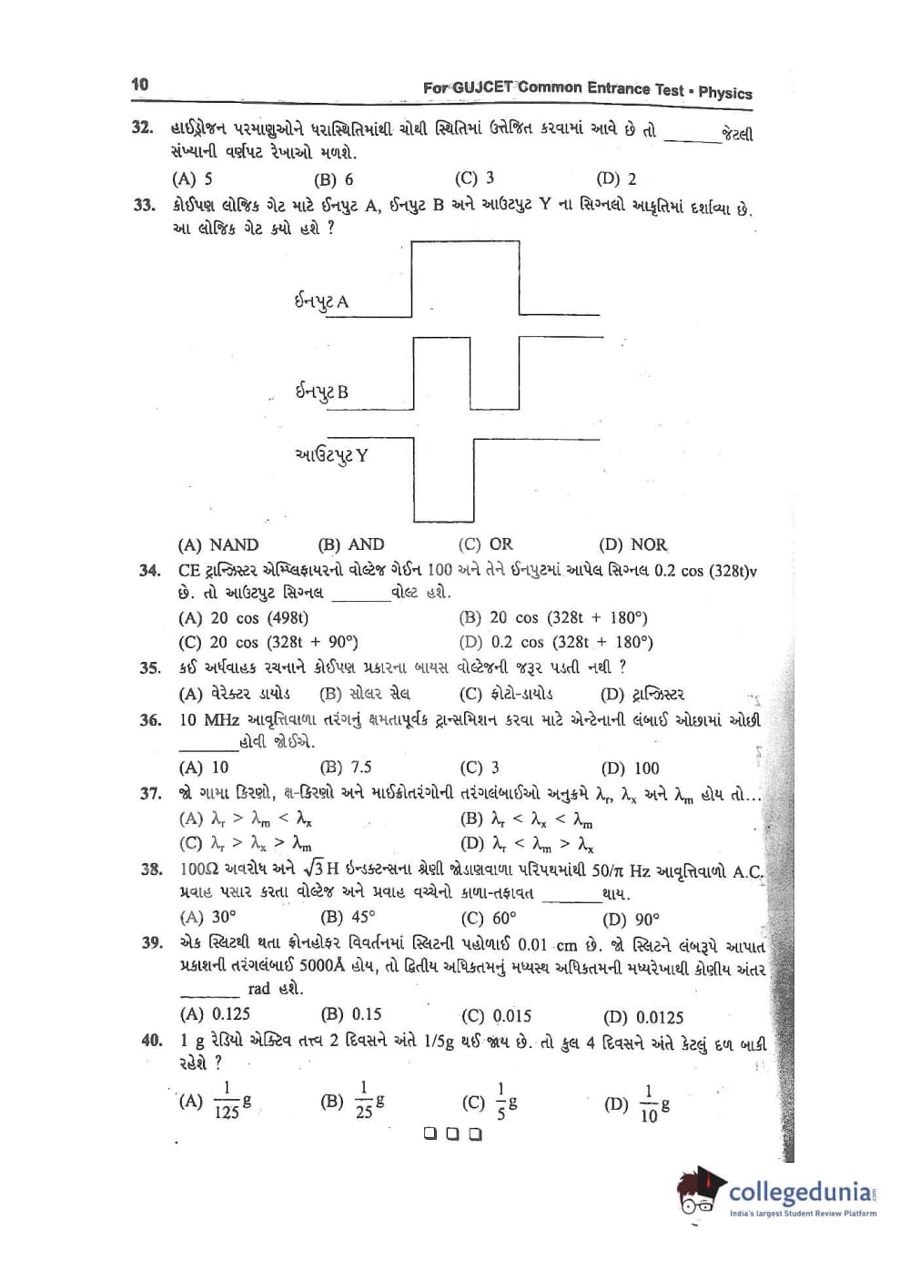 GUJCET 2016 Physics & Chemistry Question paper with answer key pdf conducted on May 10, 2016 is available for download. The exam was successfully organized by GSEB. The question paper comprised a total of 80 questions.