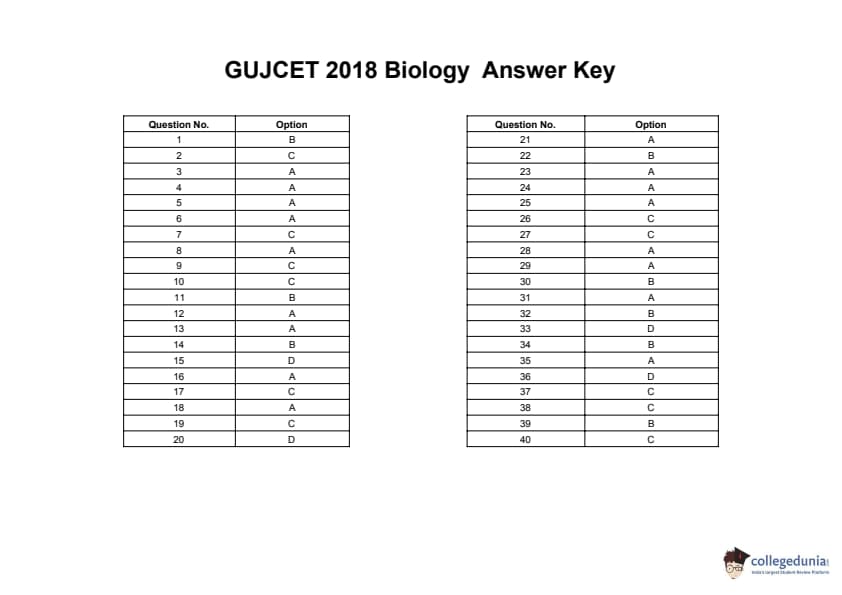 | GUJCET 2018 Biology Question Paper PDF | GUJCET 2018 Biology Answer Key PDF |