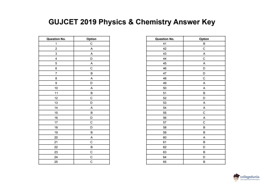 | GUJCET 2019 Physics & Chemistry Question Paper PDF | GUJCET 2019 Physics & Chemistry Answer Key PDF |