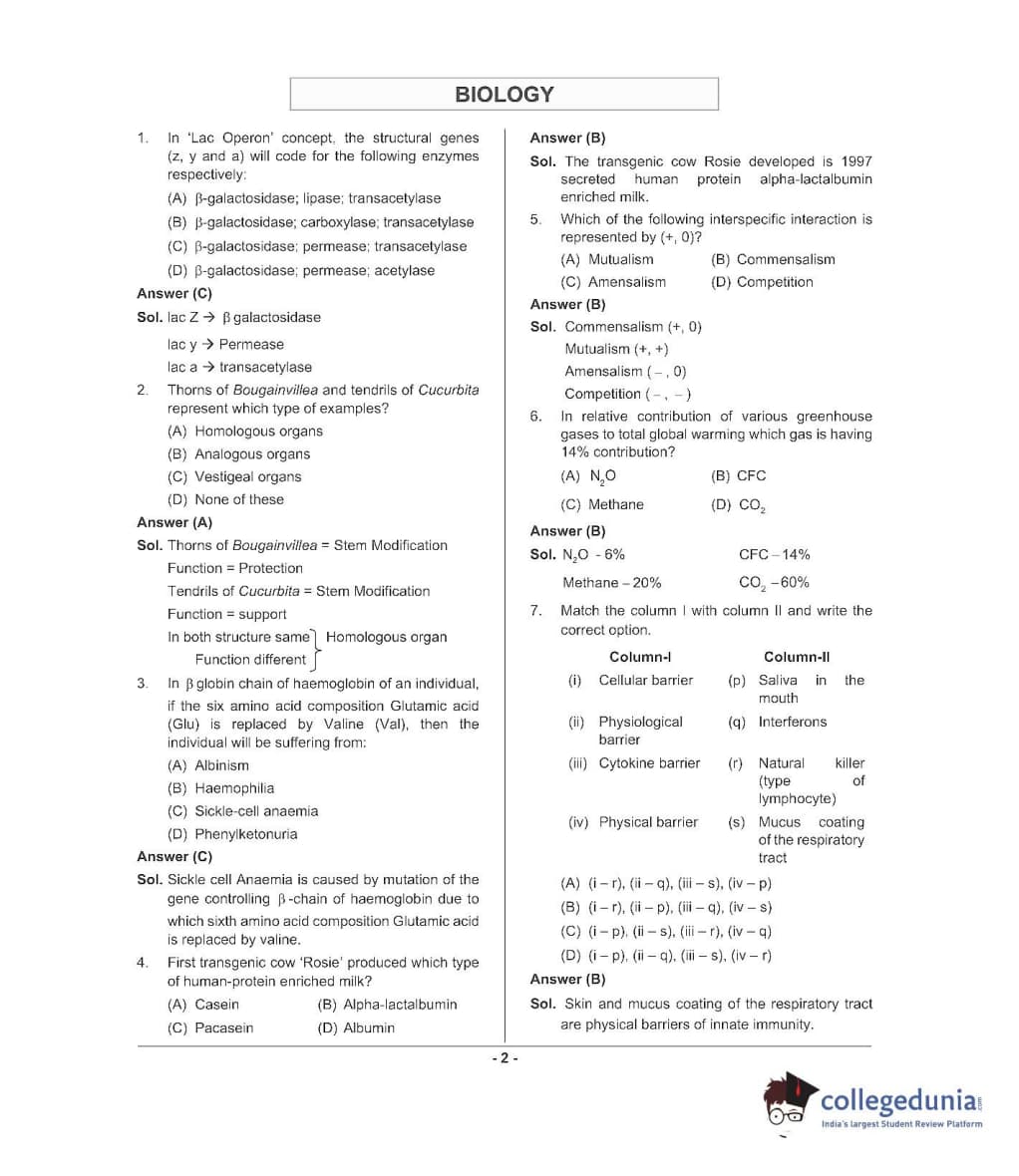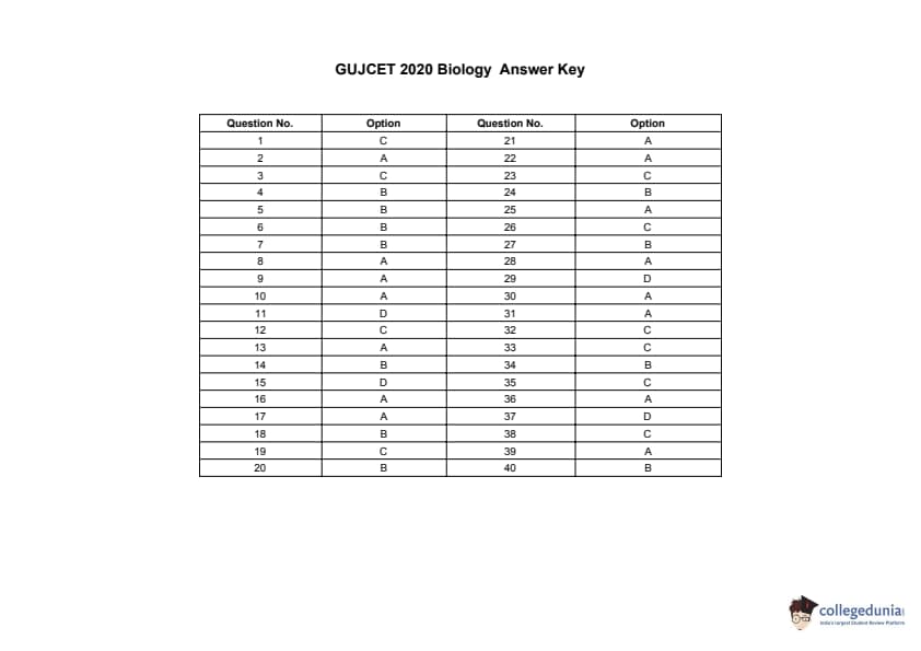 | GUJCET 2020 Biology Question Paper PDF | GUJCET 2020 Biology Answer Key PDF |