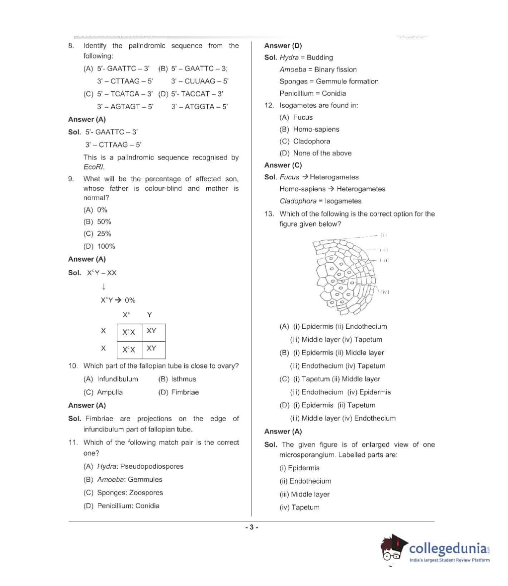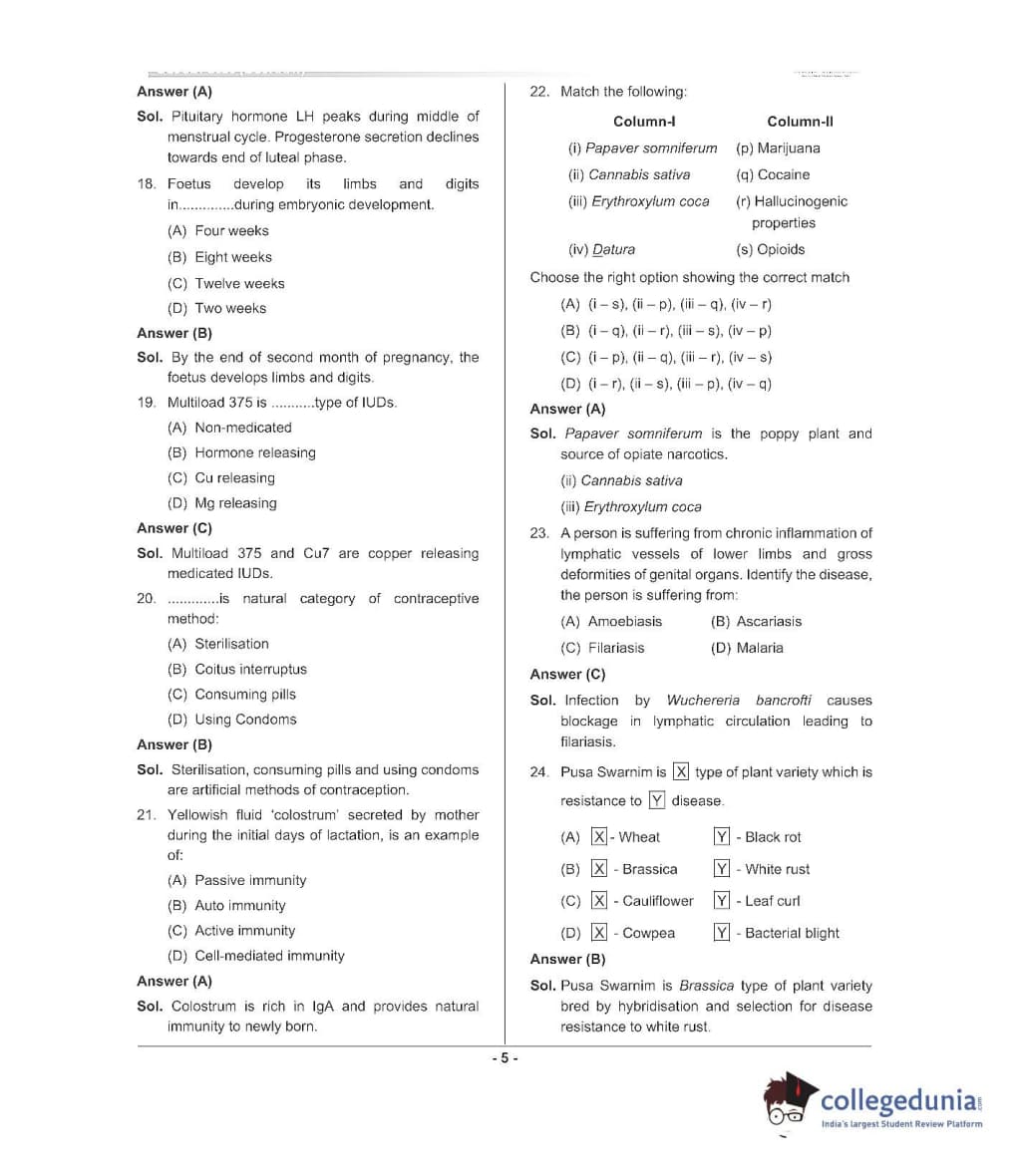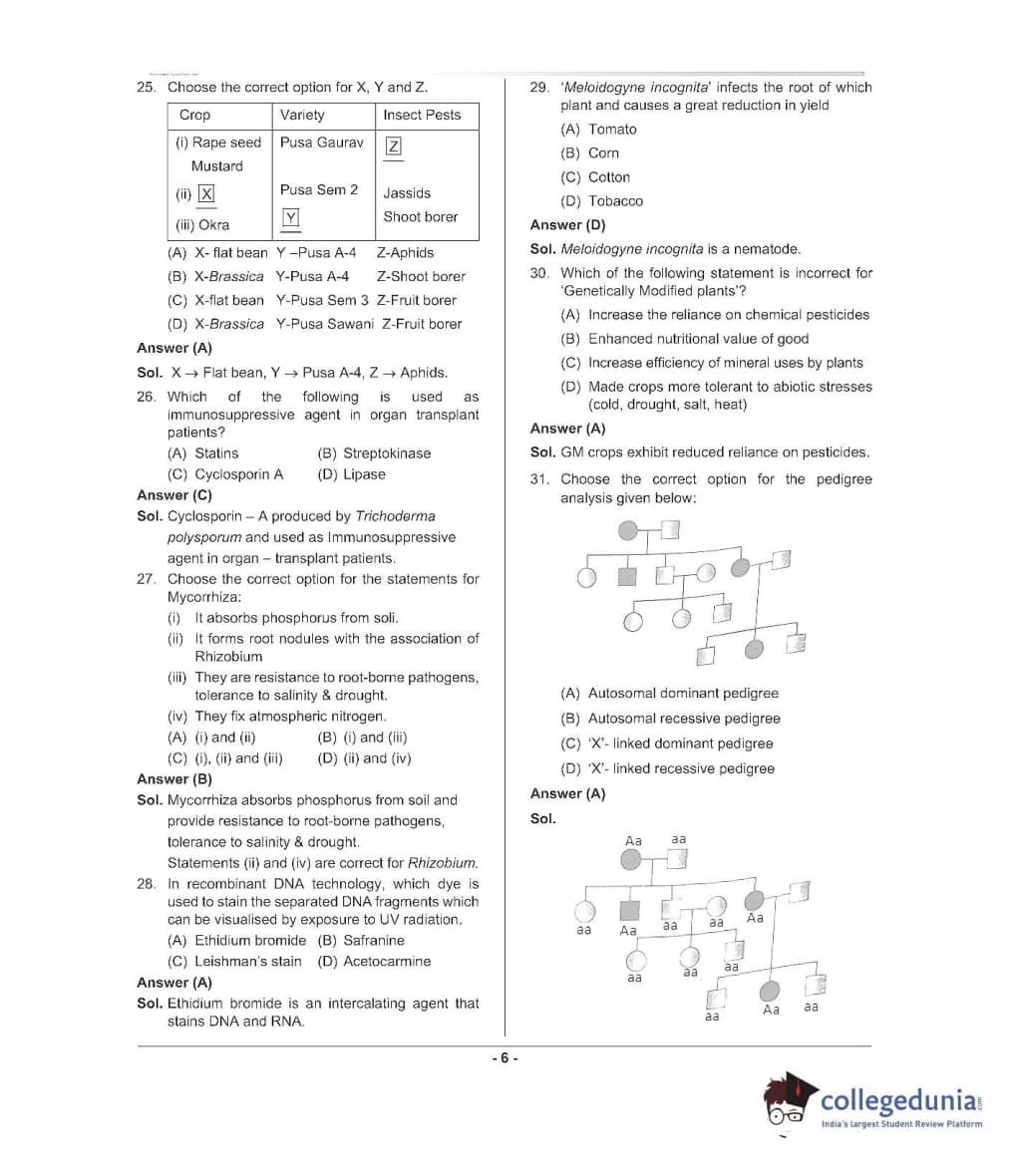 GUJCET 2020 Biology Question Paper with Answer Key PDFs