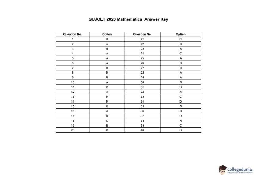 | GUJCET 2020 Mathematics Question Paper PDF | GUJCET 2020 Mathematics Answer Key PDF |