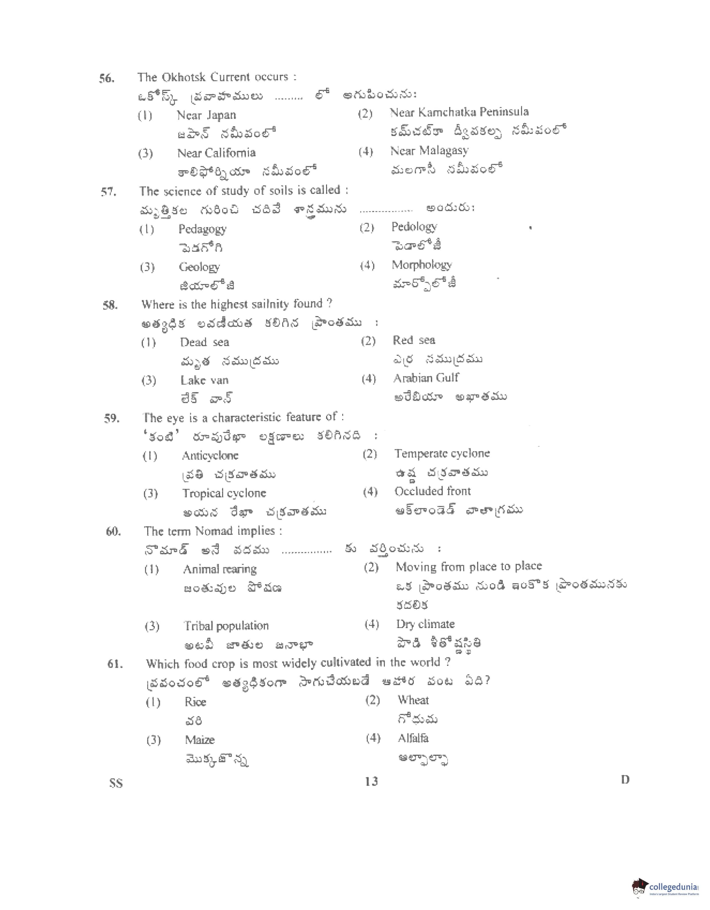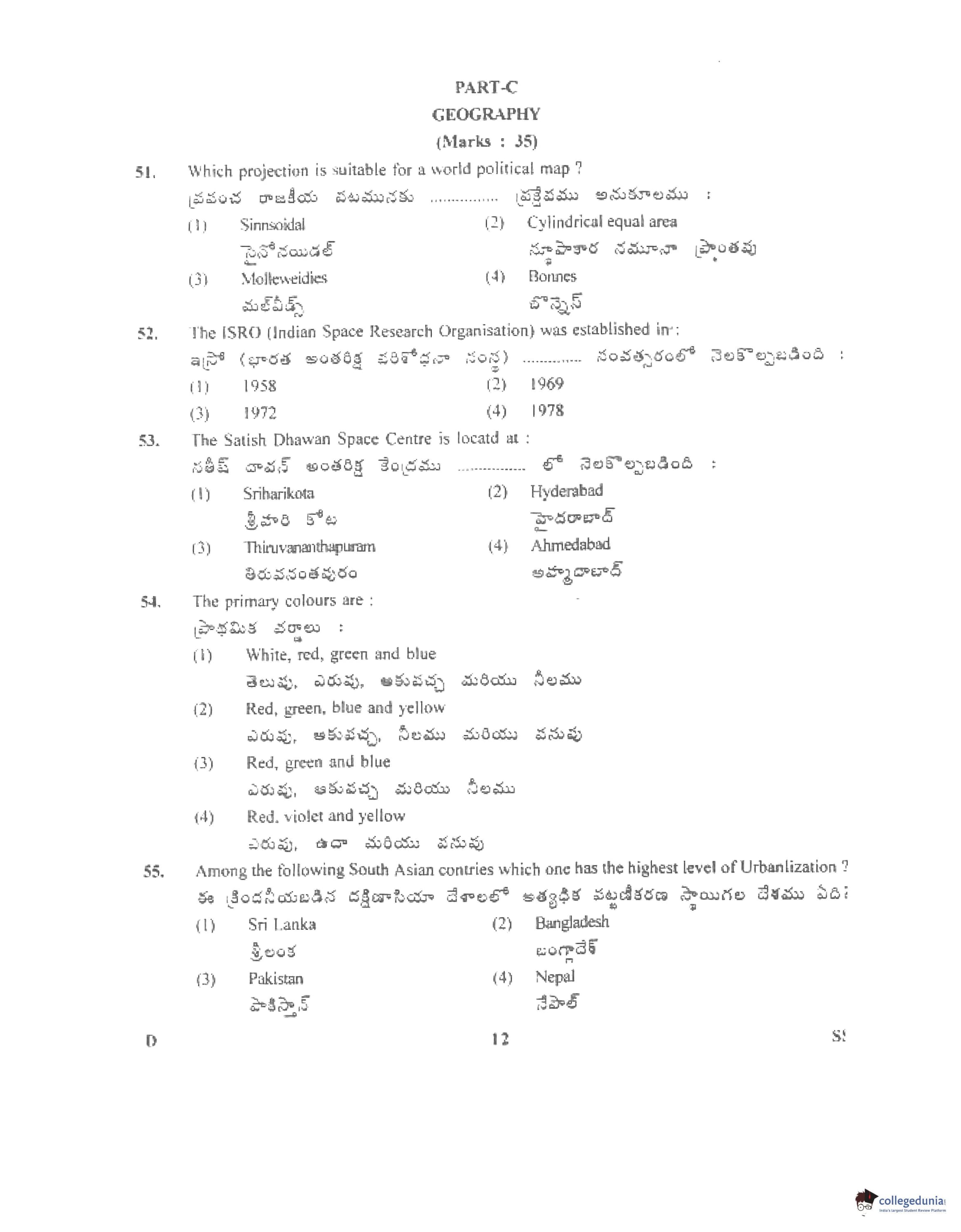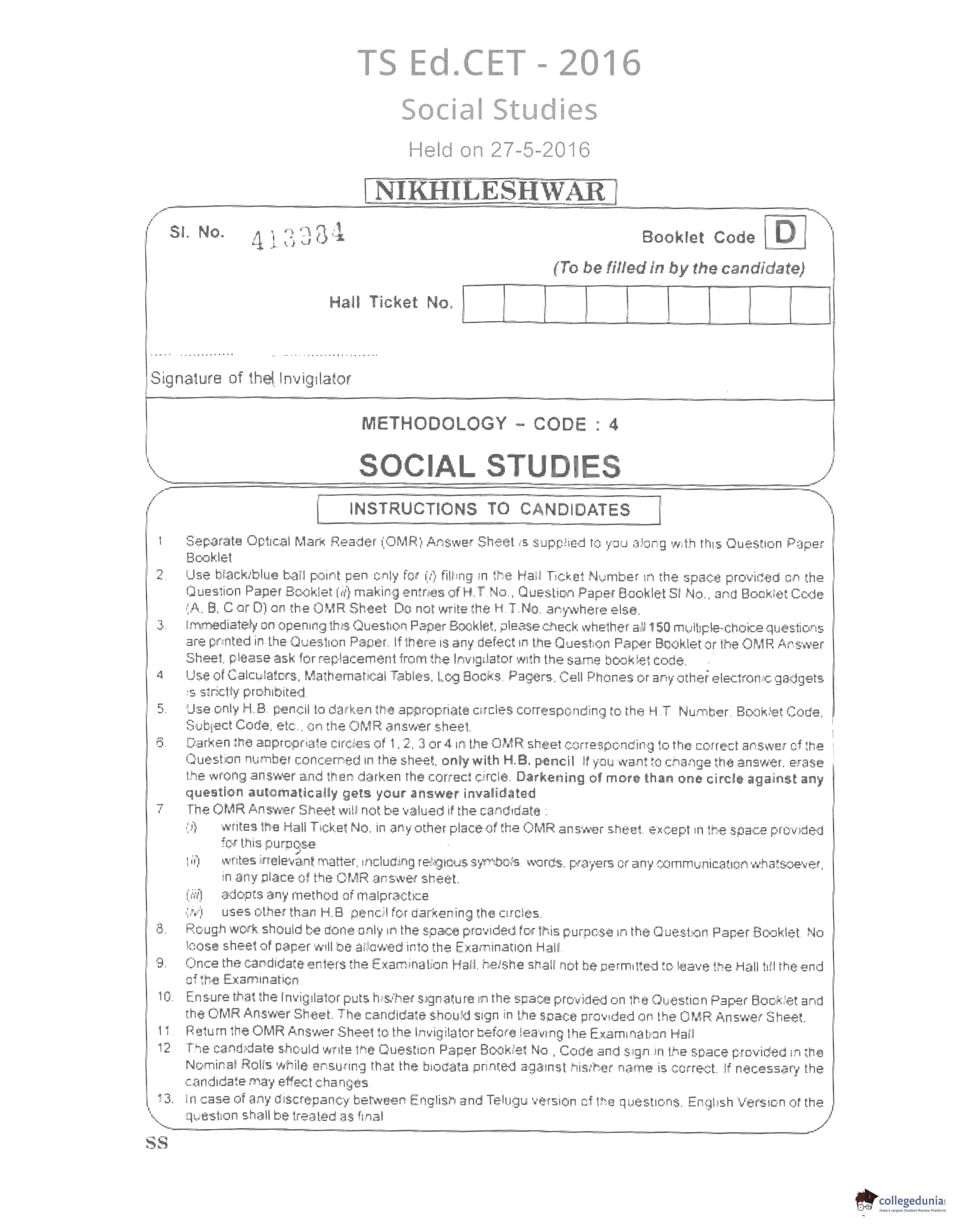 TS EDCET 2016 Social Studies Question paper with answer key pdf conducted on May 27, 2016 is available for download. The exam was successfully organized by Osmania University, Hyderabad. The question paper comprised a total of 150 questions.