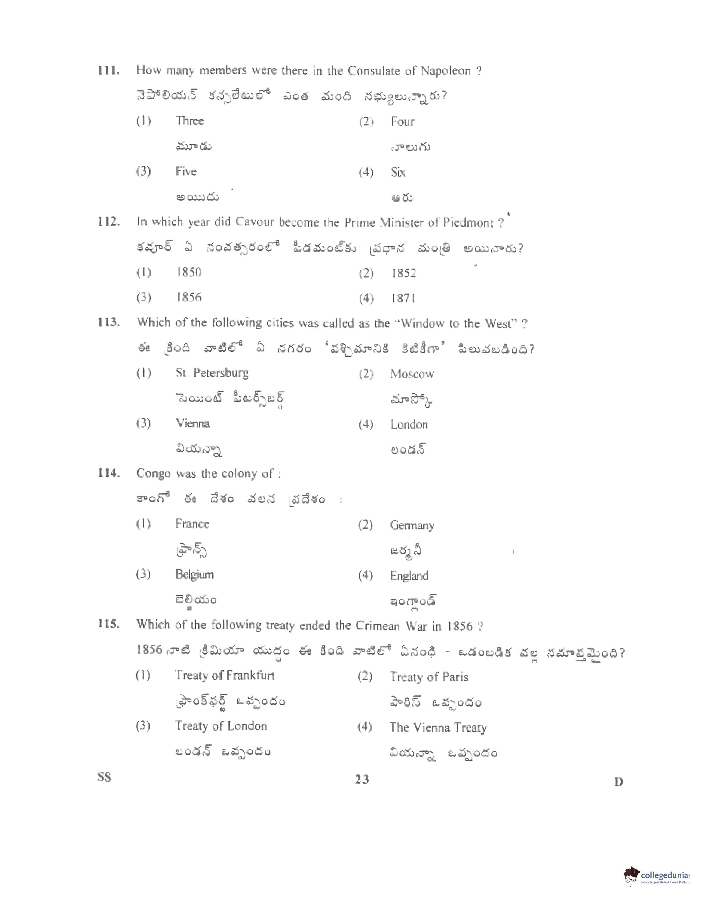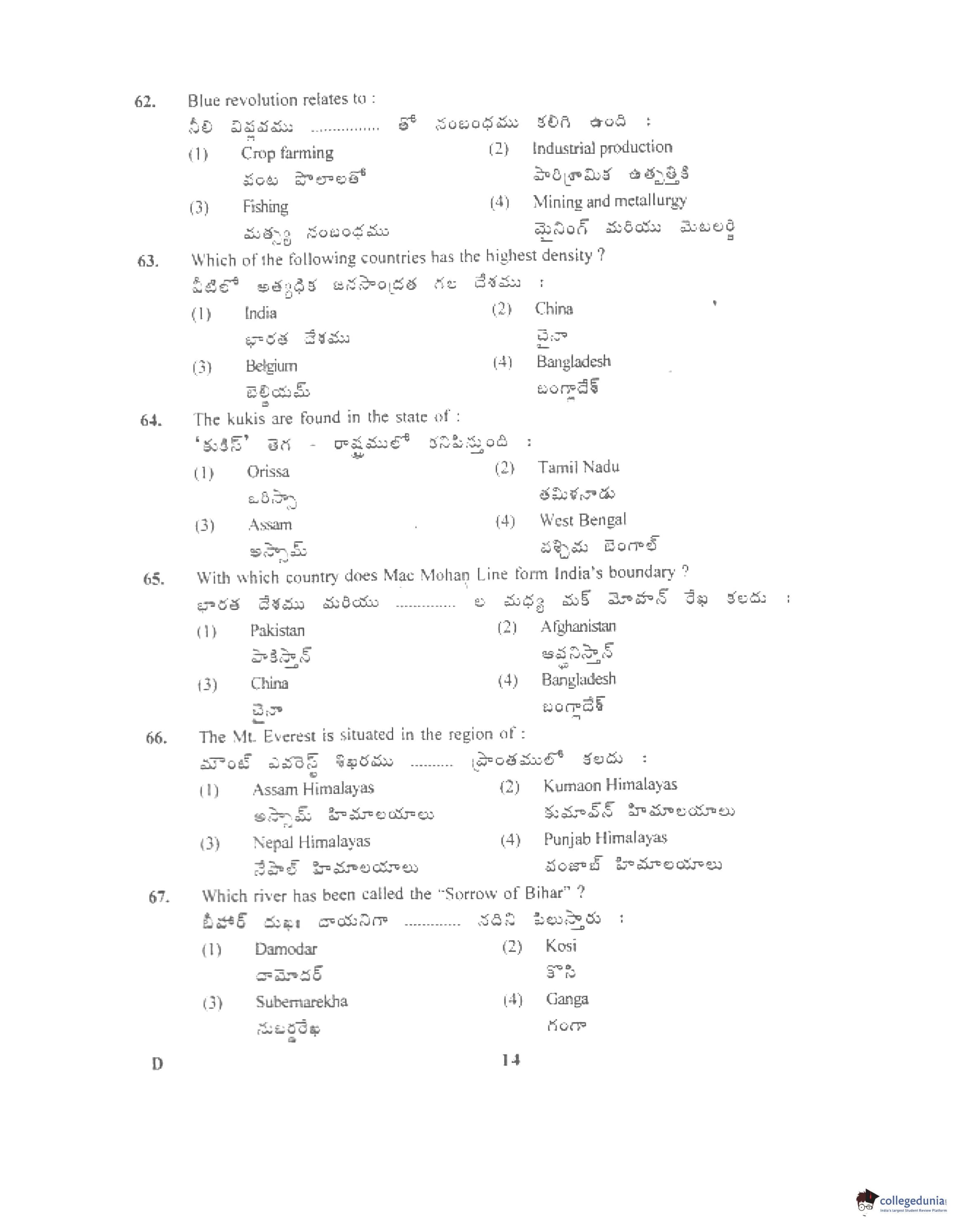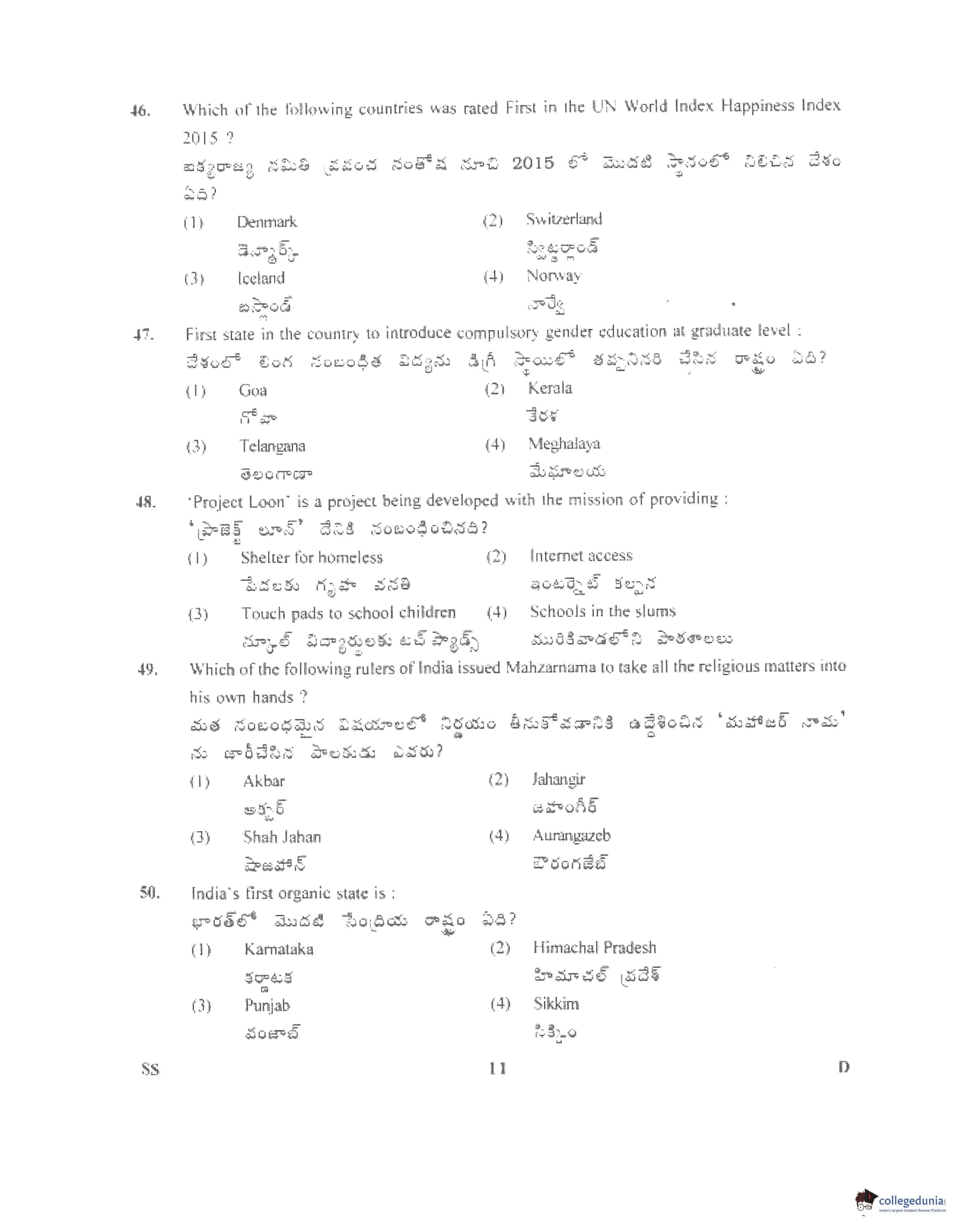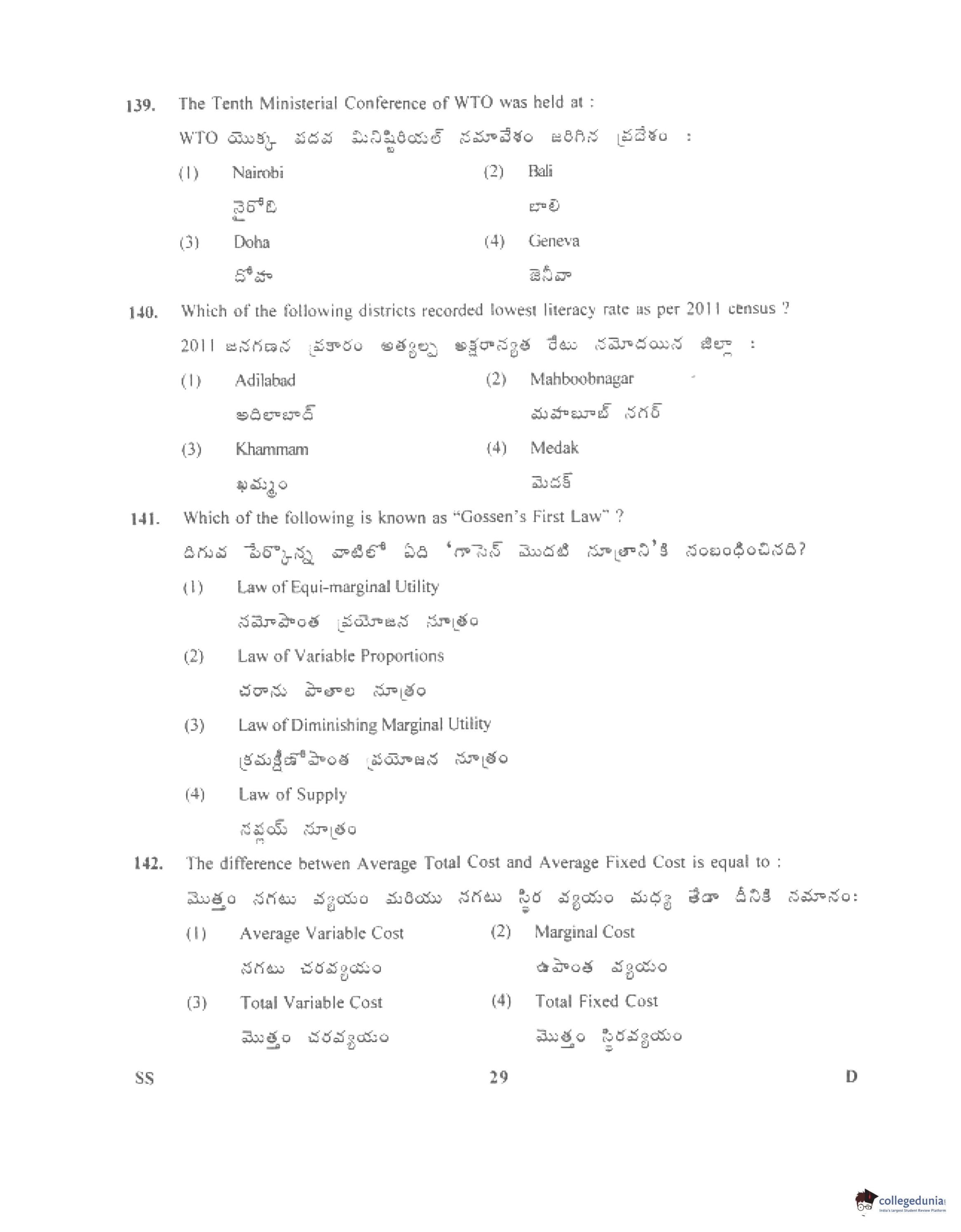 TS EDCET 2016 Social Studies Question Paper with Answer Key PDF