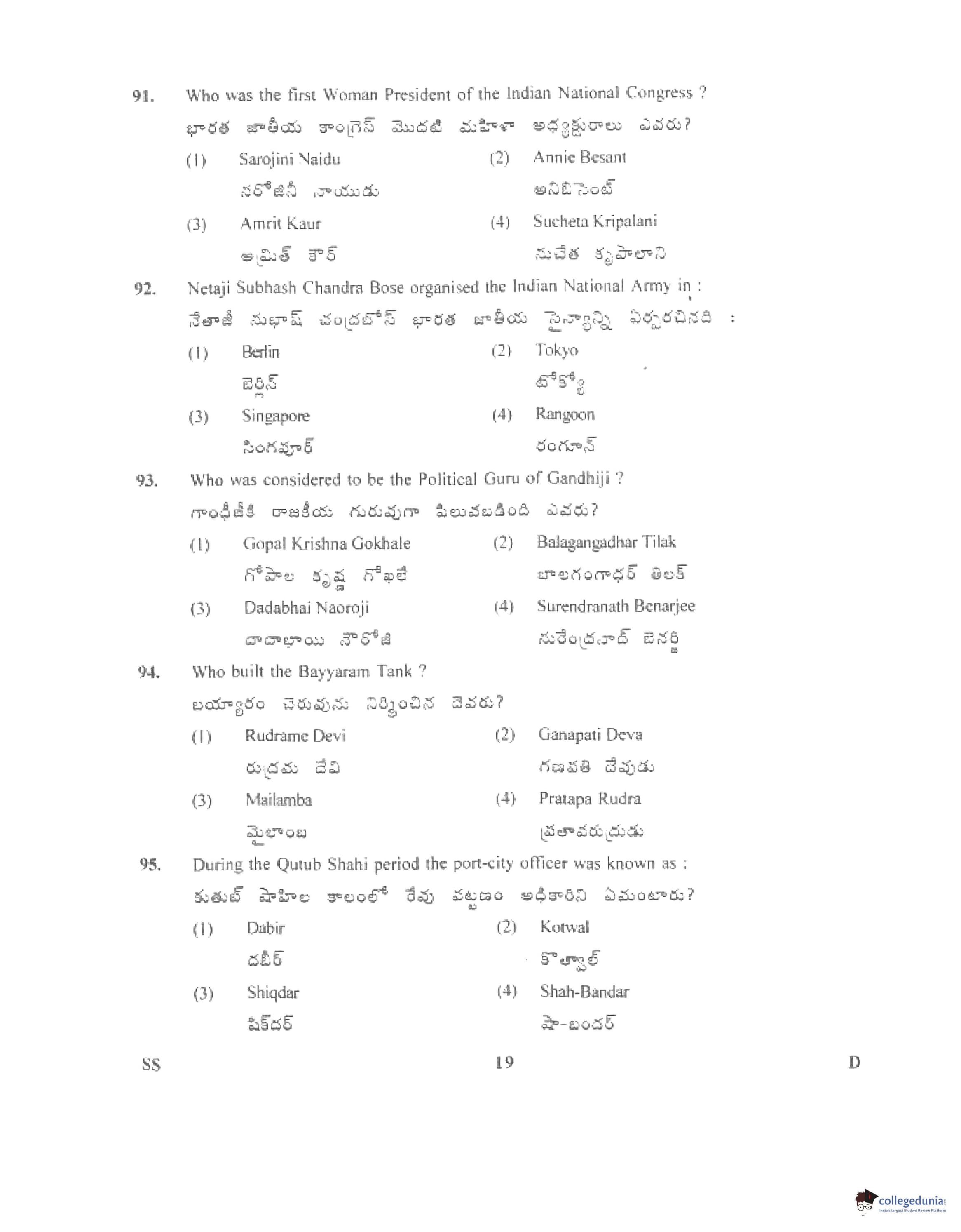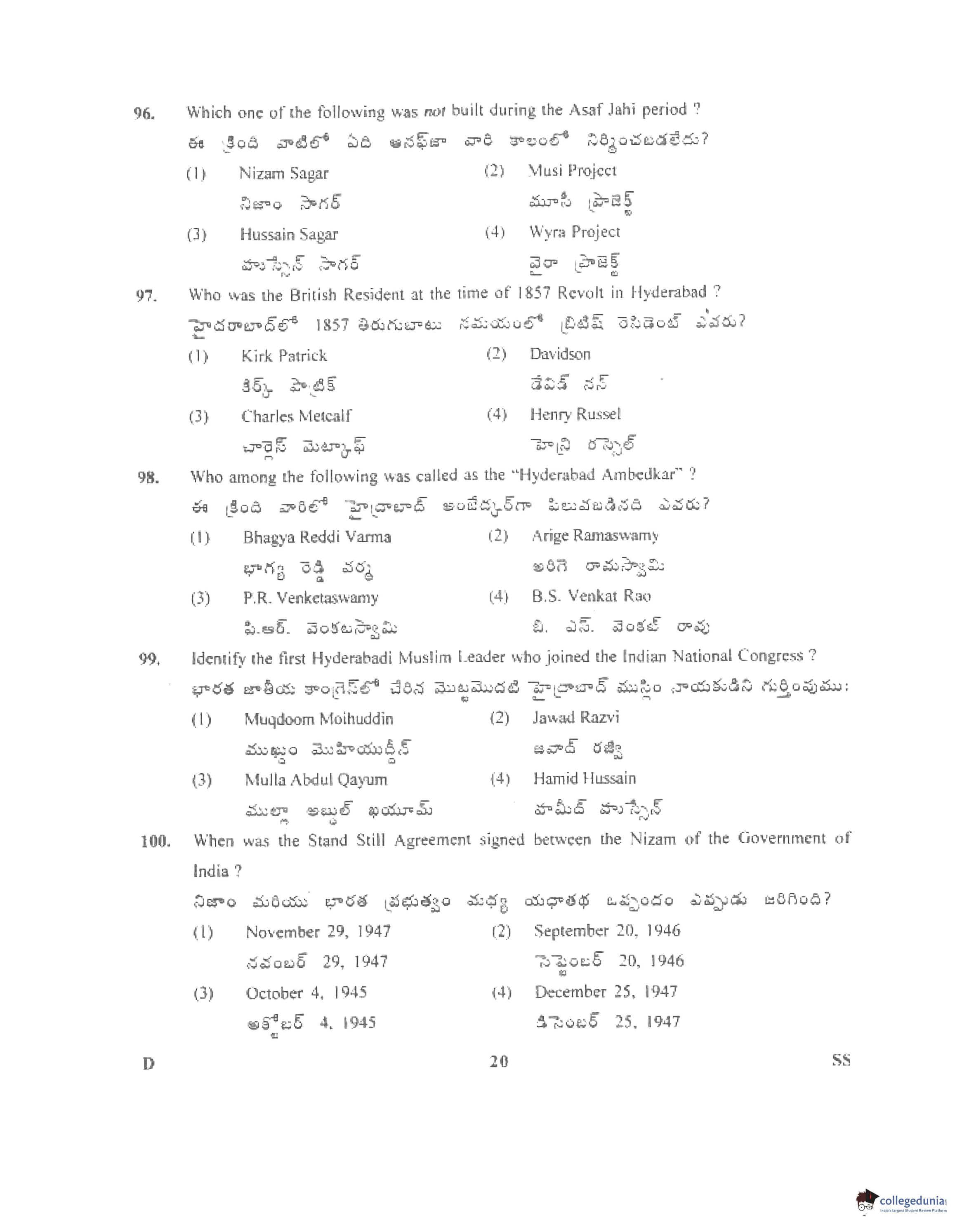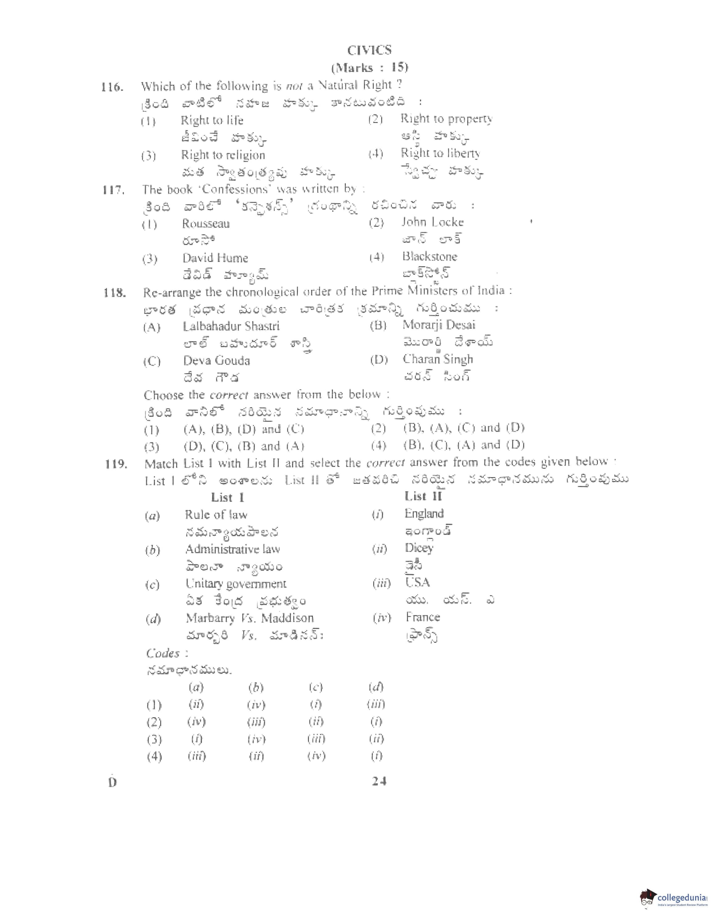 TS EDCET 2016 Social Studies Question Paper with Answer Key PDF