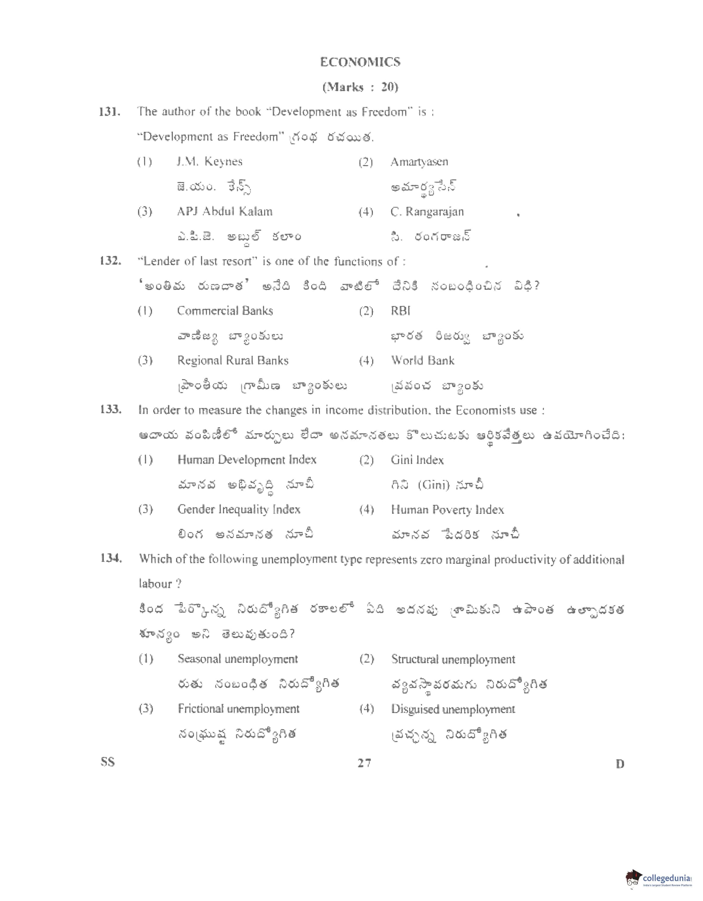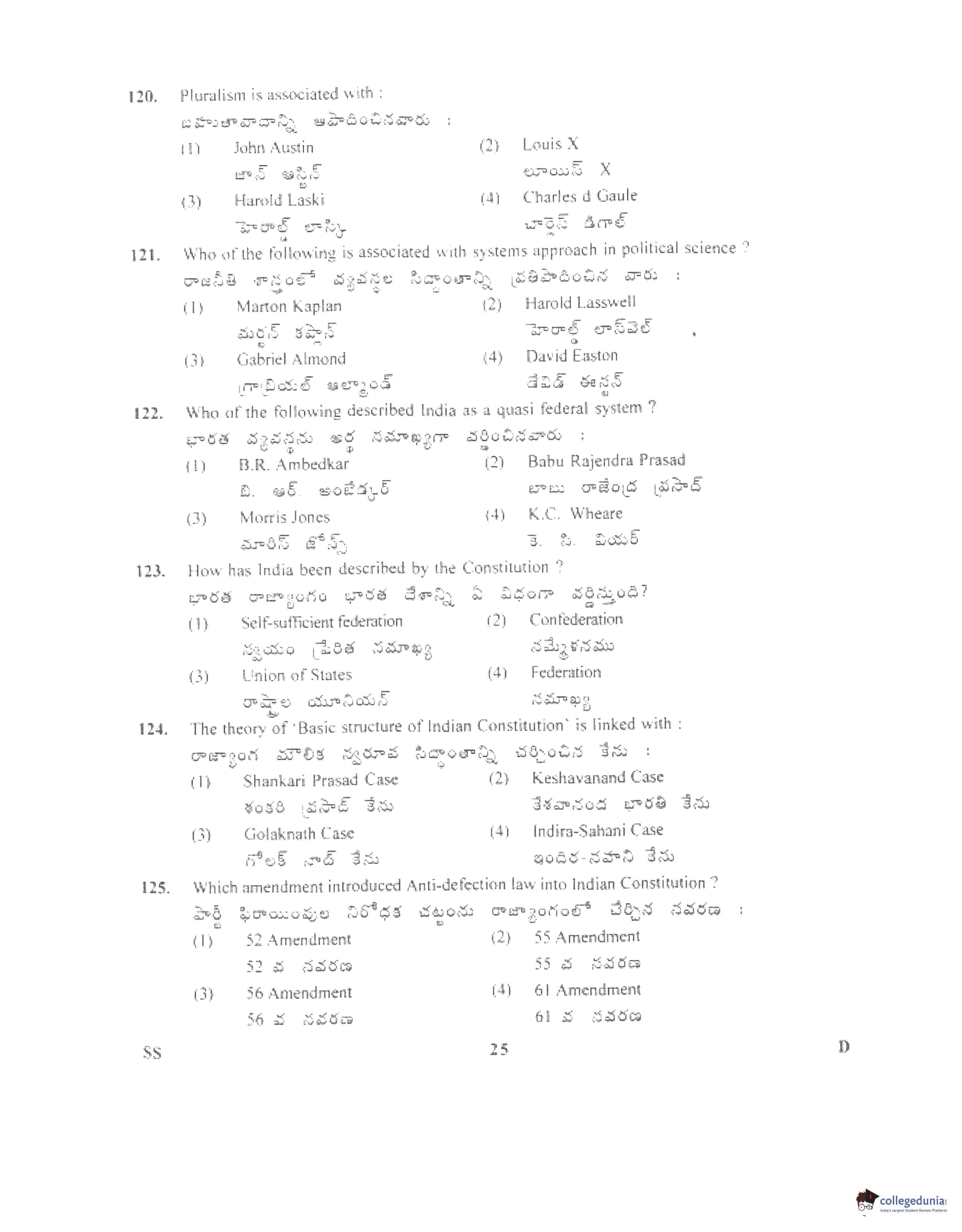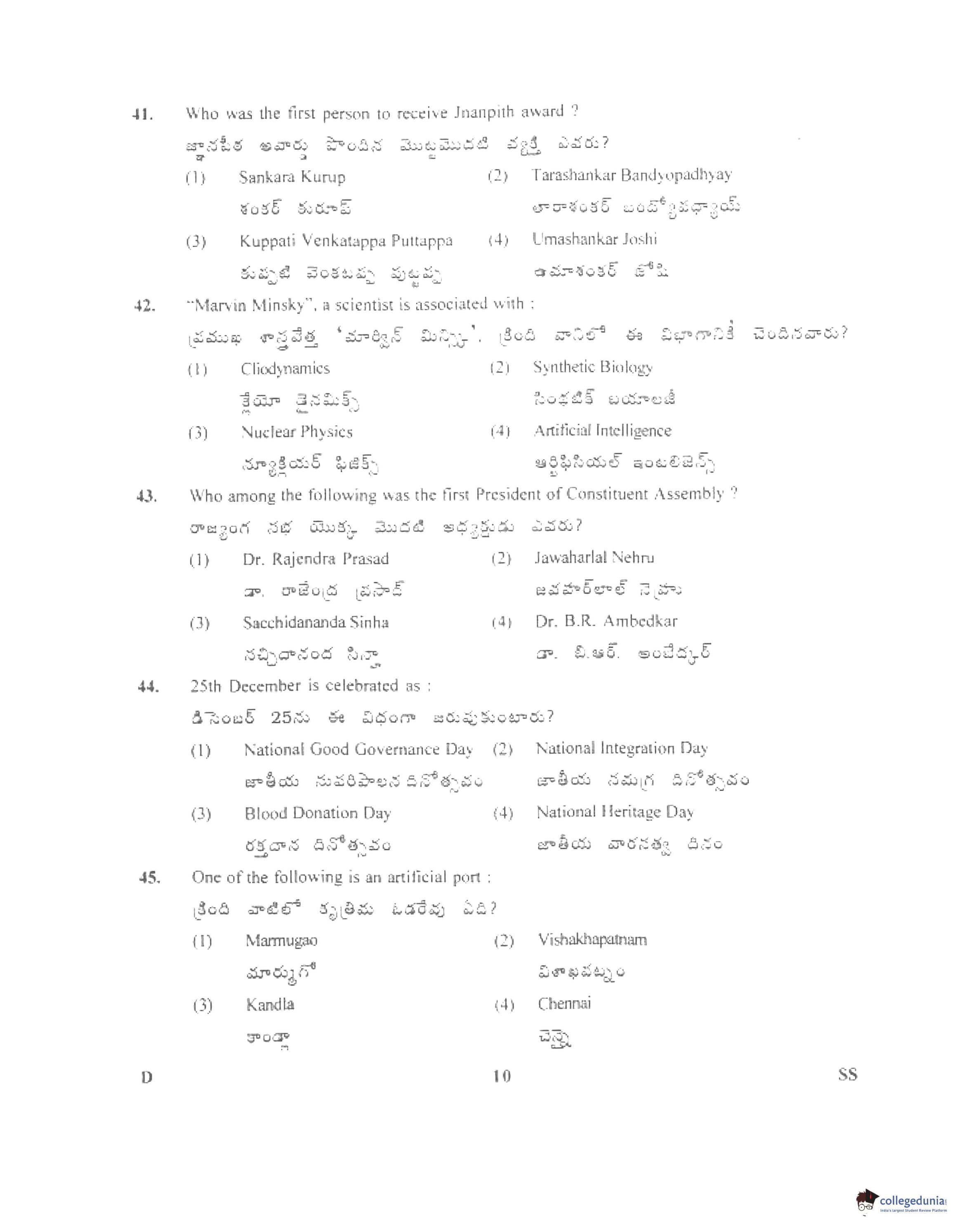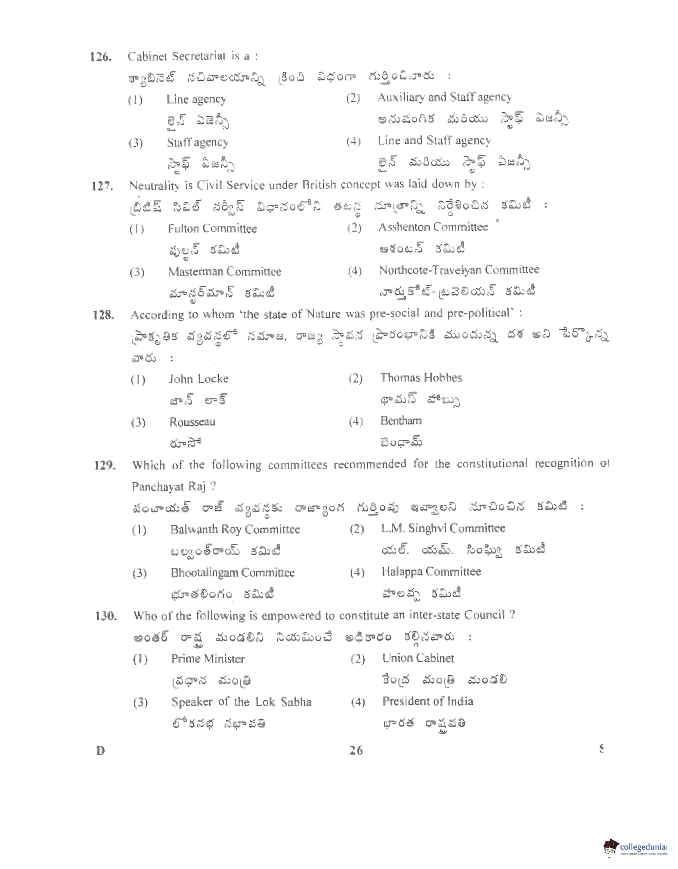 TS EDCET 2016 Social Studies Question Paper with Answer Key PDF