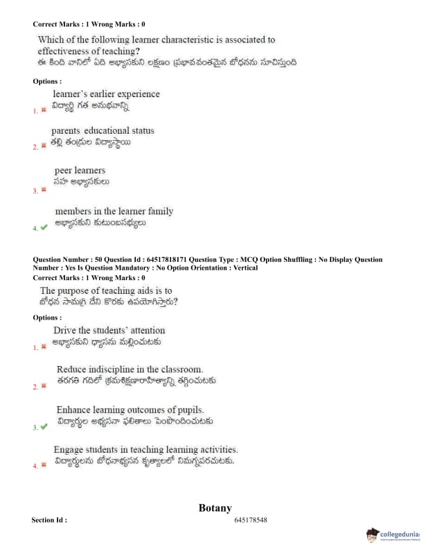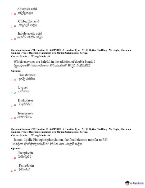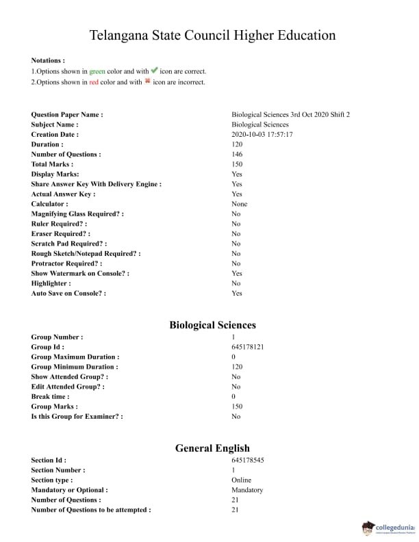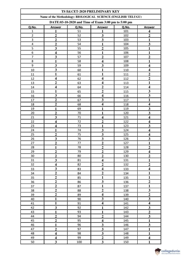 | TS EDCET 2020 Biological Sciences Question Paper PDF | TS EDCET 2020 Biological Sciences Answer Key PDF |