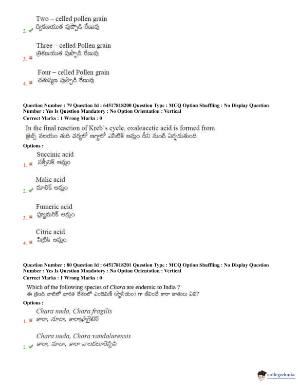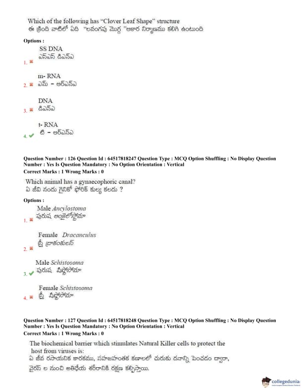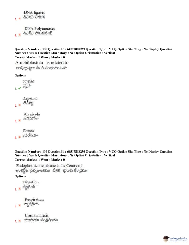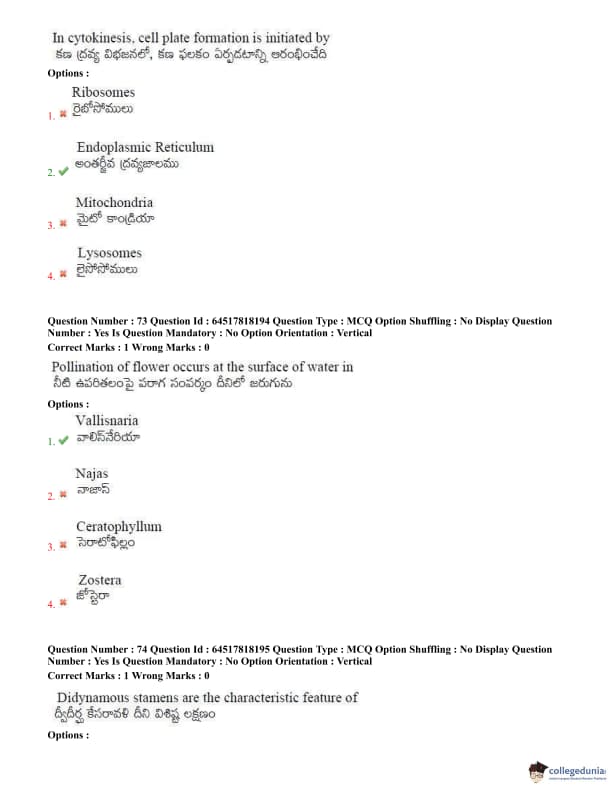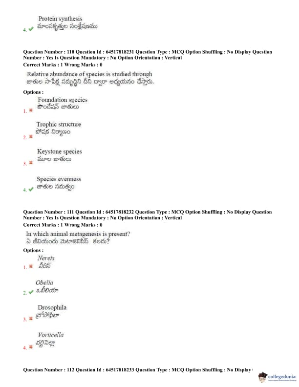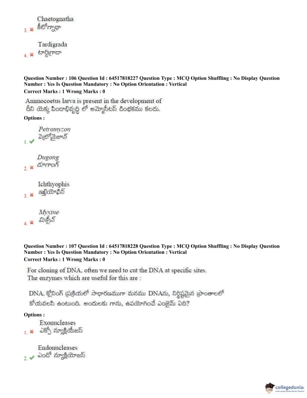 TS EDCET 2020 Biological Sciences Question Paper with Answer Key PDFs