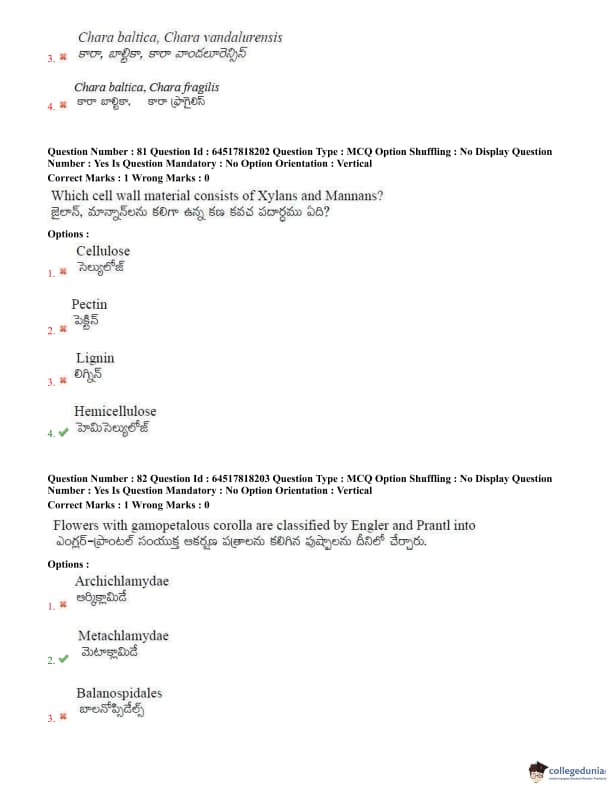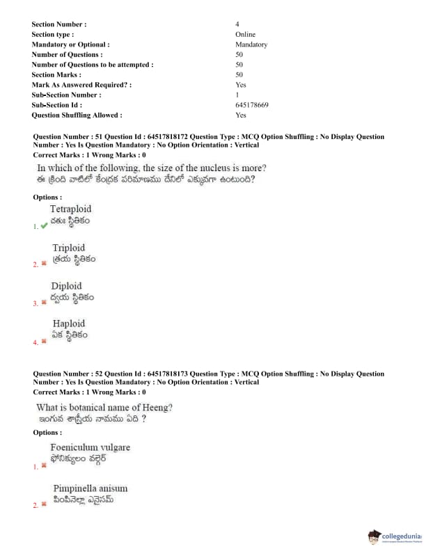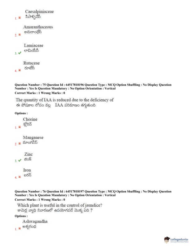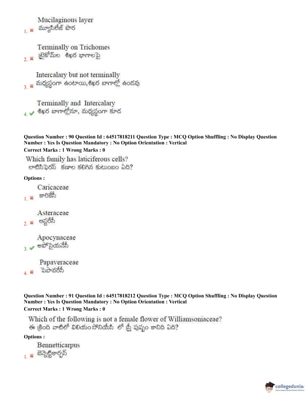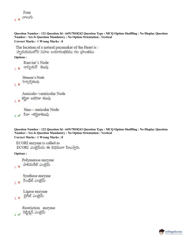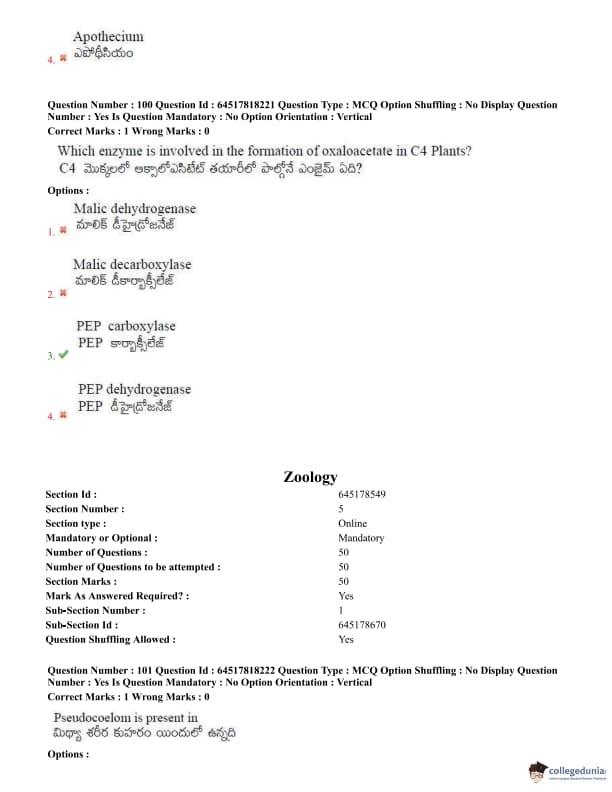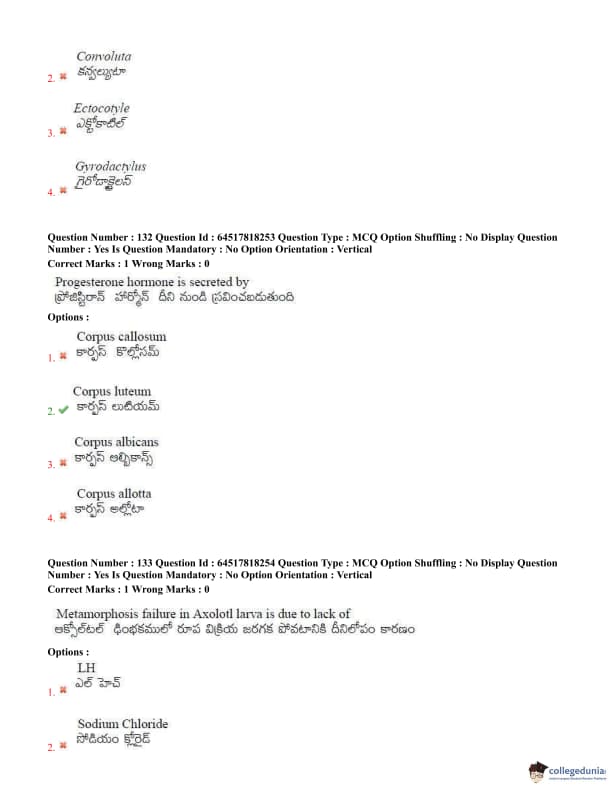 TS EDCET 2020 Biological Sciences Question Paper with Answer Key PDFs