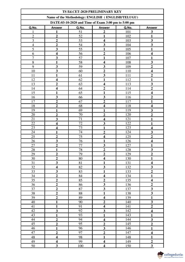 | TS EDCET 2020 ENGLISH Question Paper PDF | TS EDCET 2020 ENGLISH Answer Key PDF |