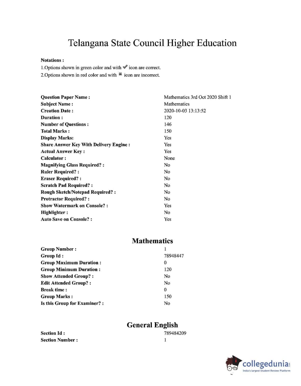 TS EDCET 2020 Mathematics Question paper with answer key pdf conducted on October 3, 2020 in Shift 1 is available for download. The exam was successfully organized by Osmania University, Hyderabad. The question paper comprised a total of 150 questions.