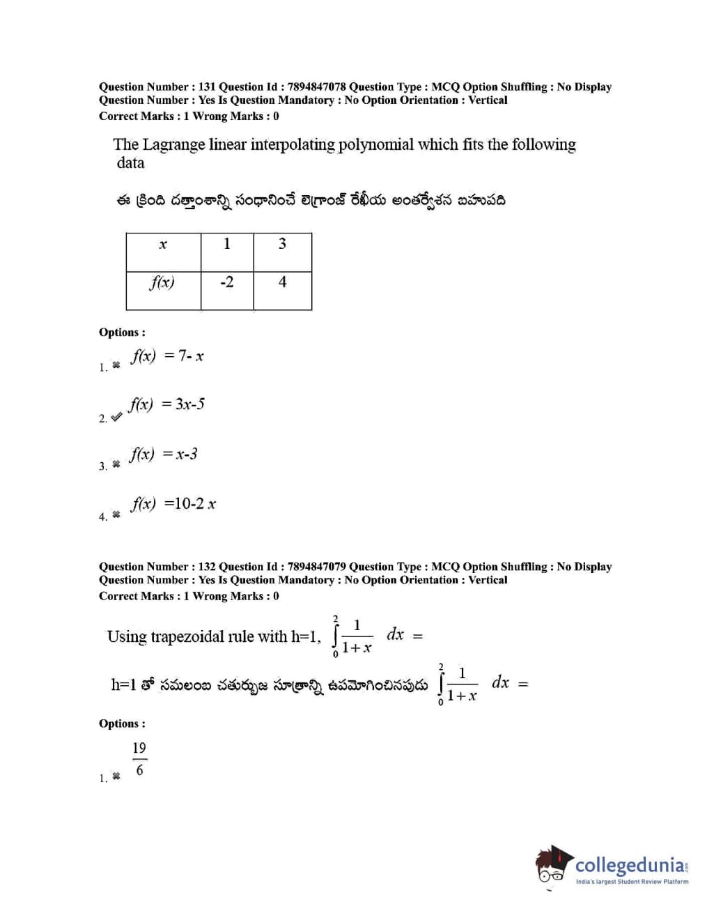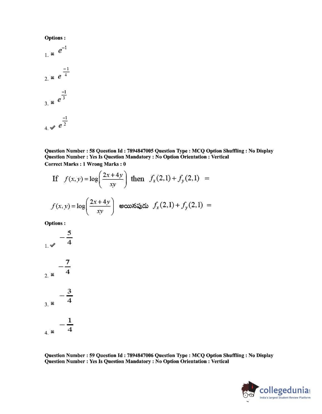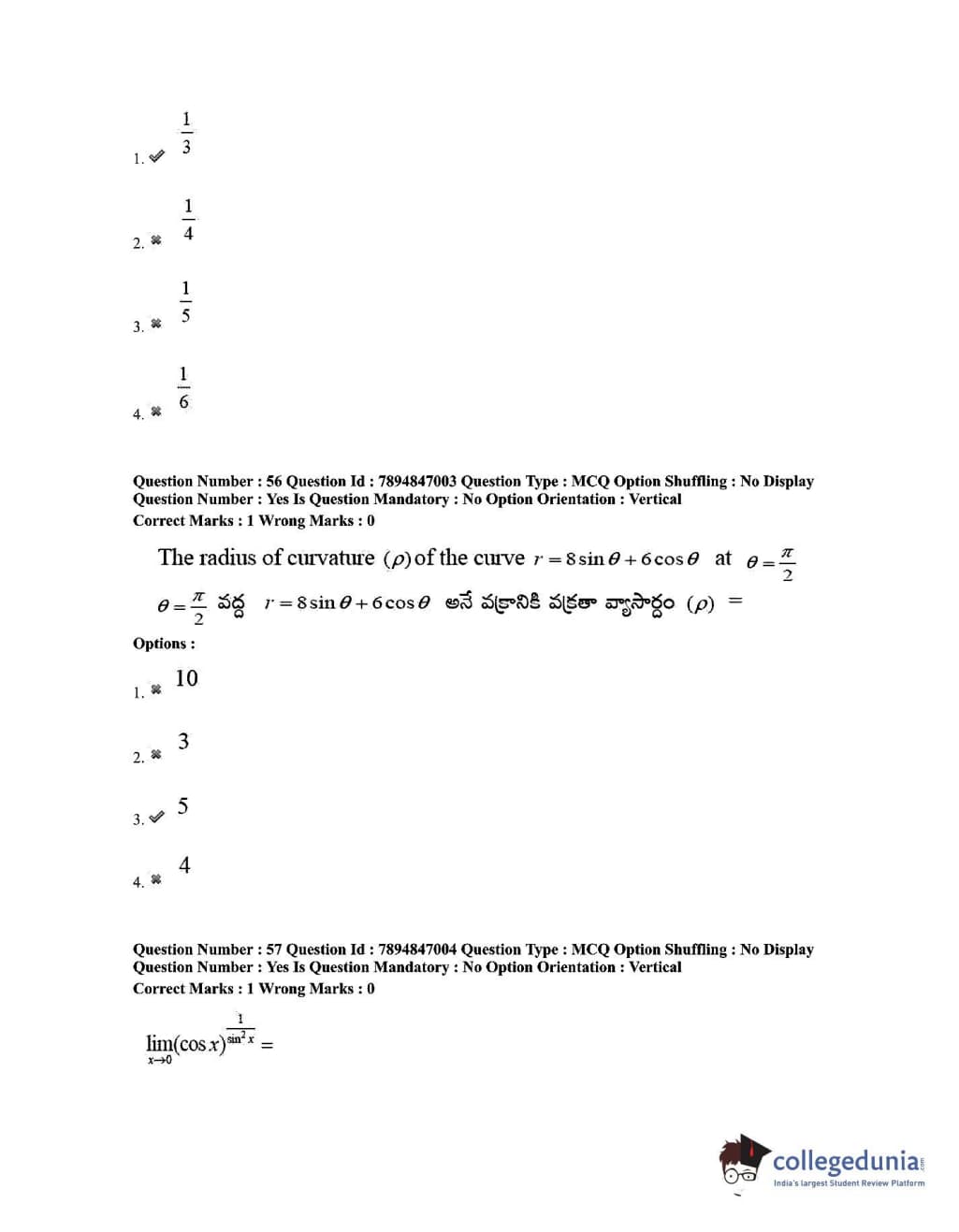 TS EDCET 2020 Mathematics Question Paper with Answer Key PDF Shift 1