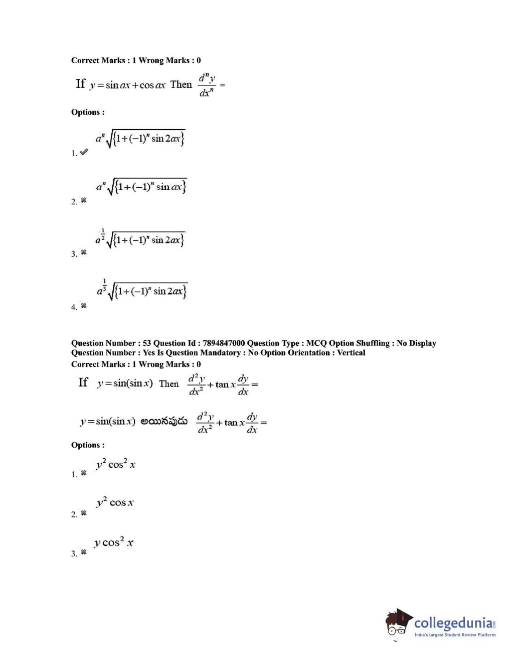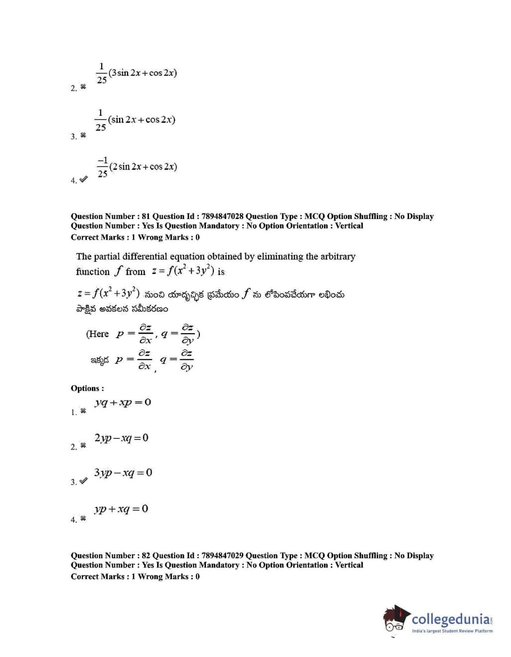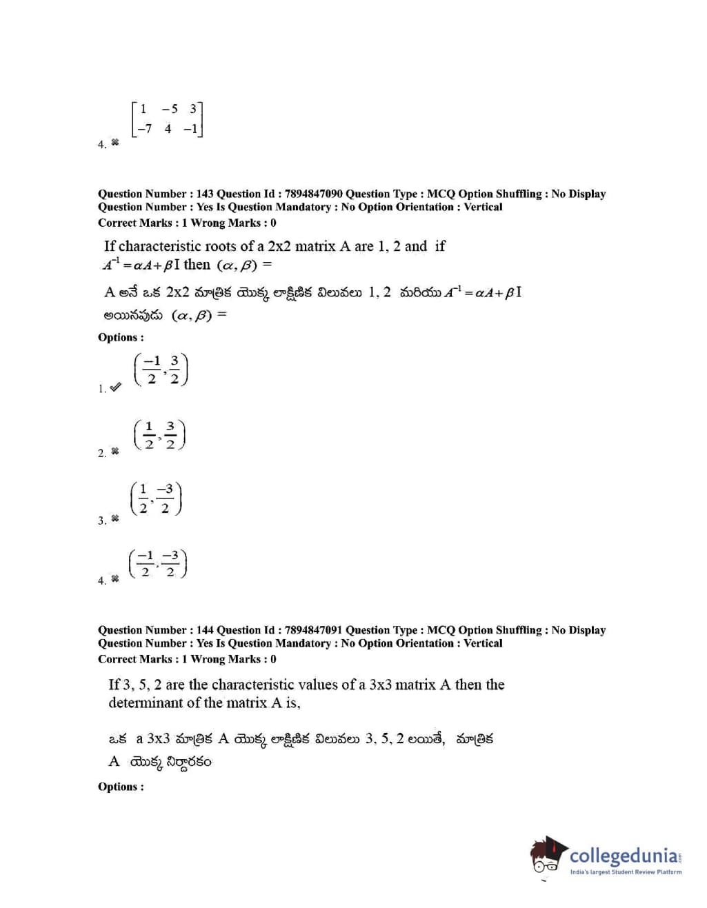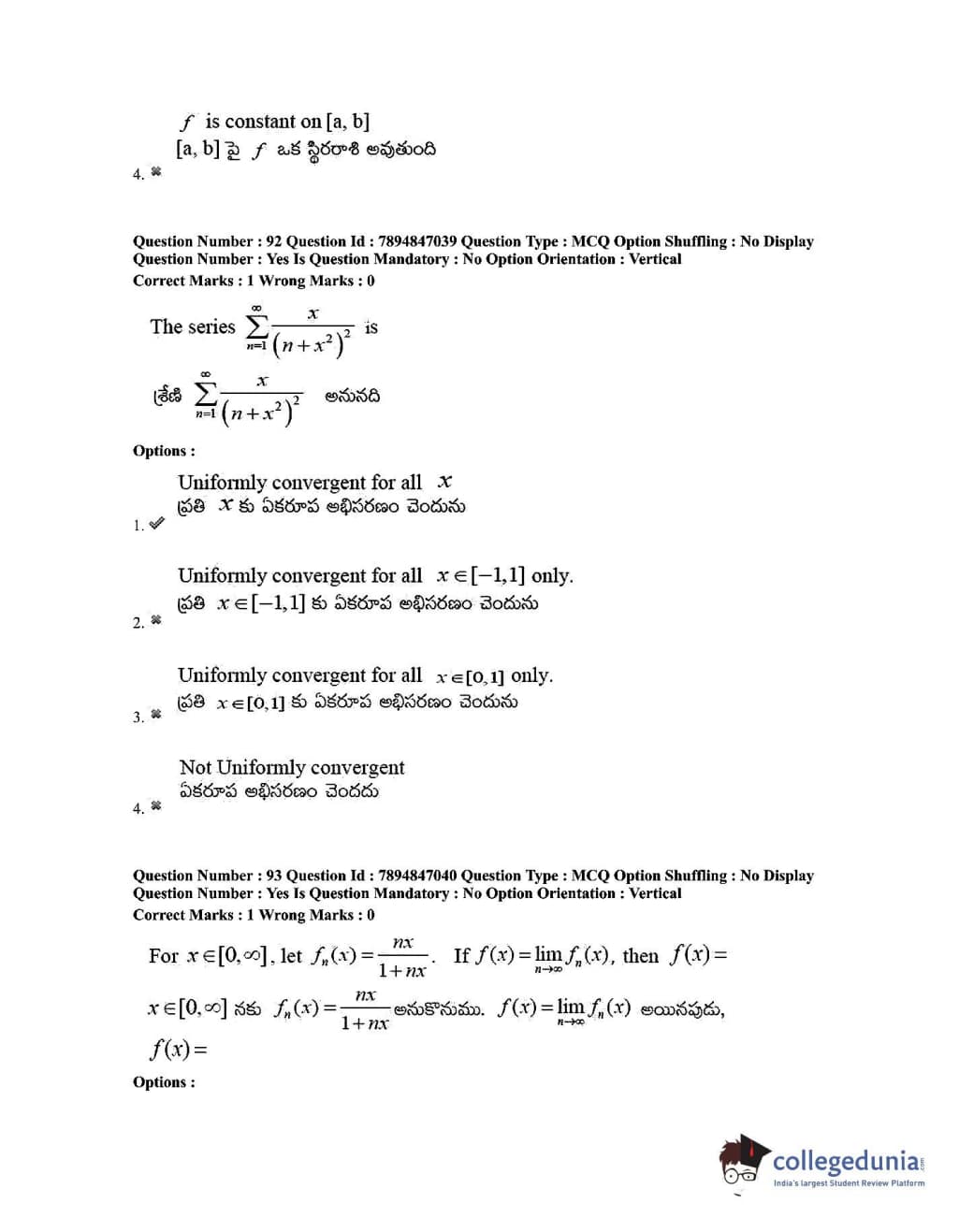 TS EDCET 2020 Mathematics Question Paper with Answer Key PDF Shift 1