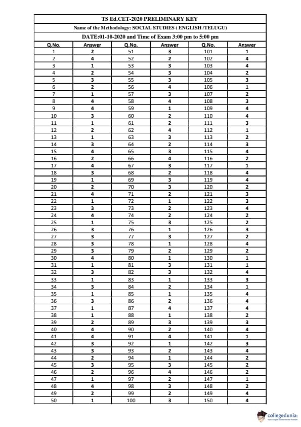| TS EDCET 2020 SOCIAL STUDIES Question Paper PDF | TS EDCET 2020 SOCIAL STUDIES Answer Key PDF |