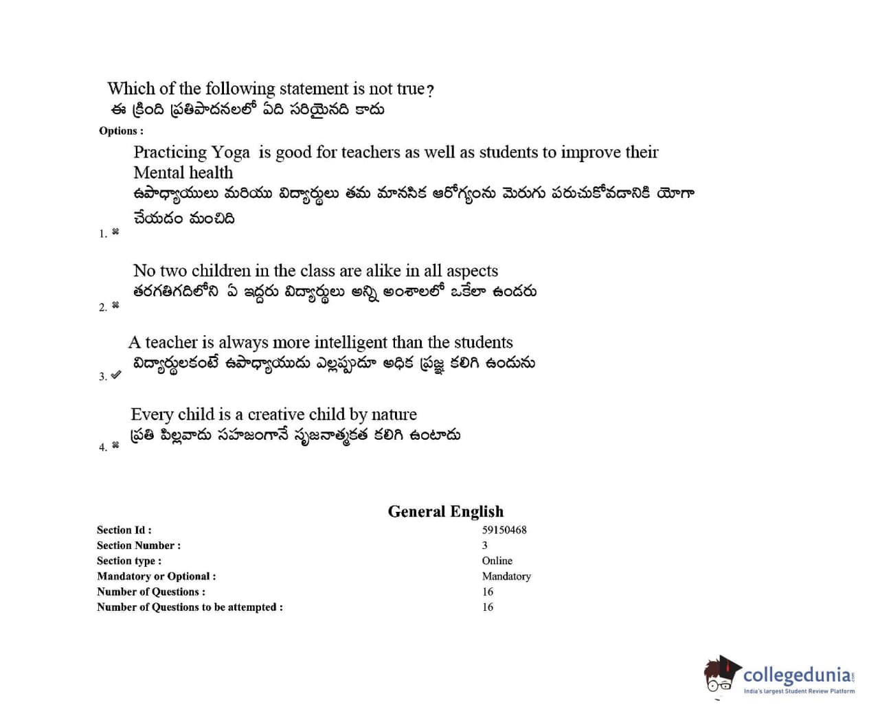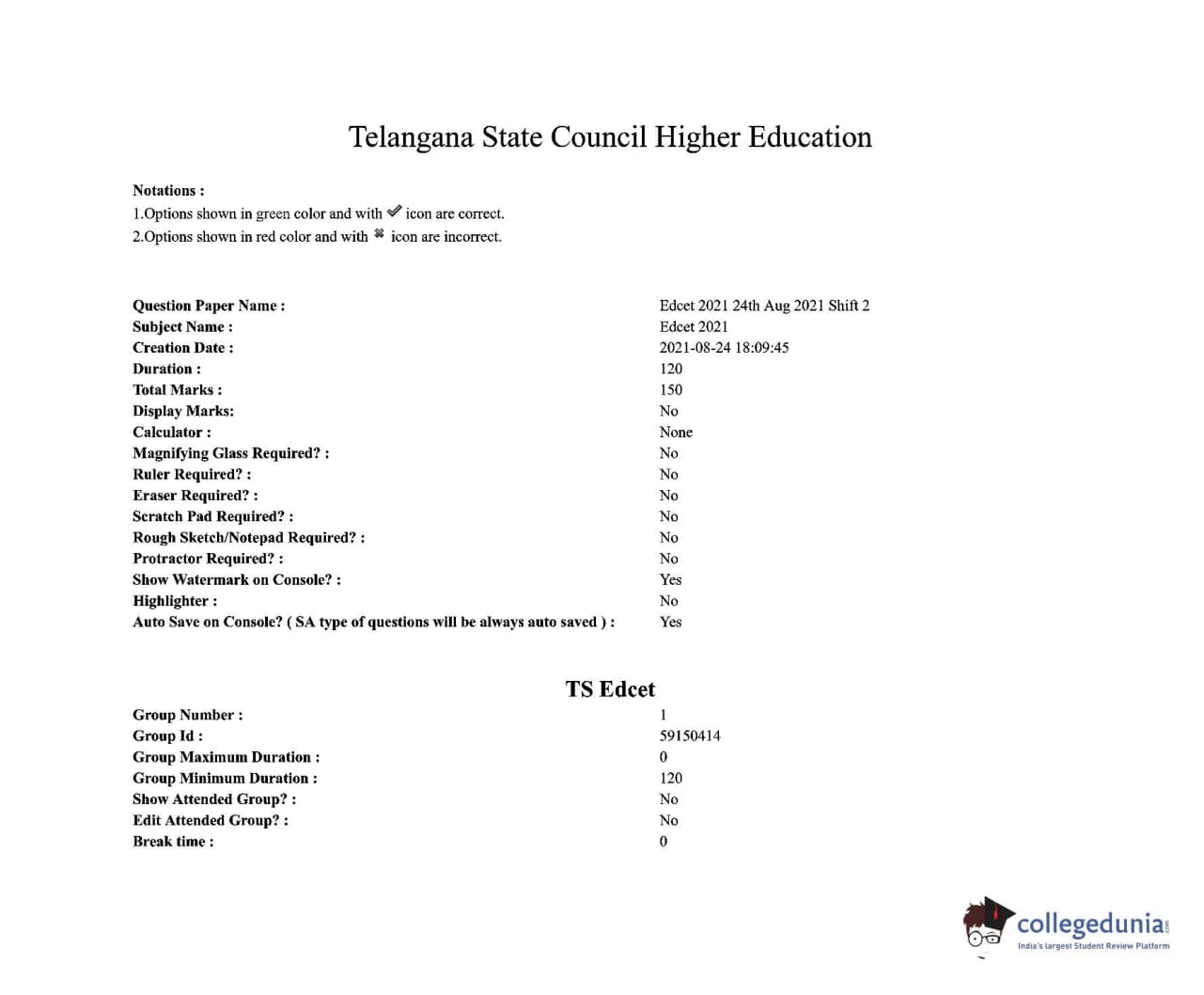 TS EDCET 2021 Question paper with answer key pdf conducted on August 24, 2021 in Shift 2 is available for download. The exam was successfully organized by Osmania University, Hyderabad. The question paper comprised a total of 150 questions.