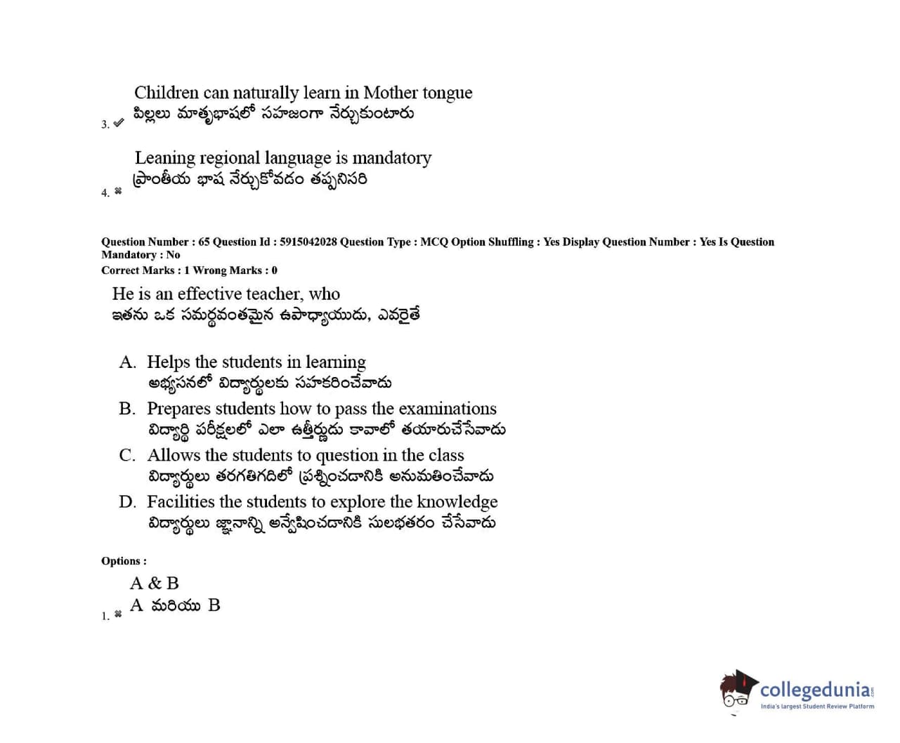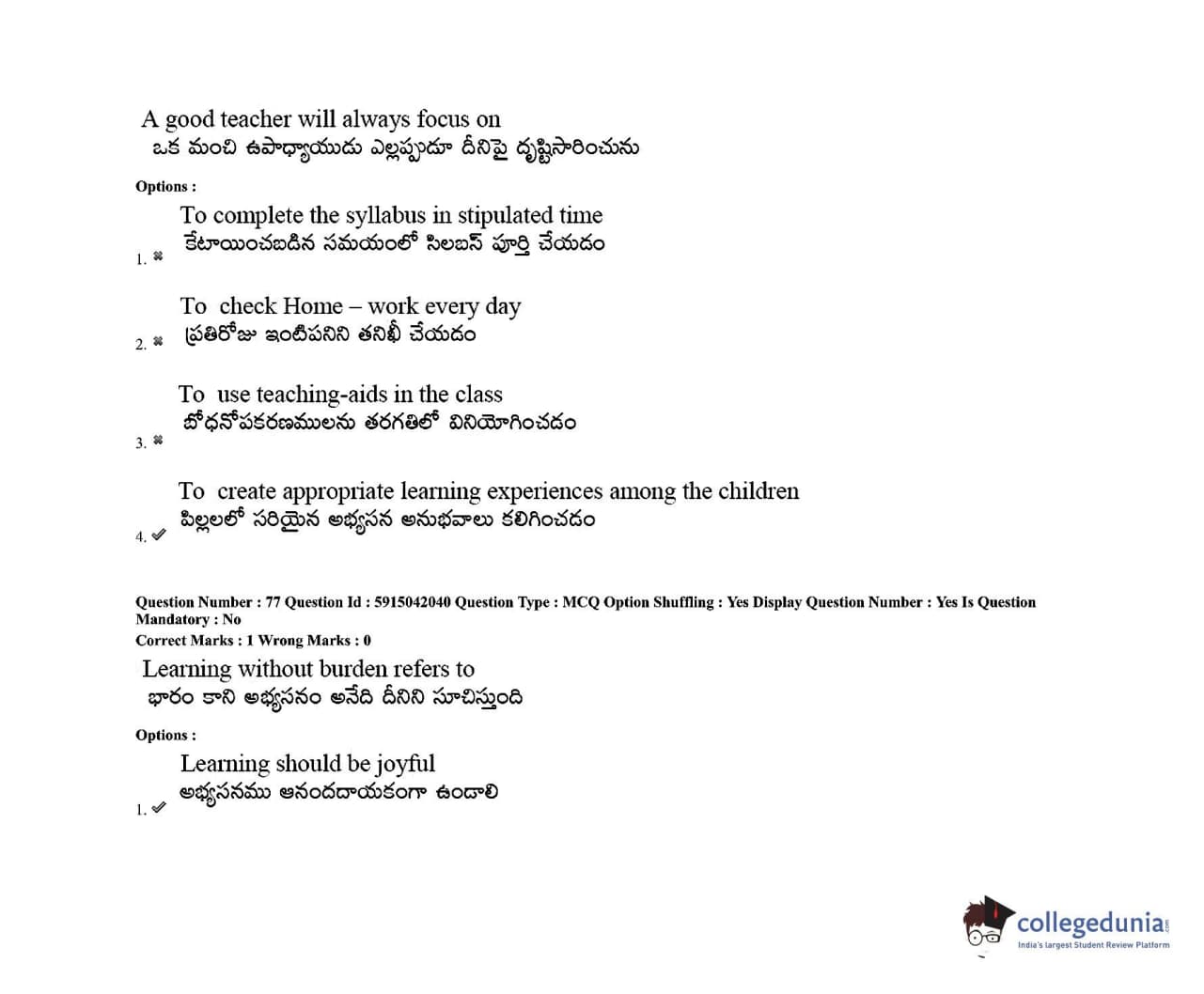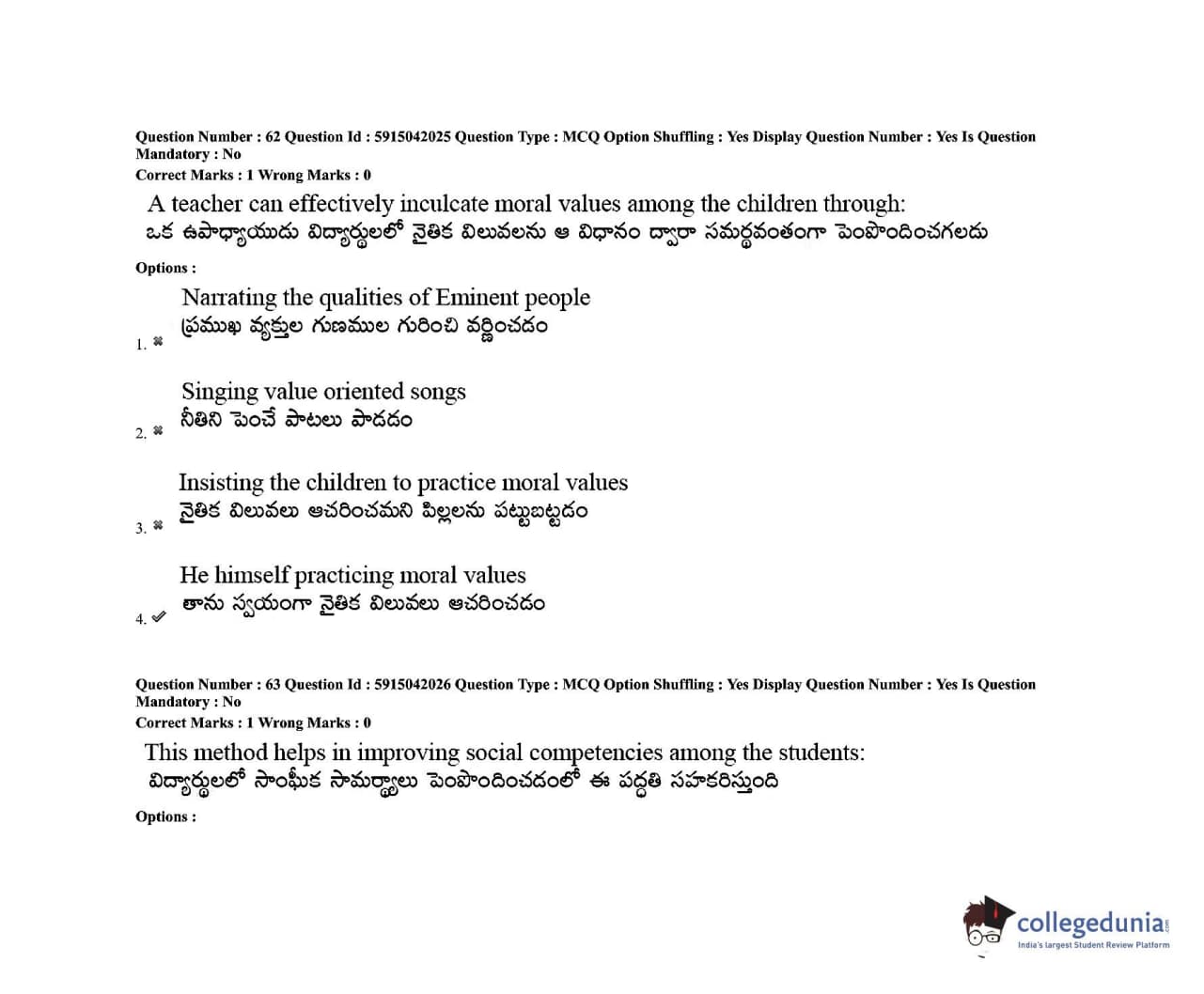 TS EDCET 2021 Question Paper with Answer Key PDF Shift 2