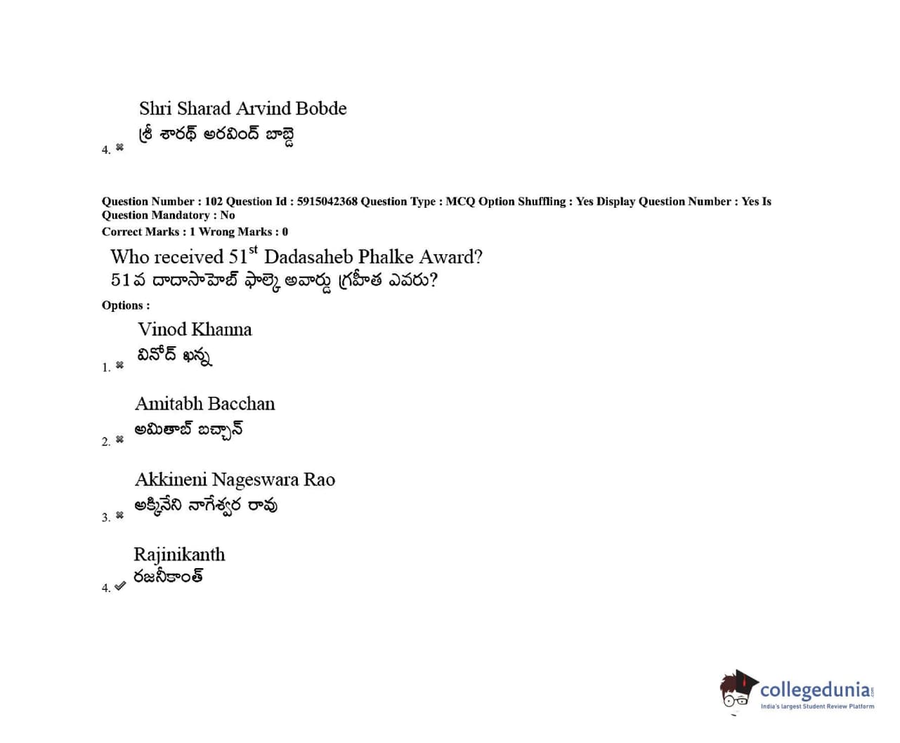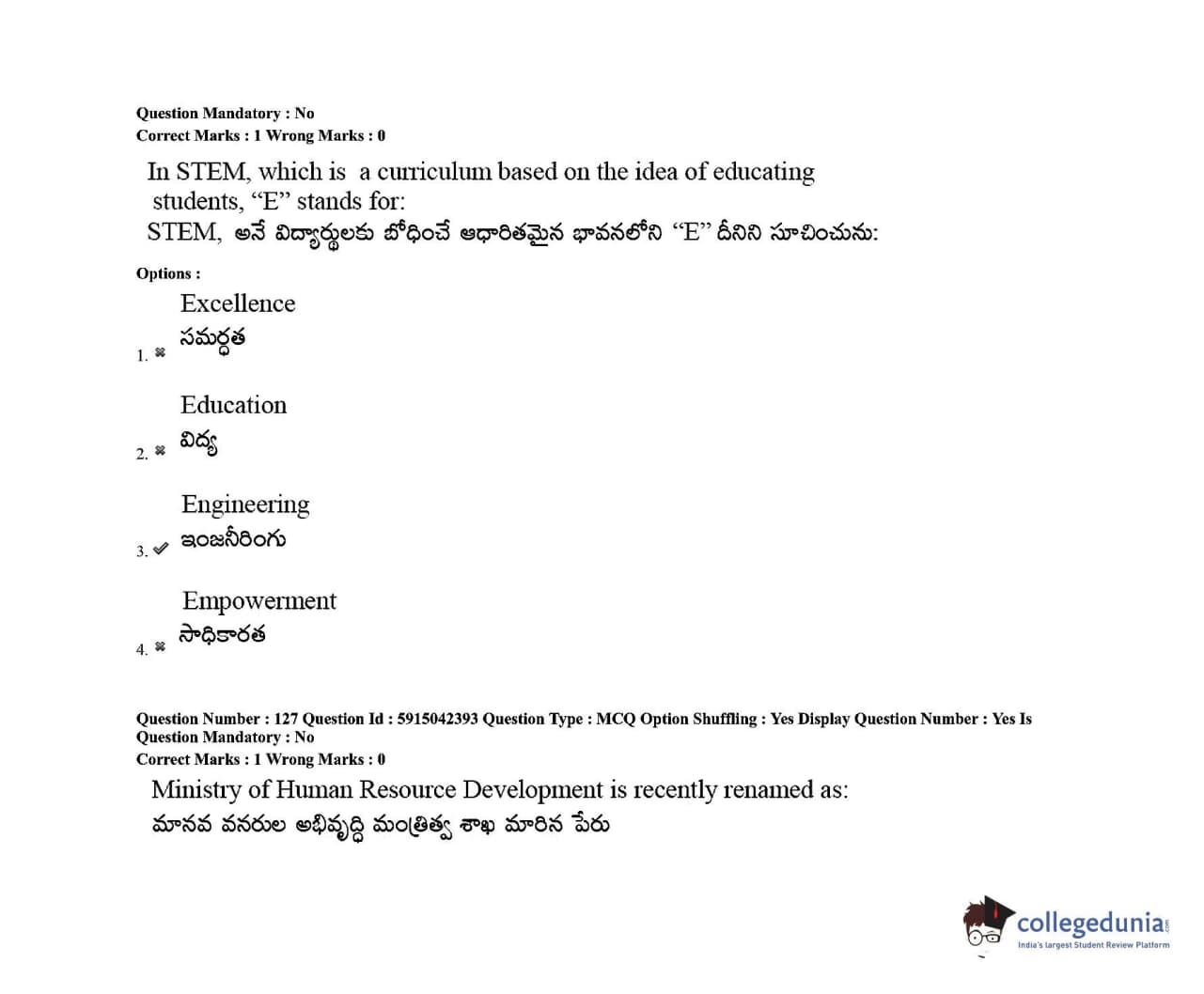 TS EDCET 2021 Question Paper with Answer Key PDF Shift 2