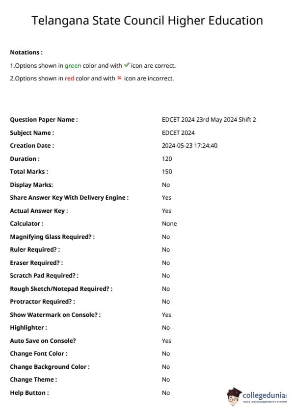 TS EDCET 2024 Question Paper is available for download here. Mahatma Gandhi University, Nalgonda on behalf of TSCHE conducted TS EDCET 2024 exam on May 23 in shift 2. TS EDCET Question Paper consists a total of 150 questions divided into 5 sections to be attempted in the duration of 2 hours.