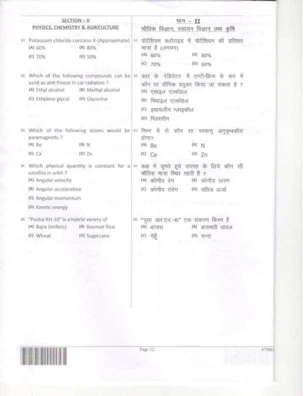 PHYSICS , CHEMISTRY , AGRICULTURE