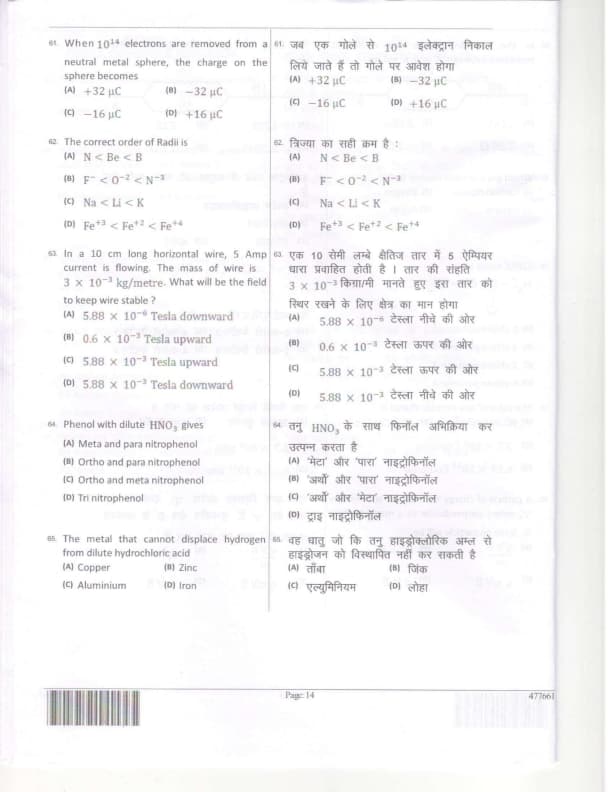 The correct order of Radii is