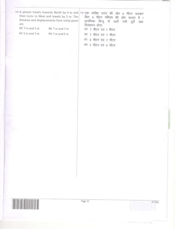 A person travels towards North by 4 m and then turns to West and travels by 3 m. The distance and displacements from initial point are