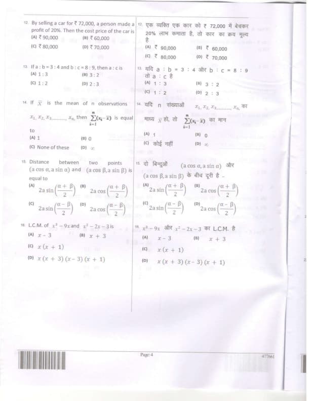 By selling a car for ₹72,000, a person made a profit of 20%. Then the cost price of the car is