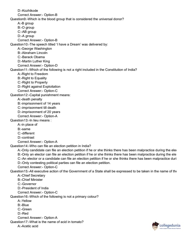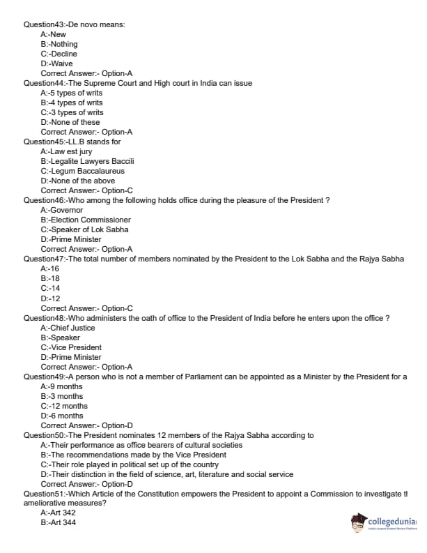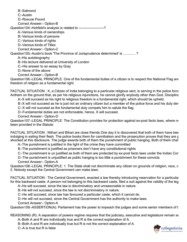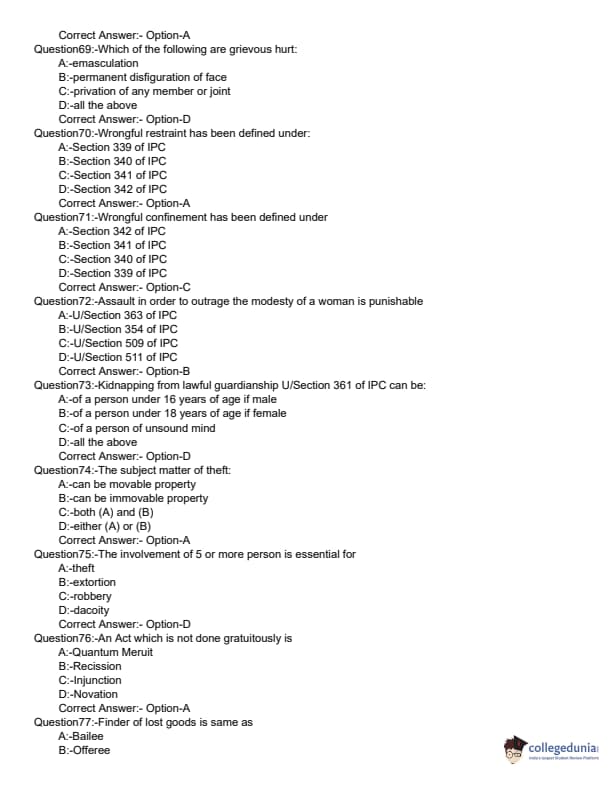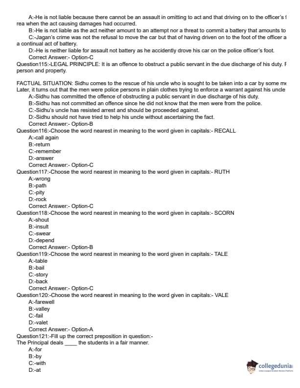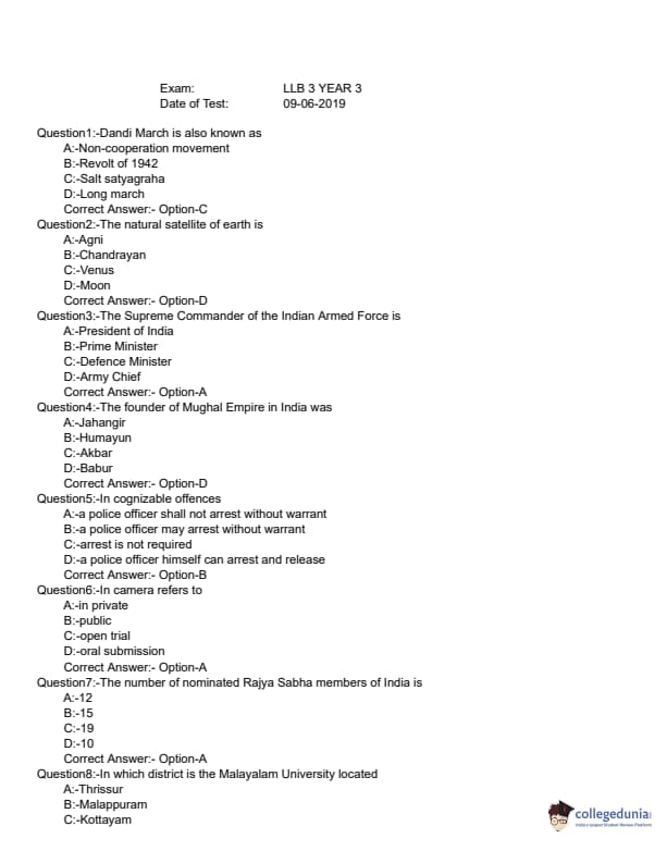 KLEE 2019 LLB 3 YEAR Question paper with answer key pdf conducted on June 9, 2019 is available for download. The exam was successfully organized by Commissioner of Entrance Examinations (CEE). The question paper comprised a total of 200 questions divided among three sections.